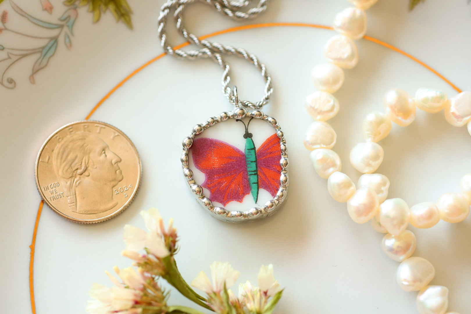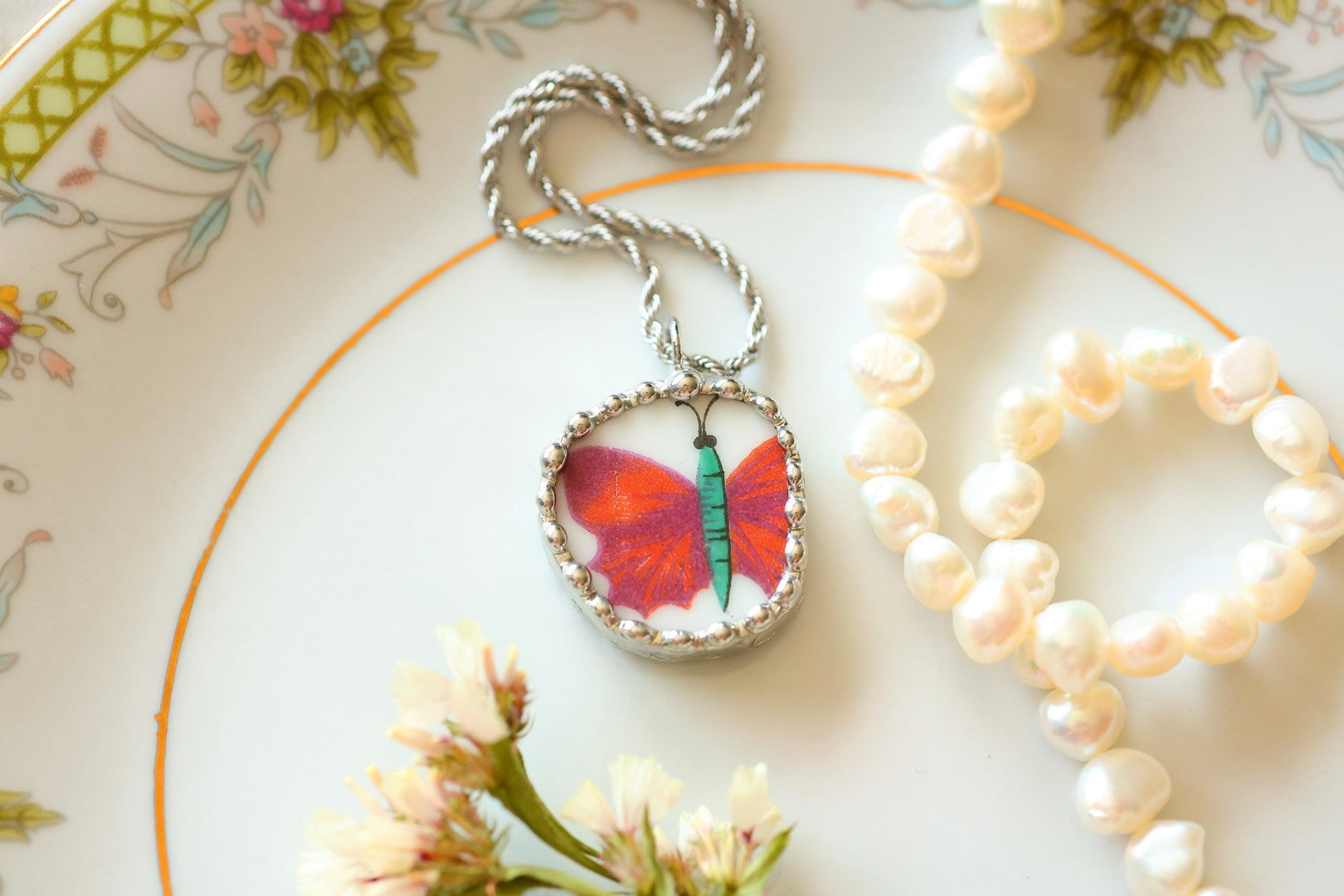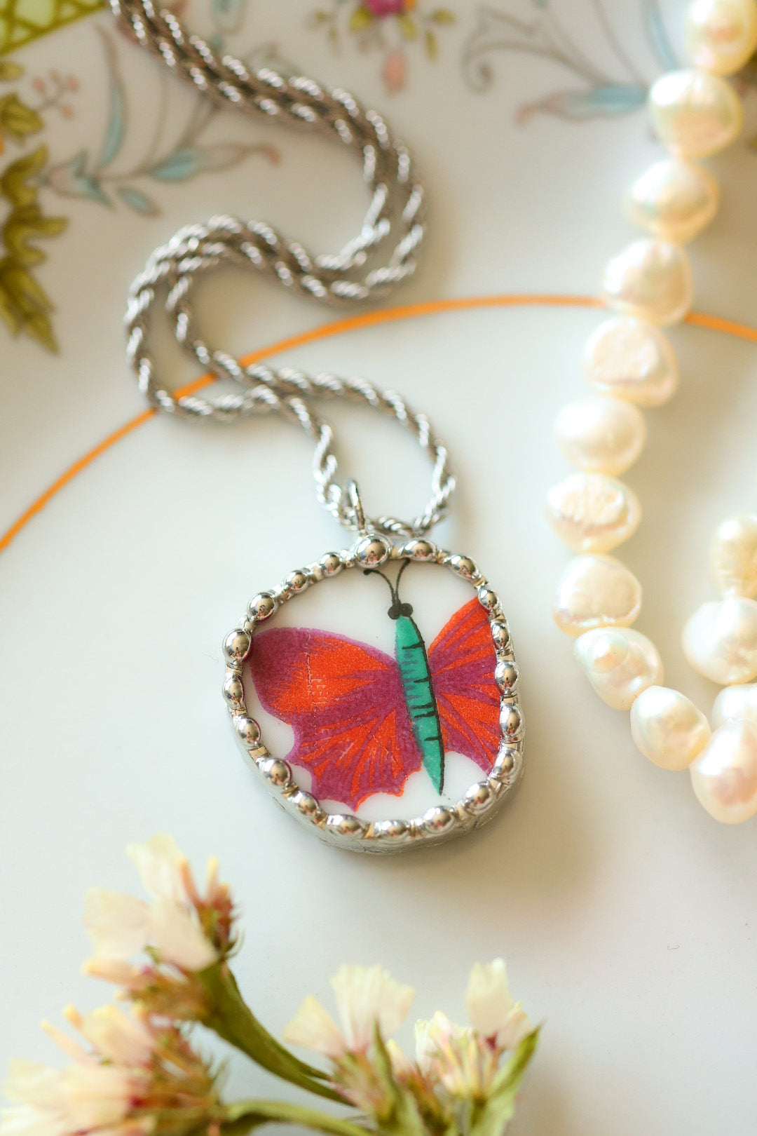 Please remember that these jewelry pieces are made from a unique and unusual medium—vintage dishware. With this, there can be curves and varied thicknesses throughout a single piece.