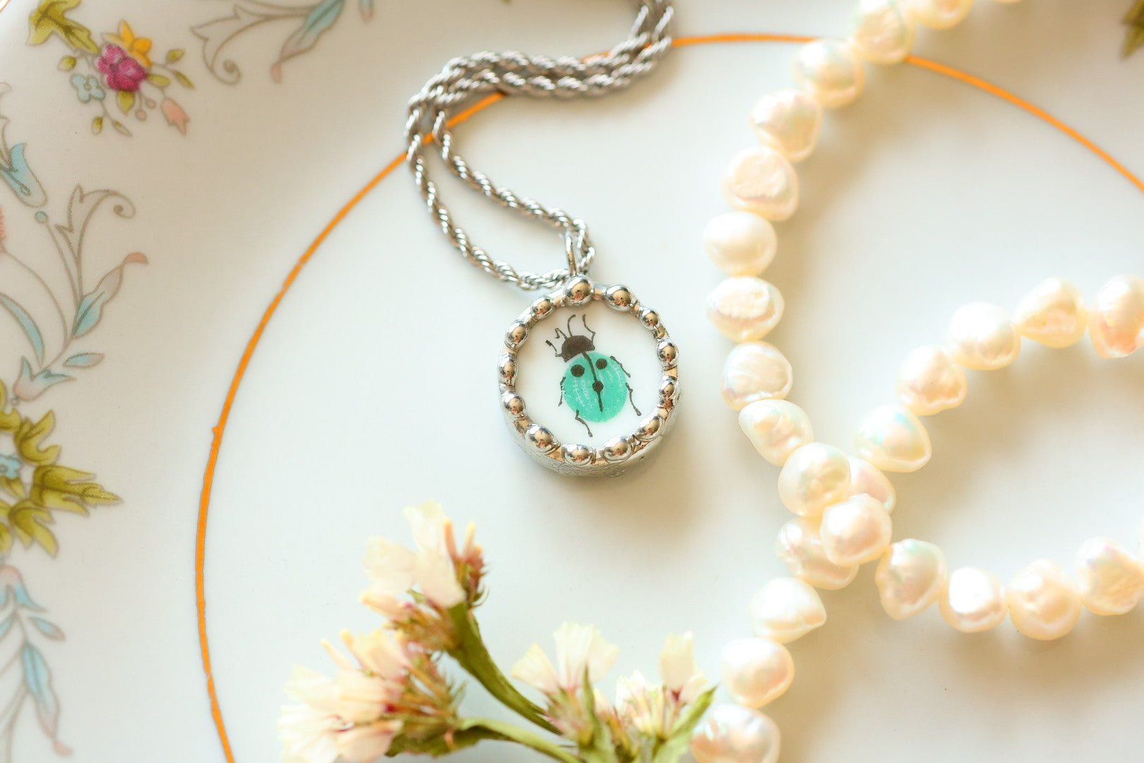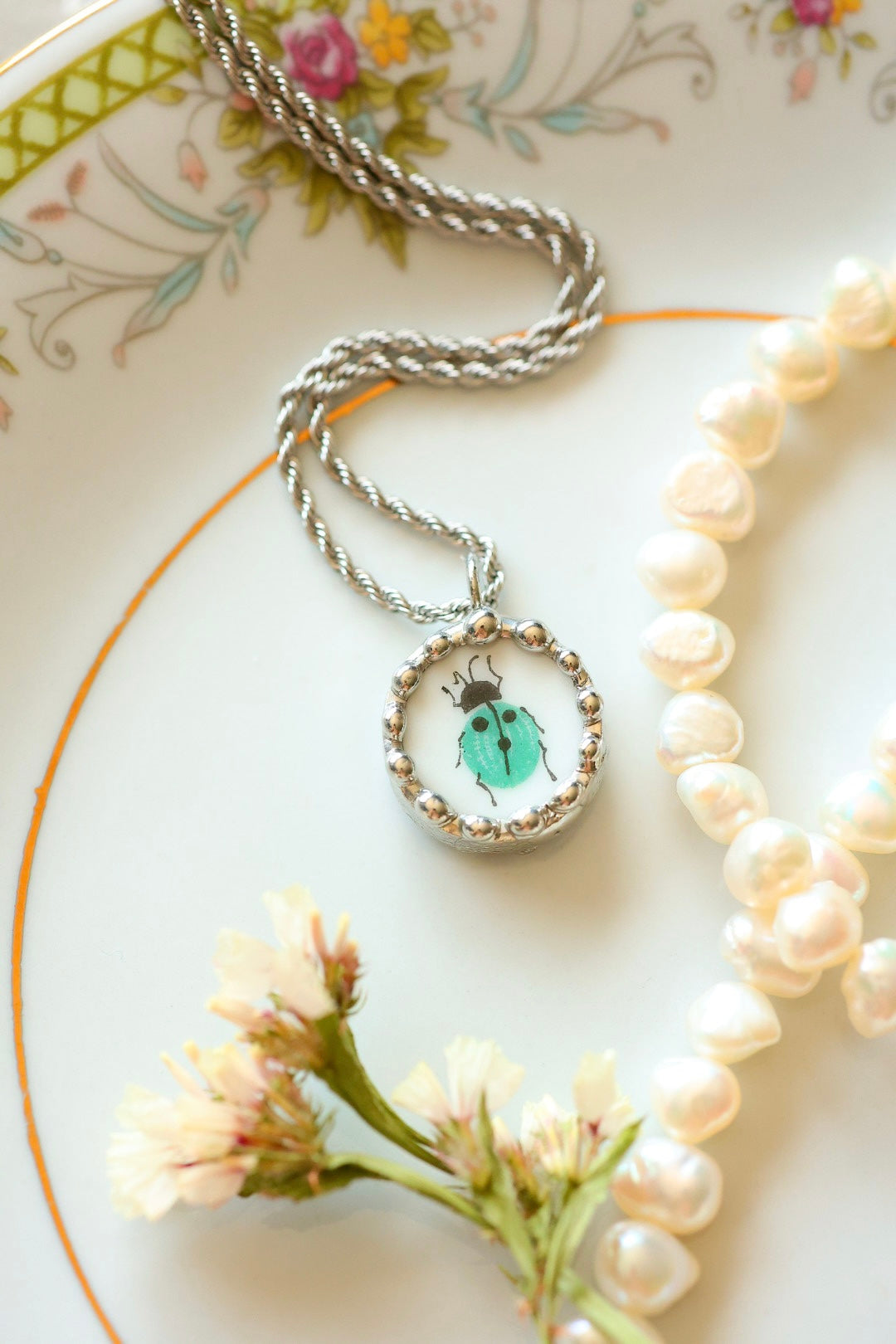 Please remember that these jewelry pieces are made from a unique and unusual medium—vintage dishware. With this, there can be curves and varied thicknesses throughout a single piece.
