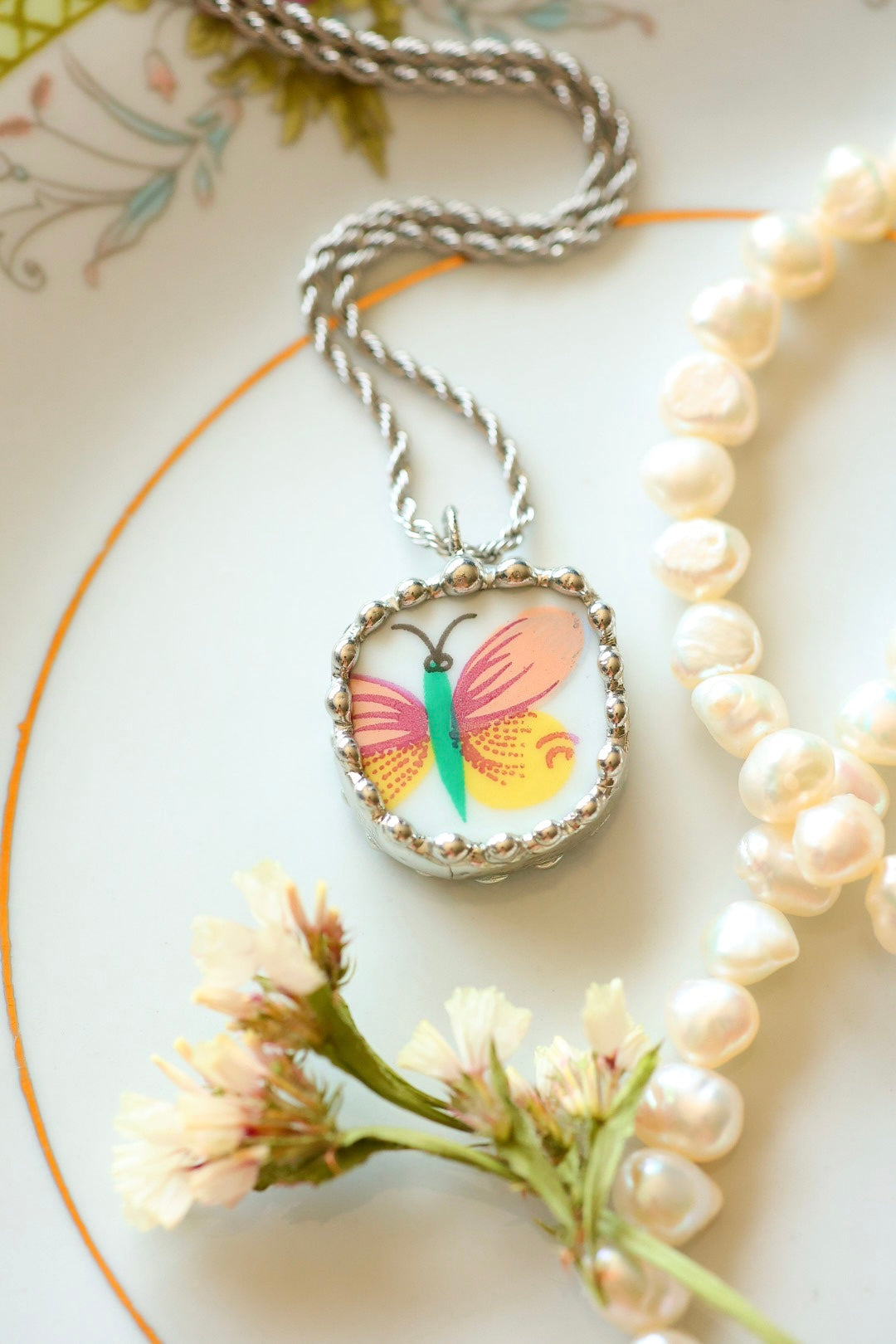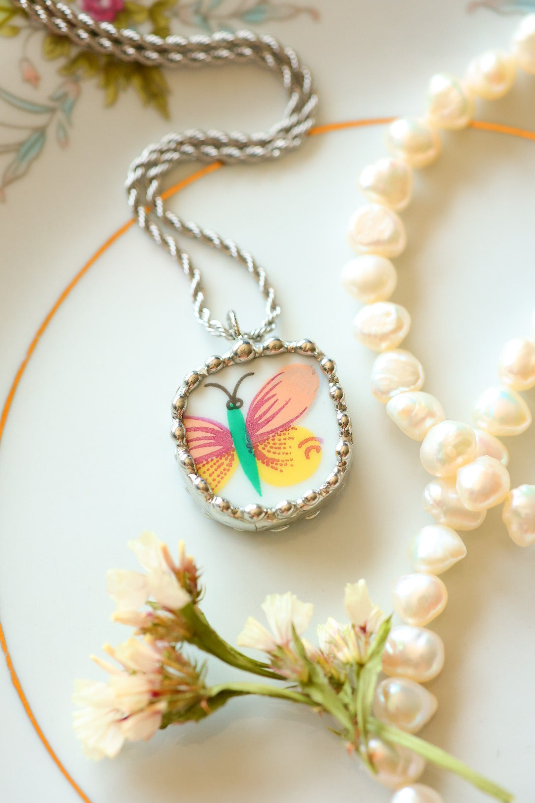 Please remember that these jewelry pieces are made from a unique and unusual medium—vintage dishware. With this, there can be curves and varied thicknesses throughout a single piece.