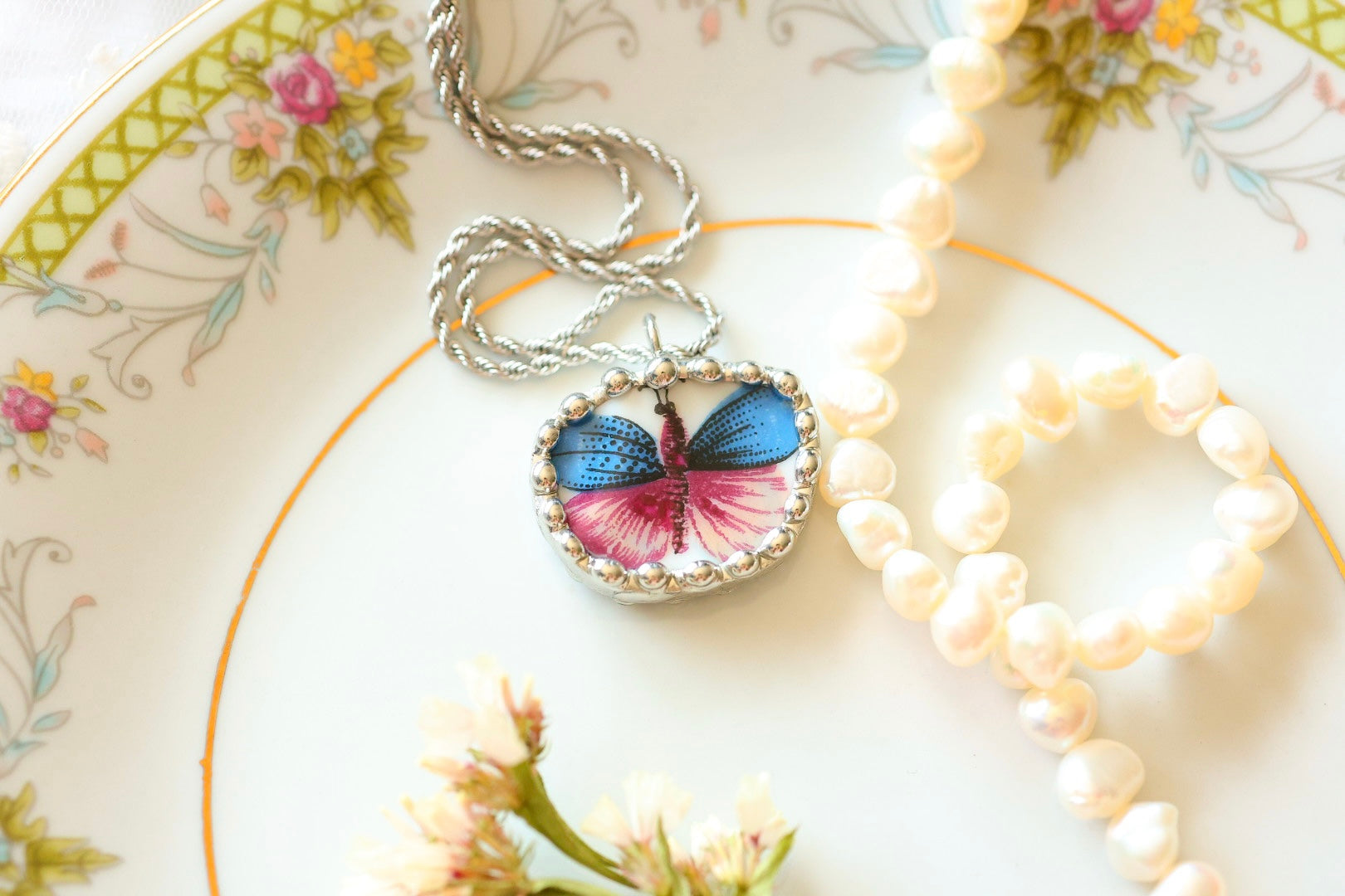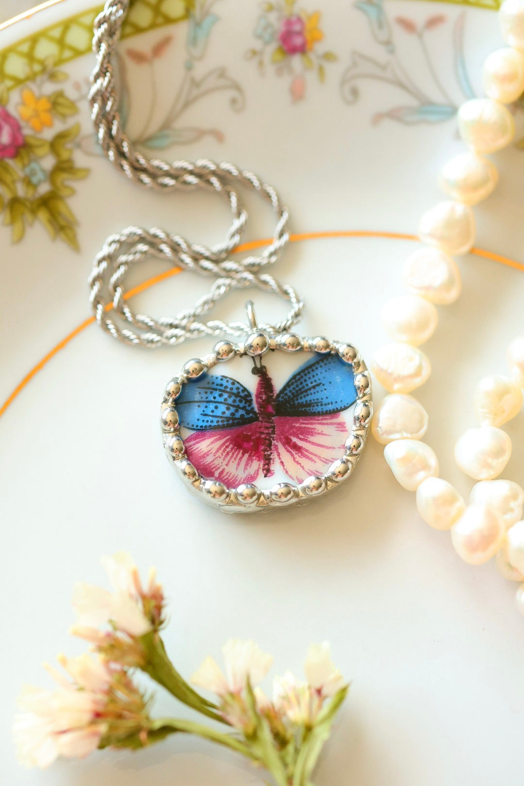 Please remember that these jewelry pieces are made from a unique and unusual medium—vintage dishware. With this, there can be curves and varied thicknesses throughout a single piece.