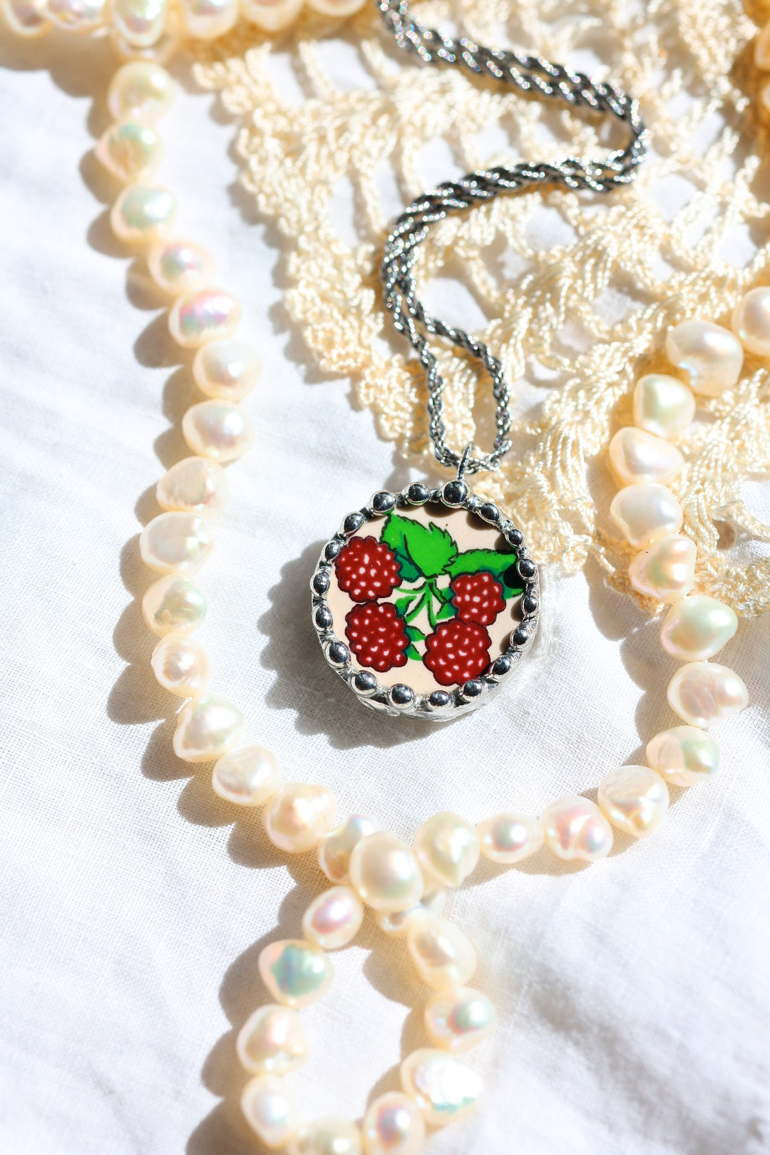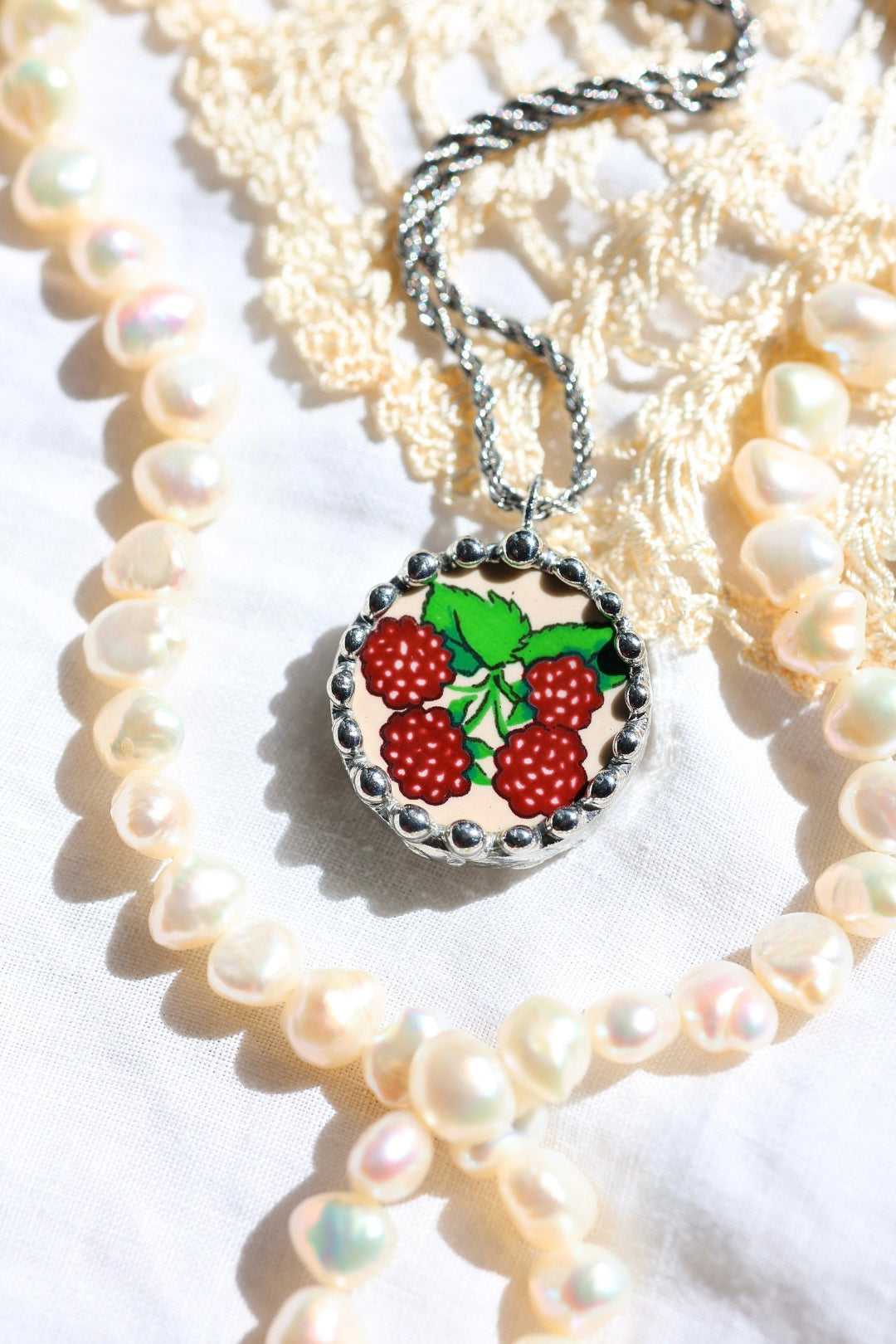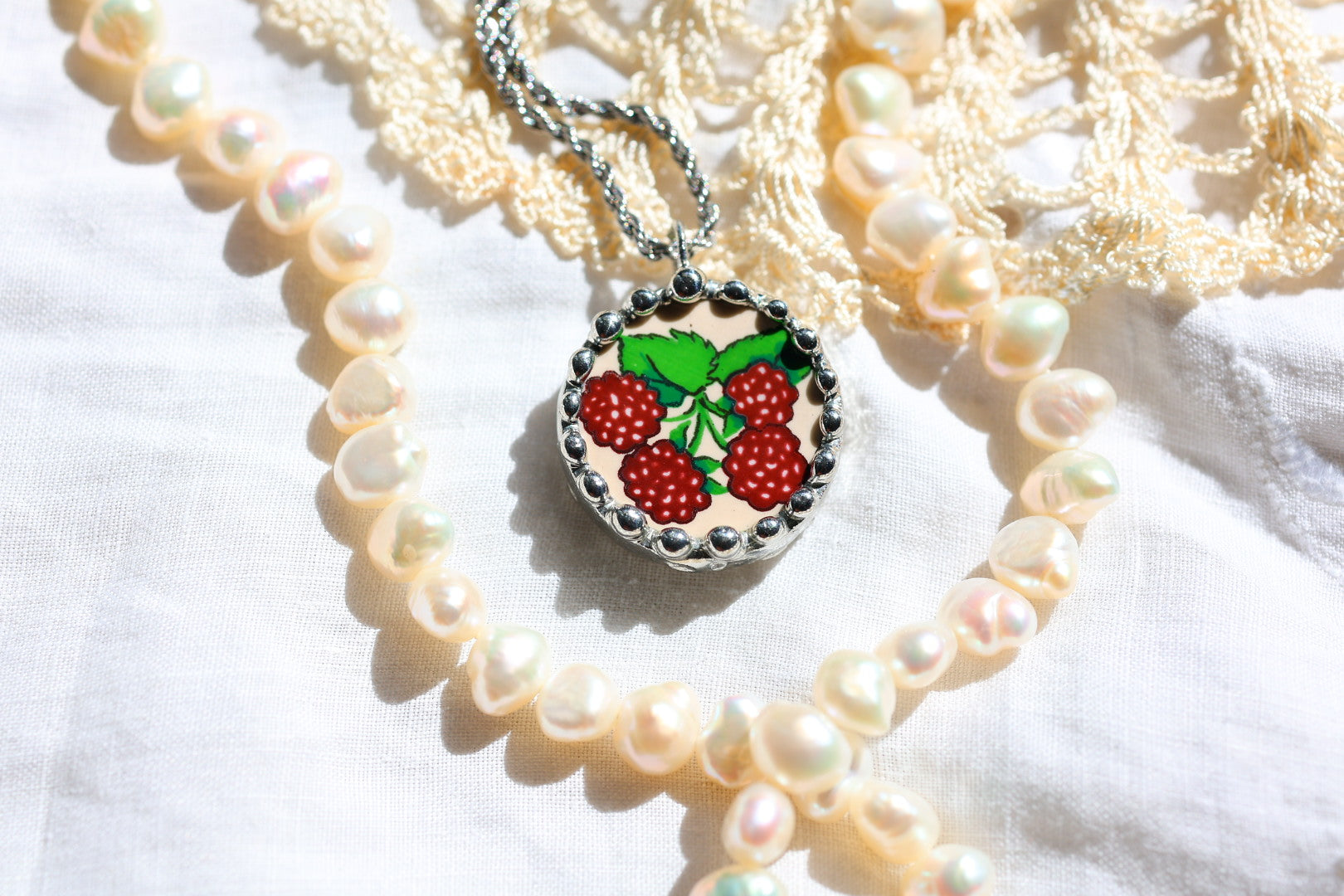 Please remember that these jewelry pieces are made from a unique and unusual medium—vintage dishware. With this, there can be curves and varied thicknesses throughout a single piece.