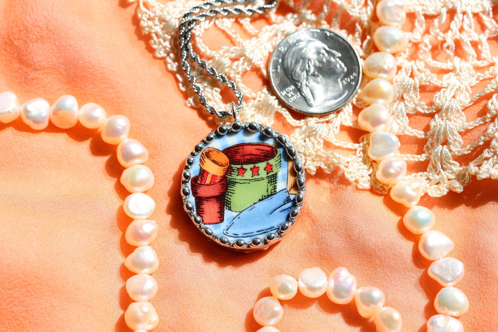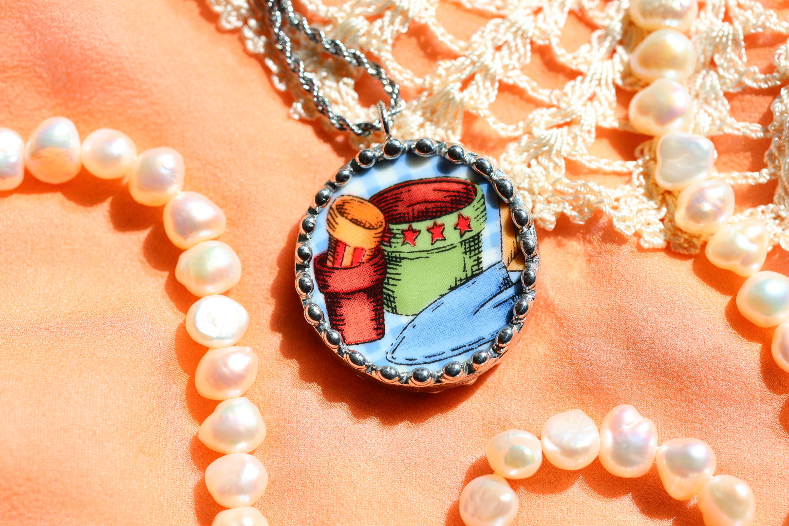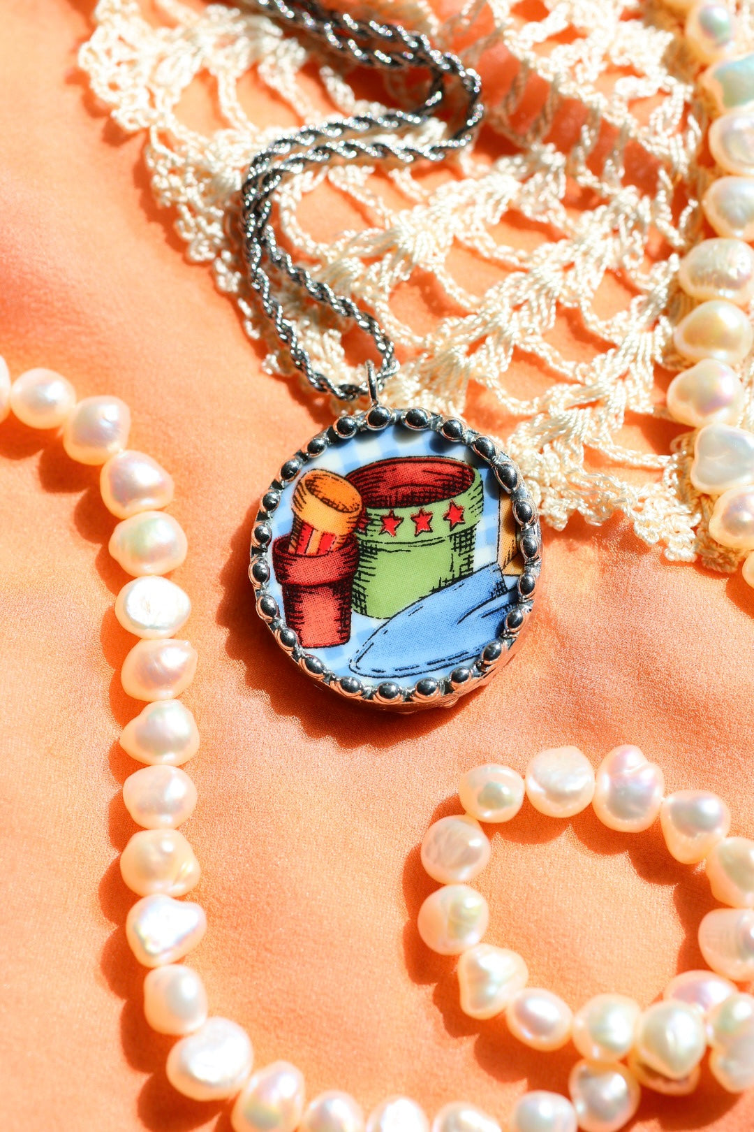 Please remember that these jewelry pieces are made from a unique and unusual medium—vintage dishware. With this, there can be curves and varied thicknesses throughout a single piece.