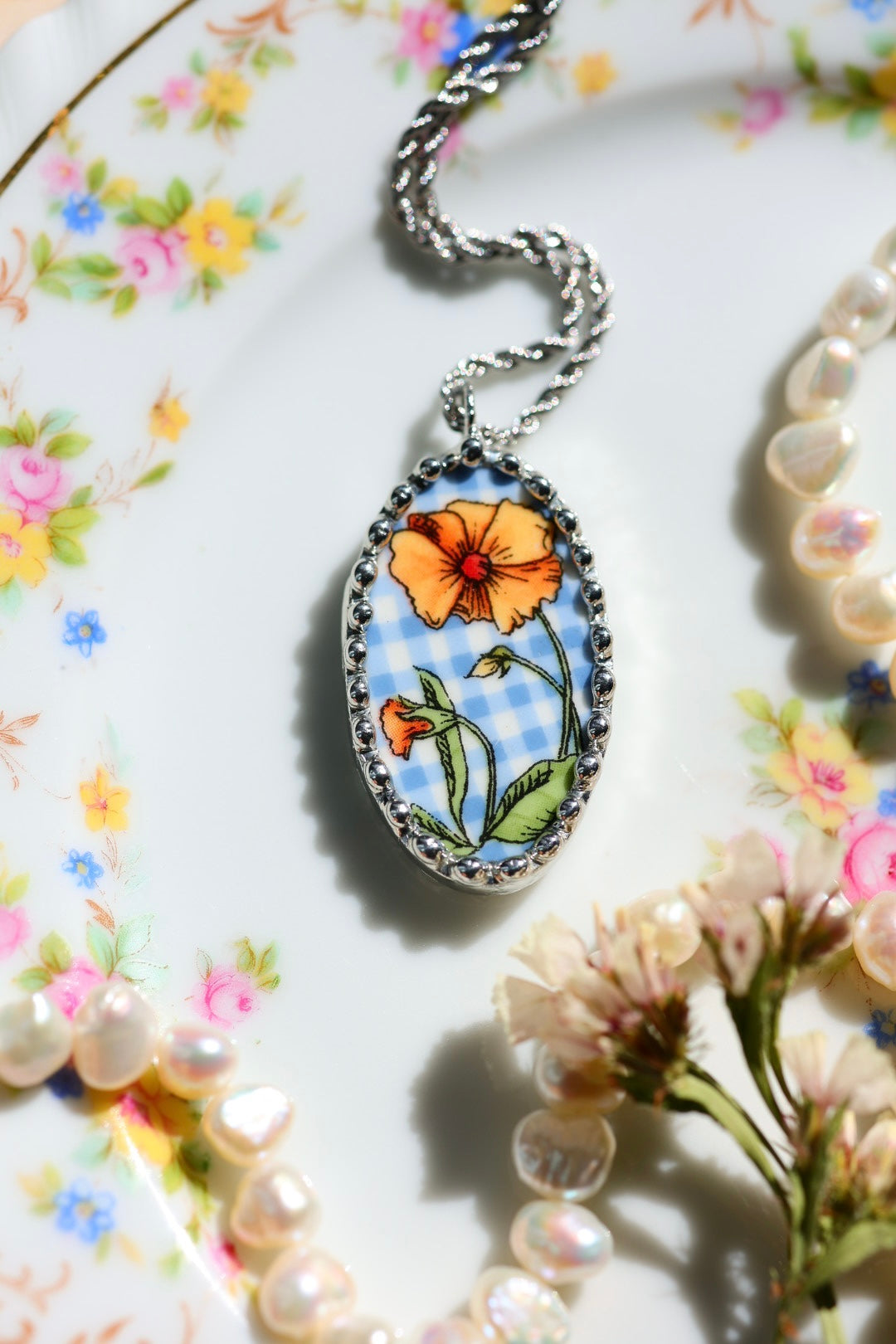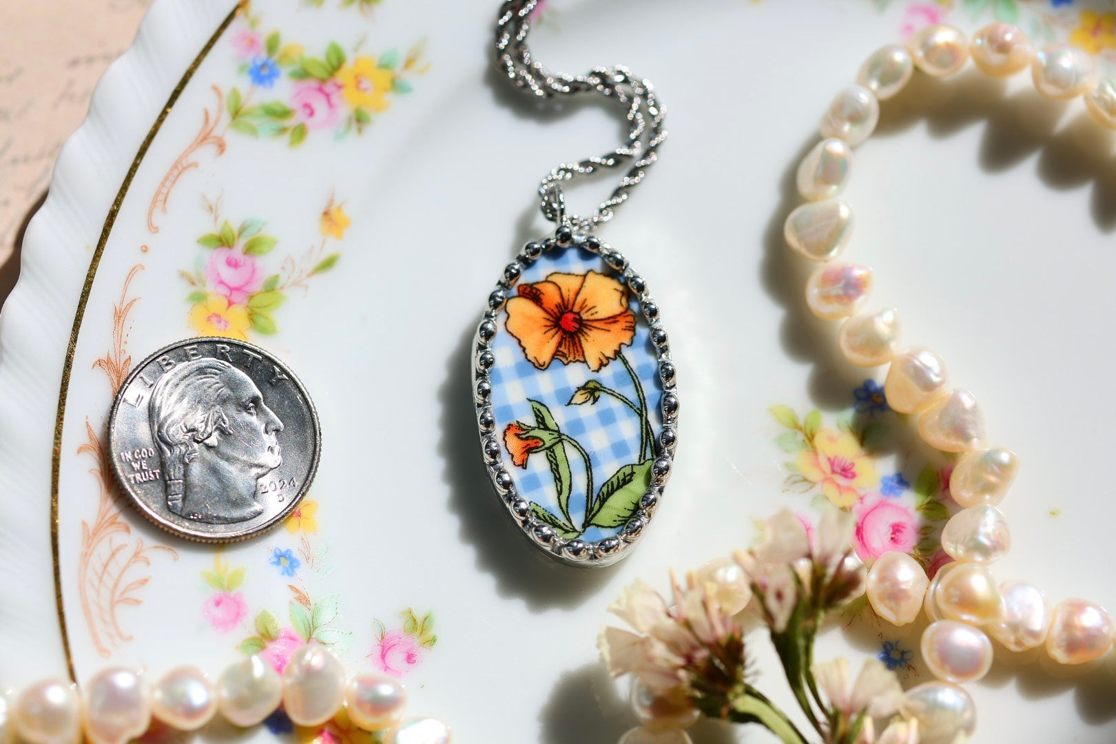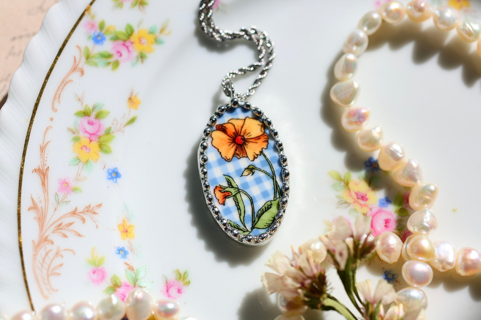 Please remember that these jewelry pieces are made from a unique and unusual medium—vintage dishware. With this, there can be curves and varied thicknesses throughout a single piece.