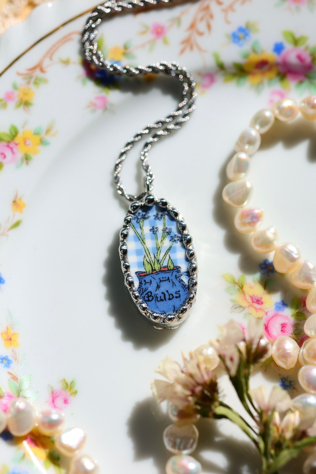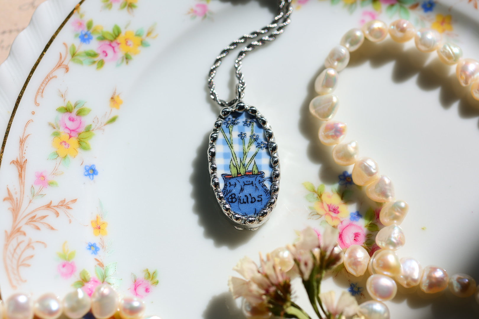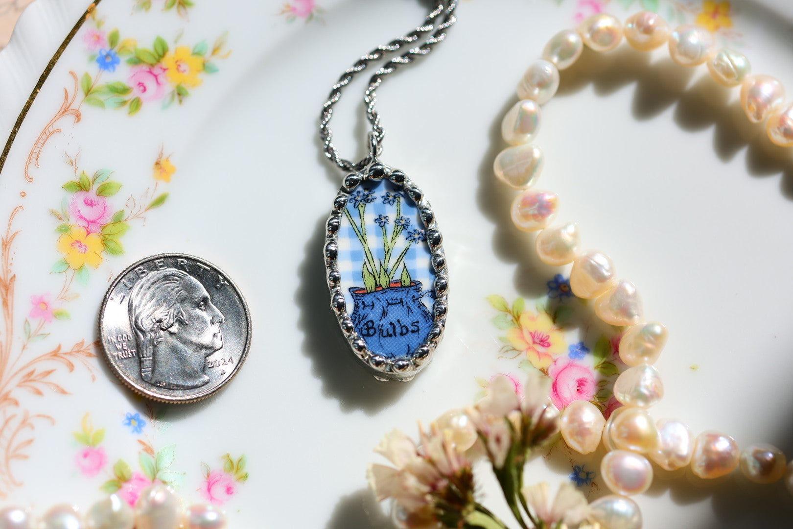 Please remember that these jewelry pieces are made from a unique and unusual medium—vintage dishware. With this, there can be curves and varied thicknesses throughout a single piece.