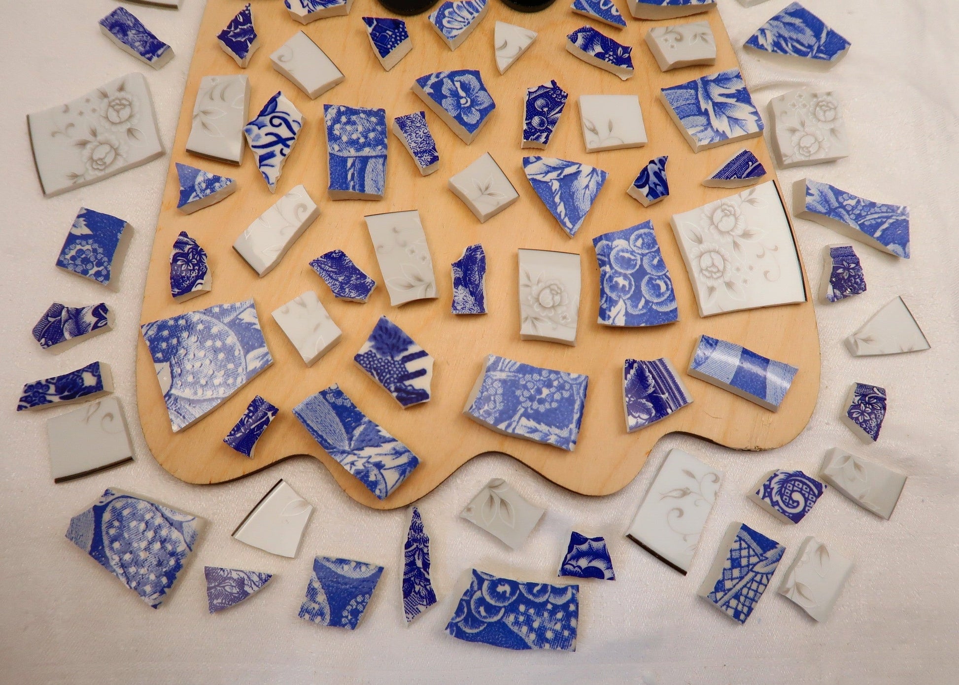 - A hand-selected assortment of broken china Poetic Mosaic tiles