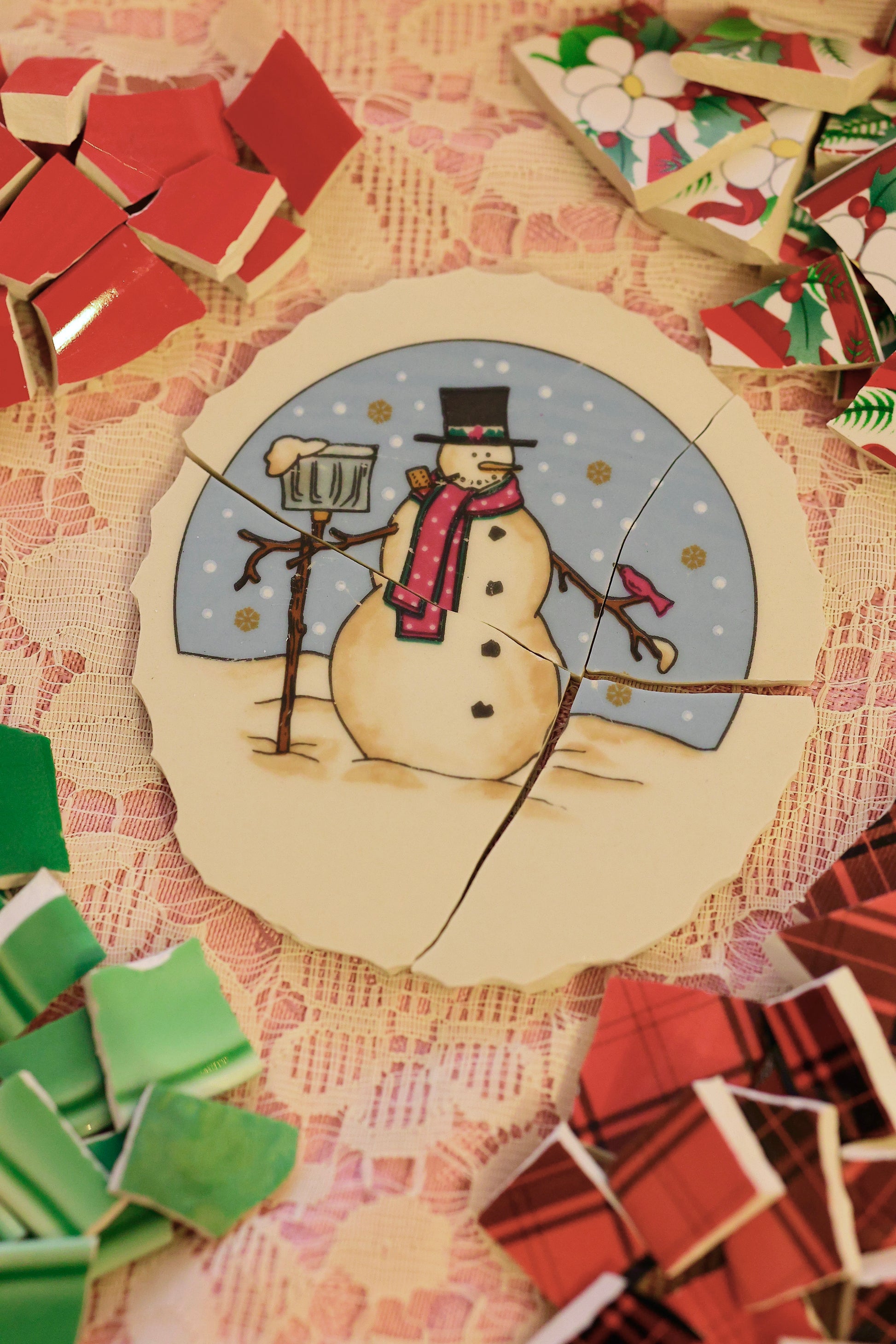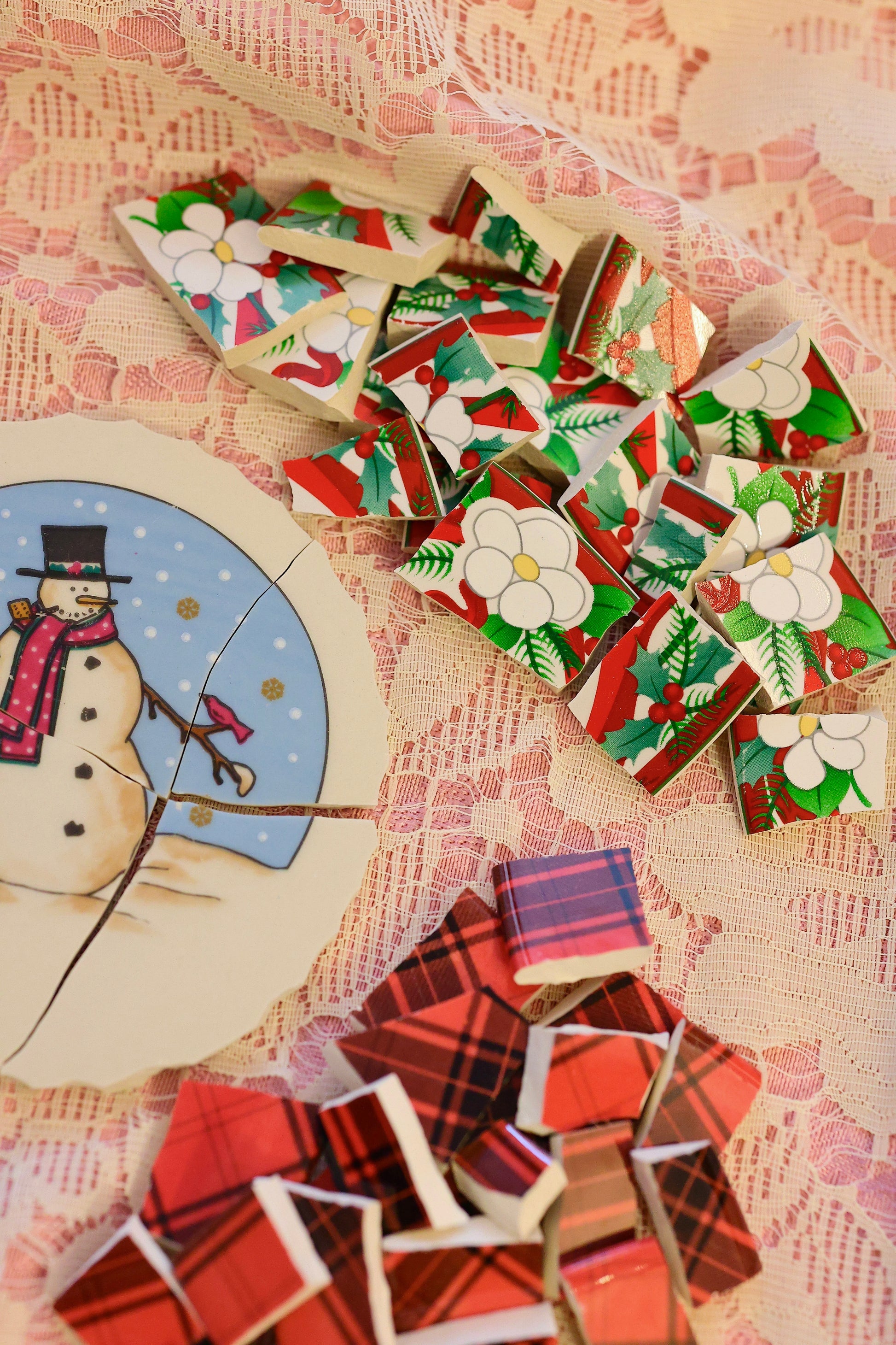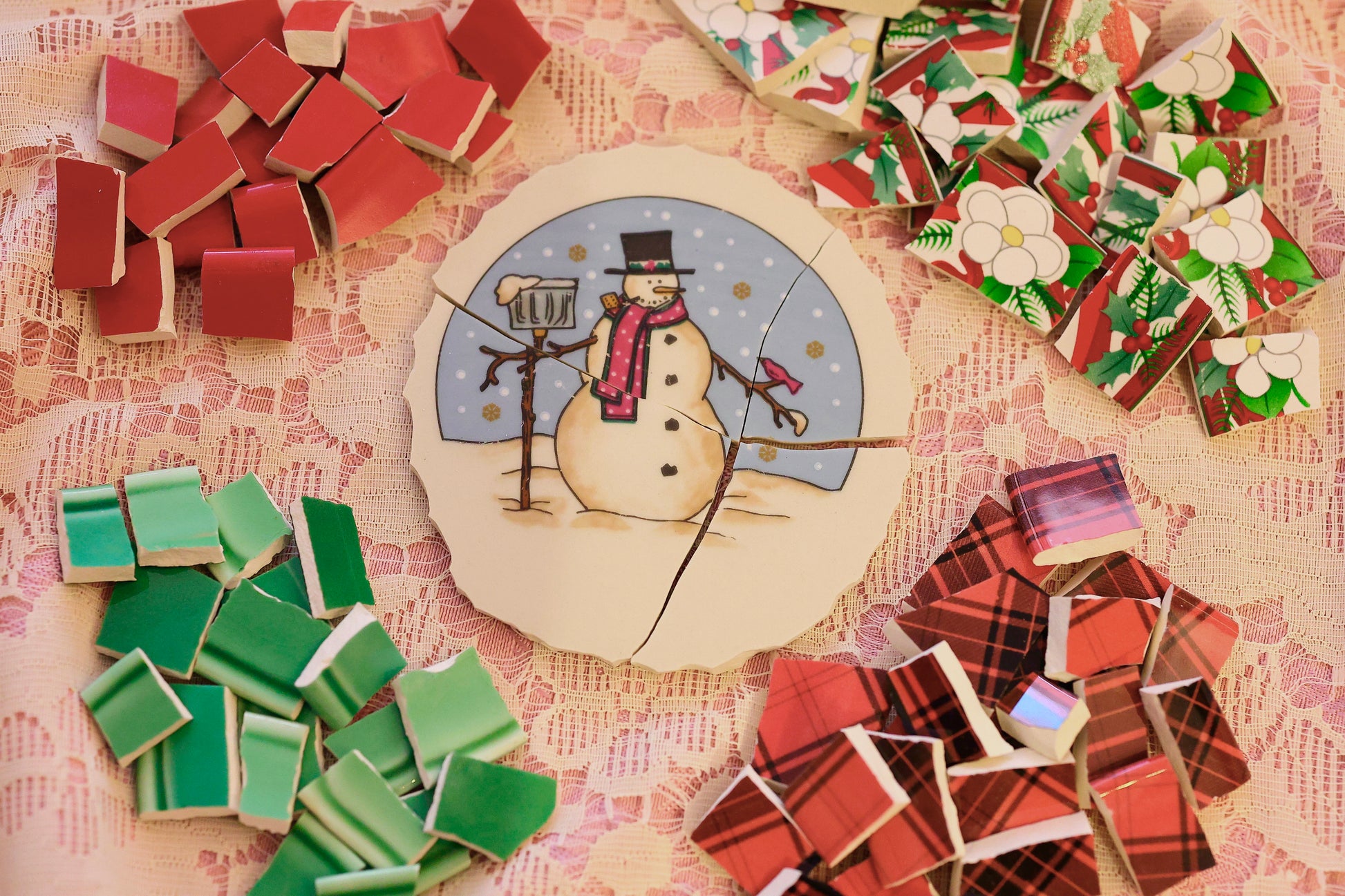 - A hand-selected assortment of broken china Poetic Mosaic tiles
