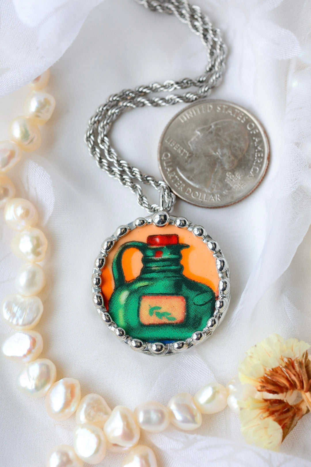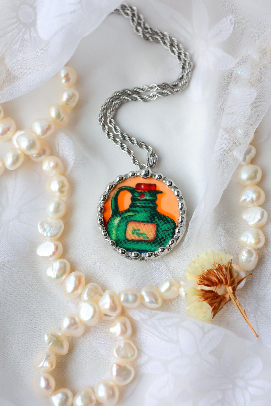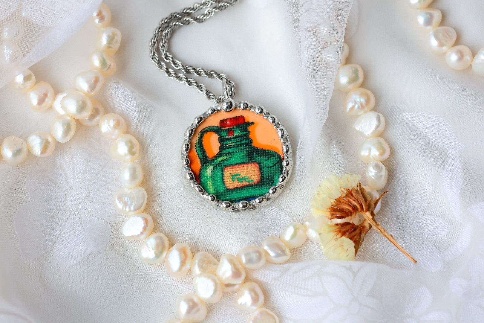 Please remember that these jewelry pieces are made from a unique and unusual medium—vintage dishware. With this, there can be curves and varied thicknesses throughout a single piece.