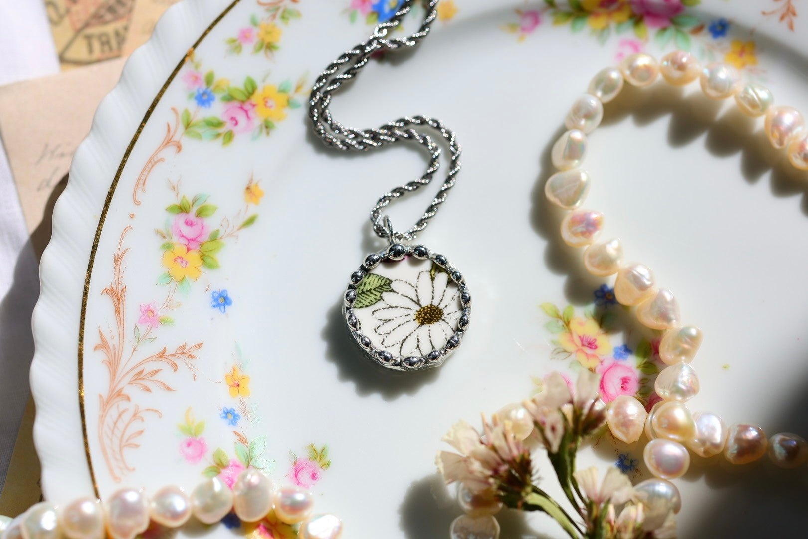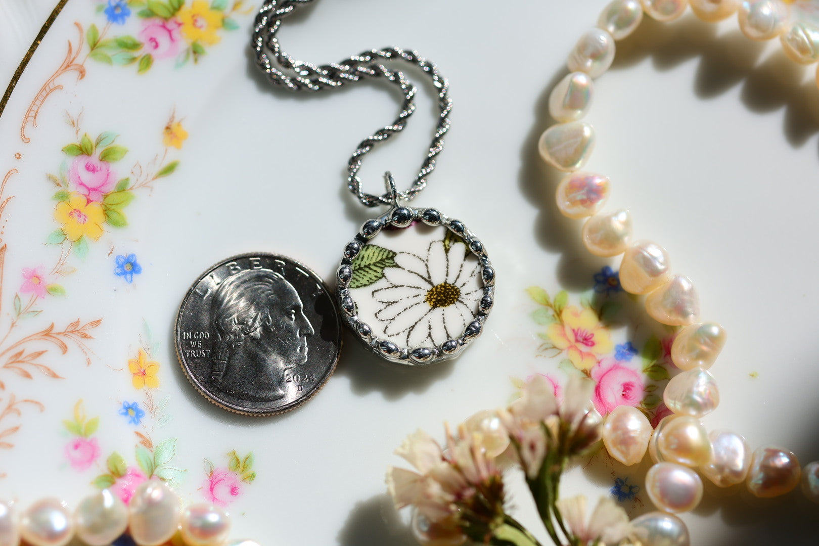 Please remember that these jewelry pieces are made from a unique and unusual medium—vintage dishware. With this, there can be curves and varied thicknesses throughout a single piece.