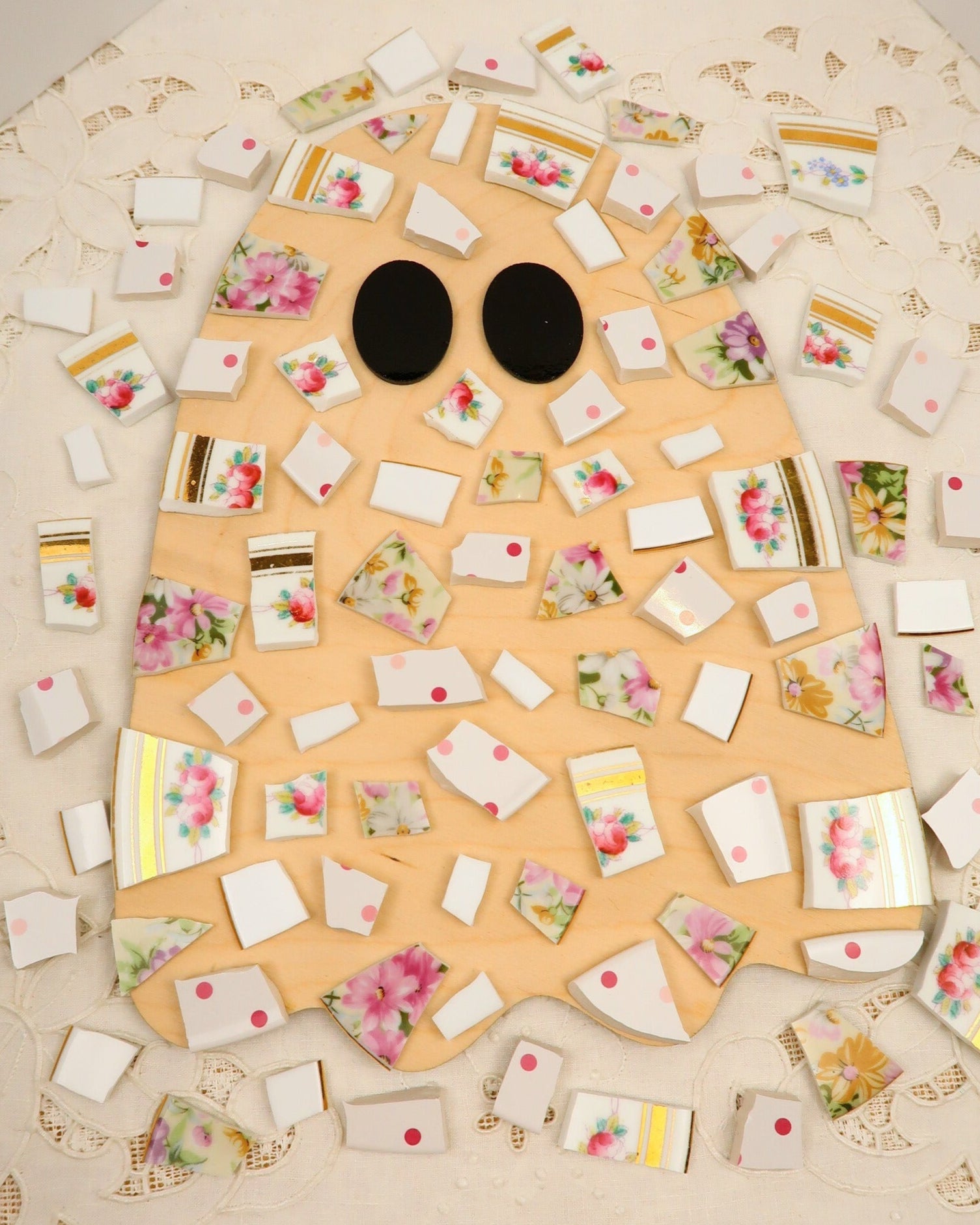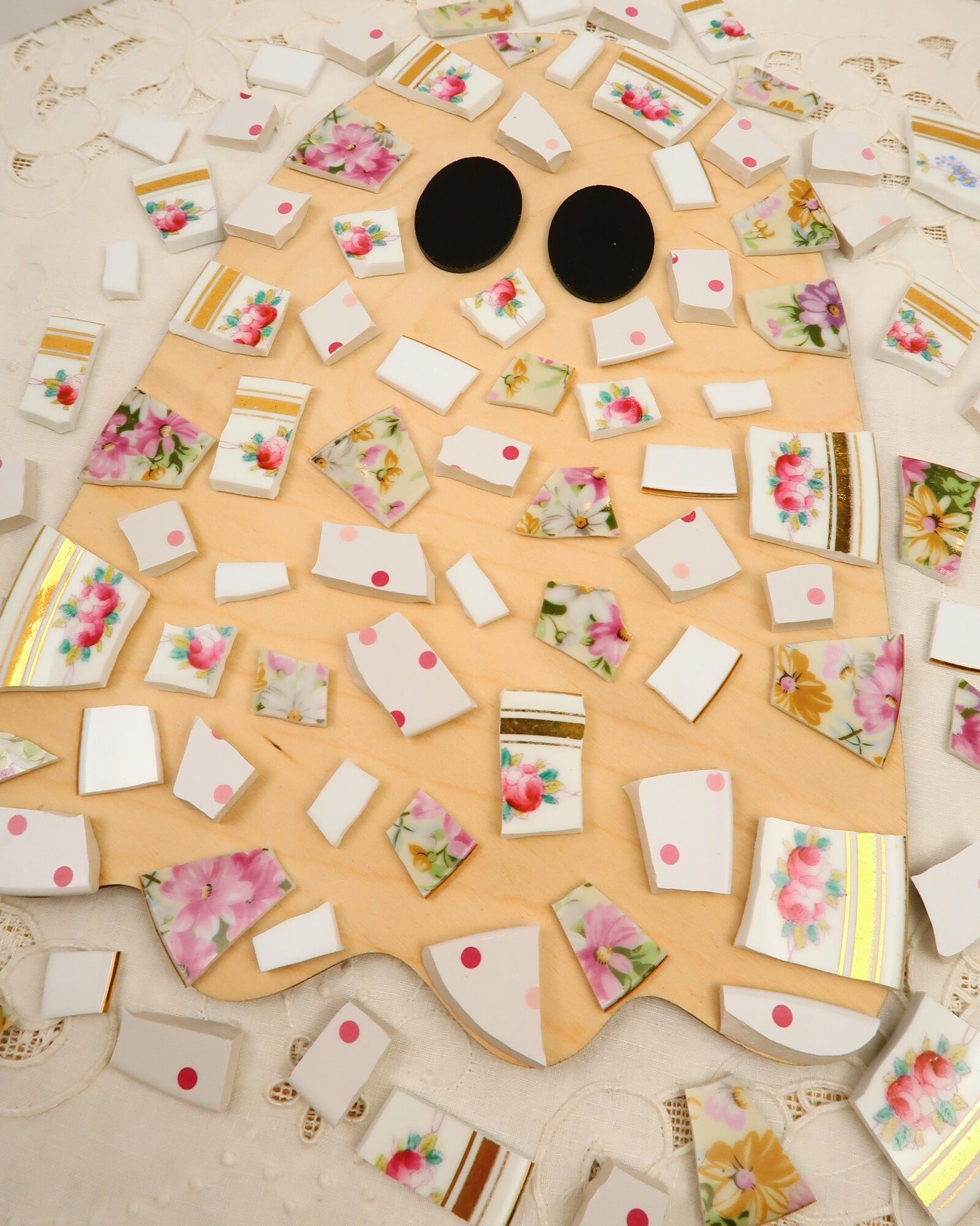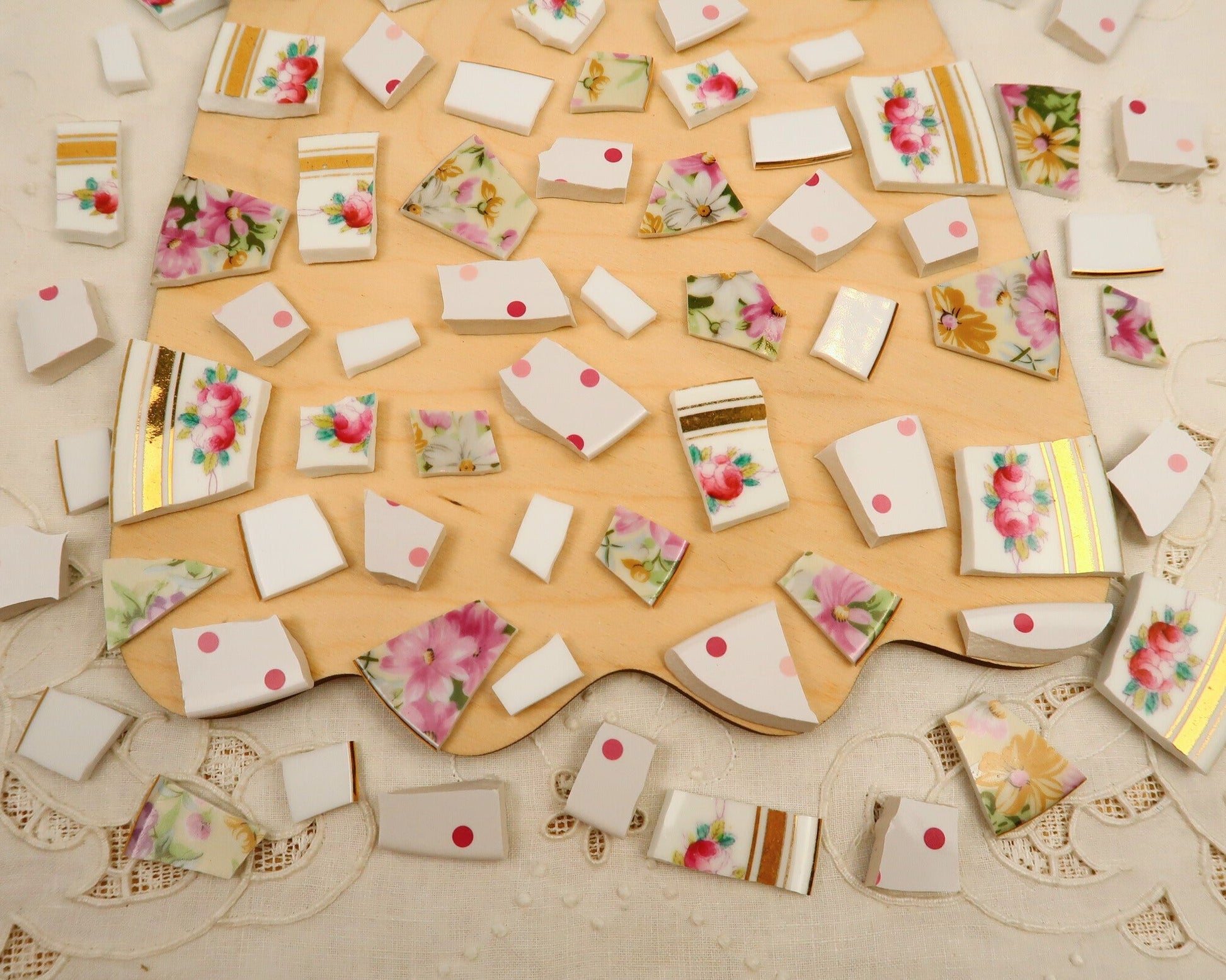 - A hand-selected assortment of broken china Poetic Mosaic tiles
