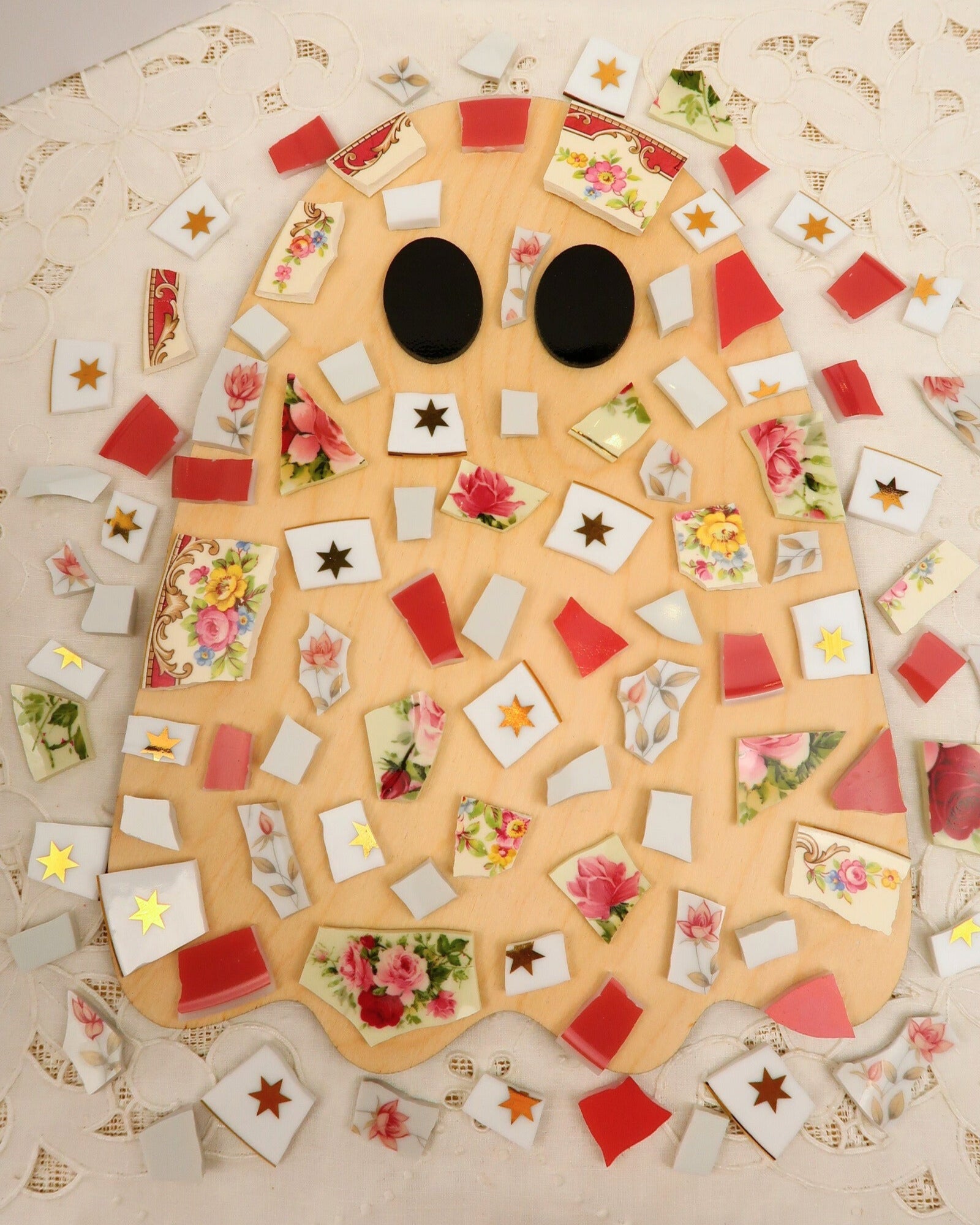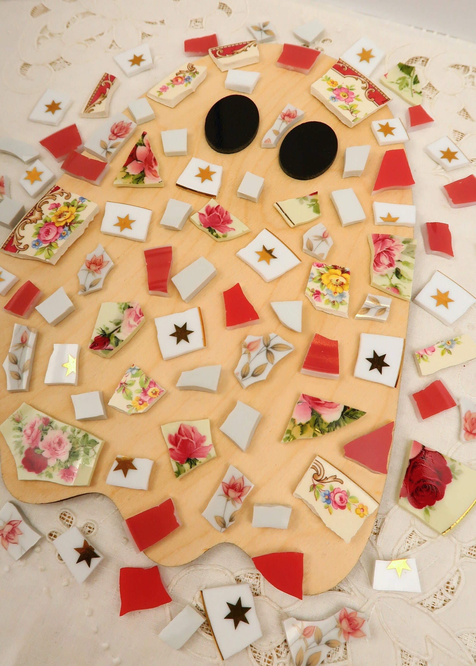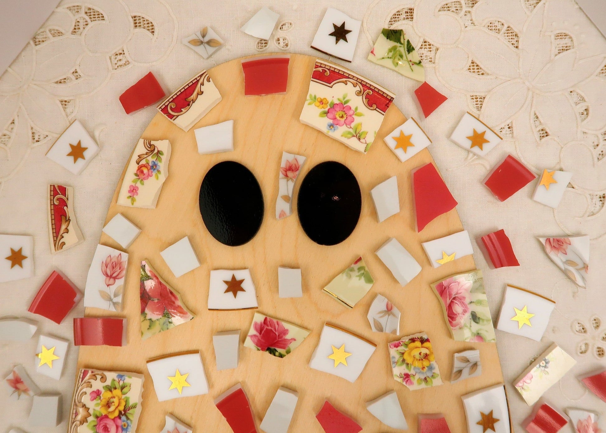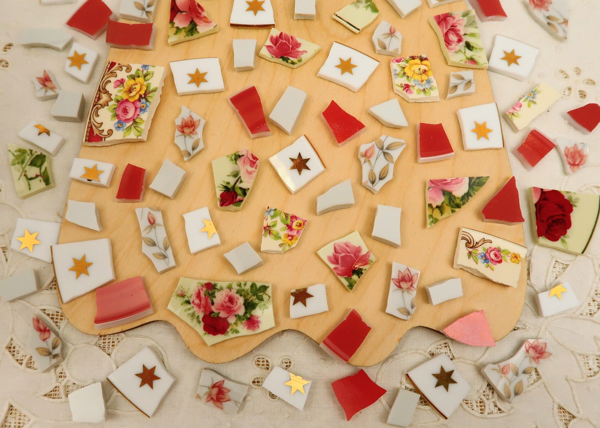 - A hand-selected assortment of broken china Poetic Mosaic tiles