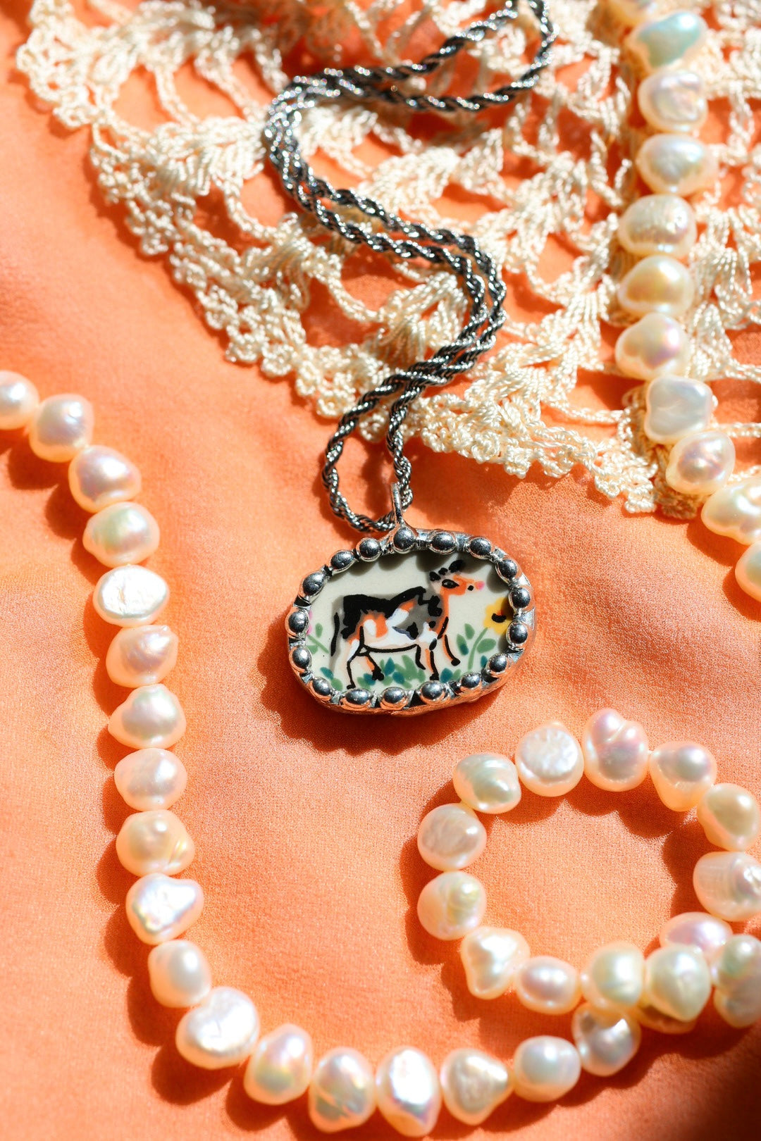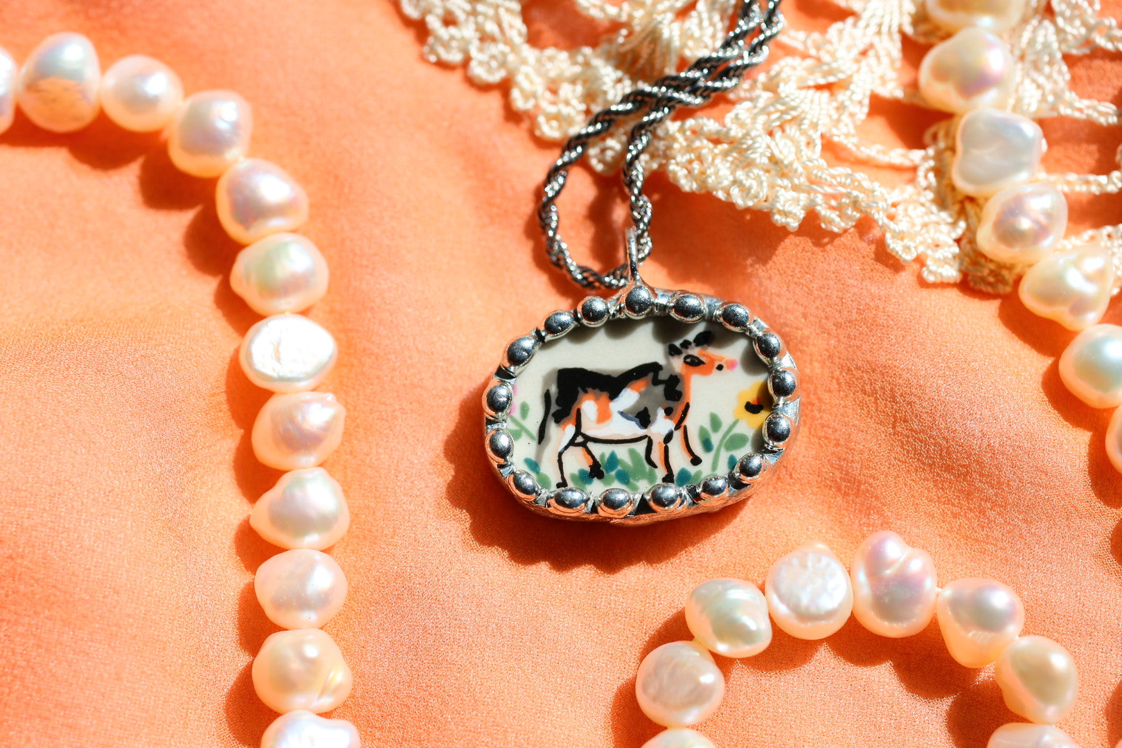 Please remember that these jewelry pieces are made from a unique and unusual medium—vintage dishware. With this, there can be curves and varied thicknesses throughout a single piece.