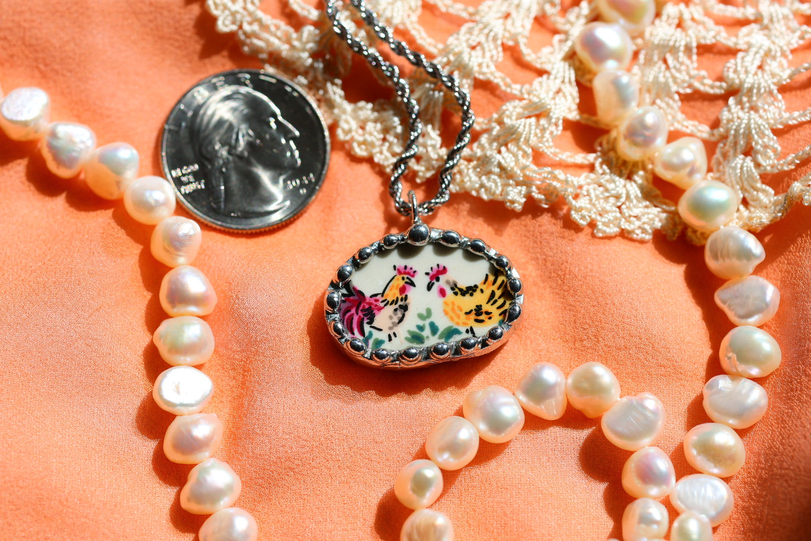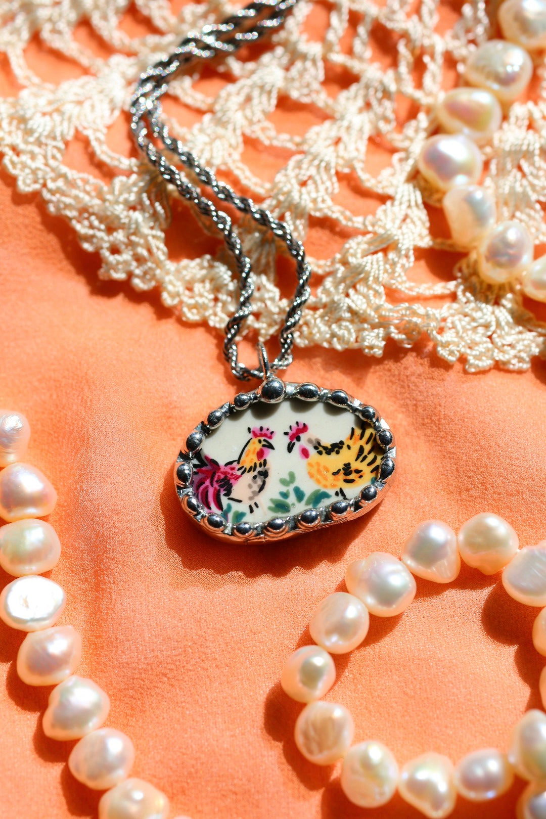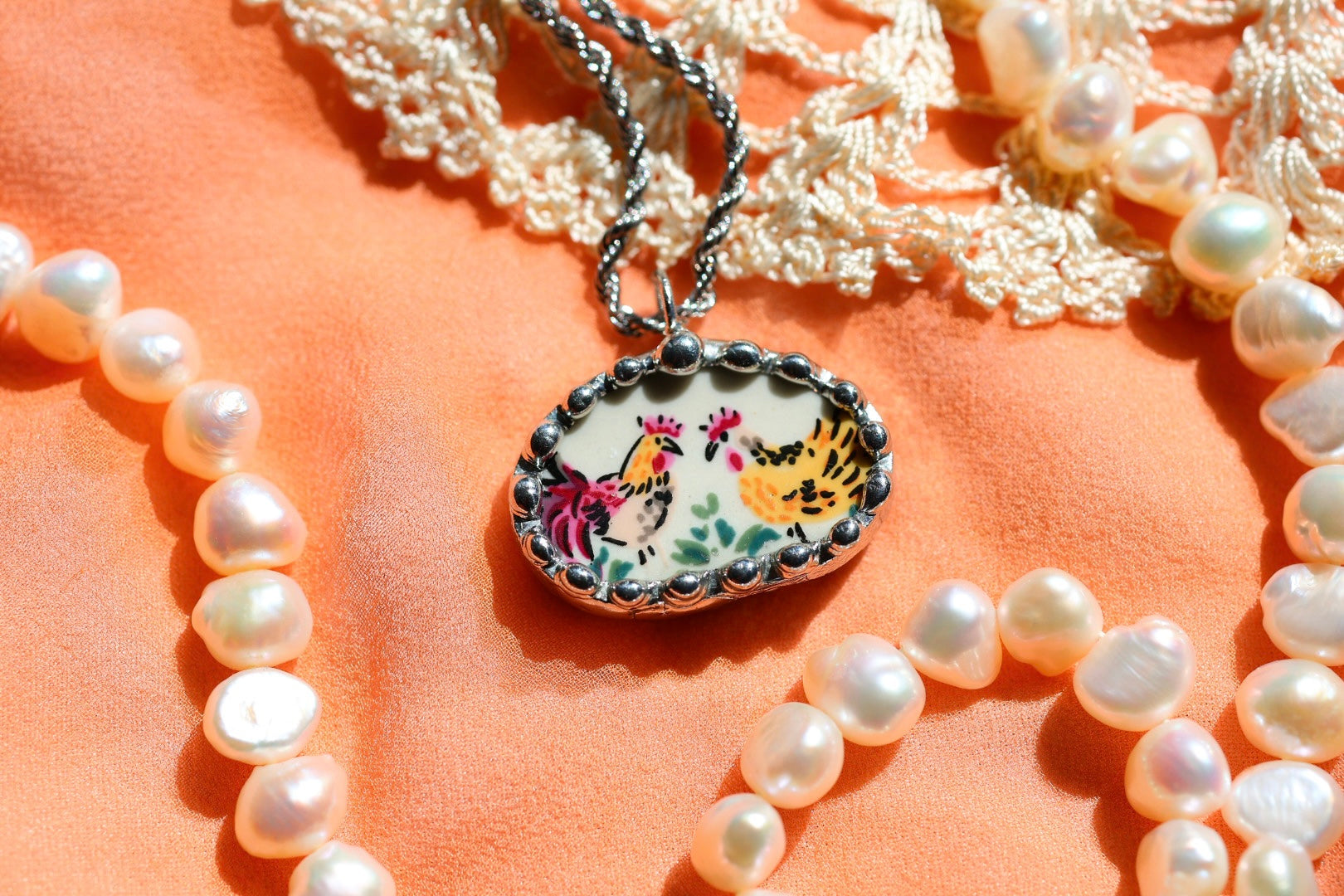 Please remember that these jewelry pieces are made from a unique and unusual medium—vintage dishware. With this, there can be curves and varied thicknesses throughout a single piece.