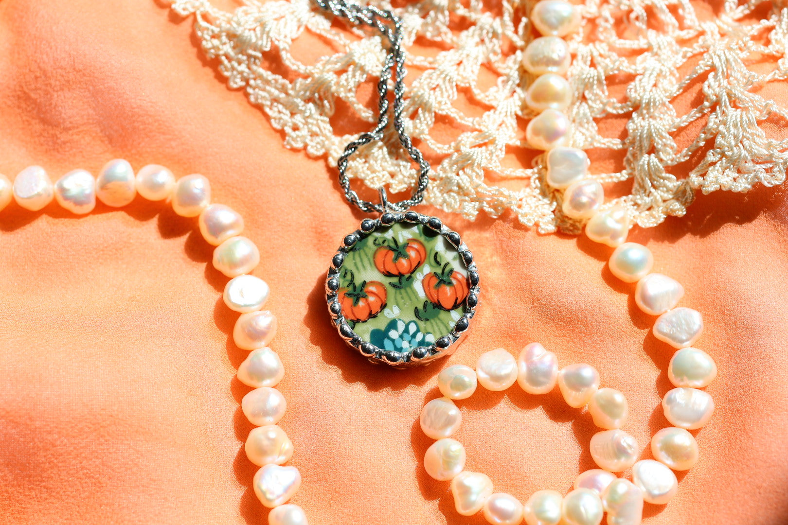 Please remember that these jewelry pieces are made from a unique and unusual medium—vintage dishware. With this, there can be curves and varied thicknesses throughout a single piece.