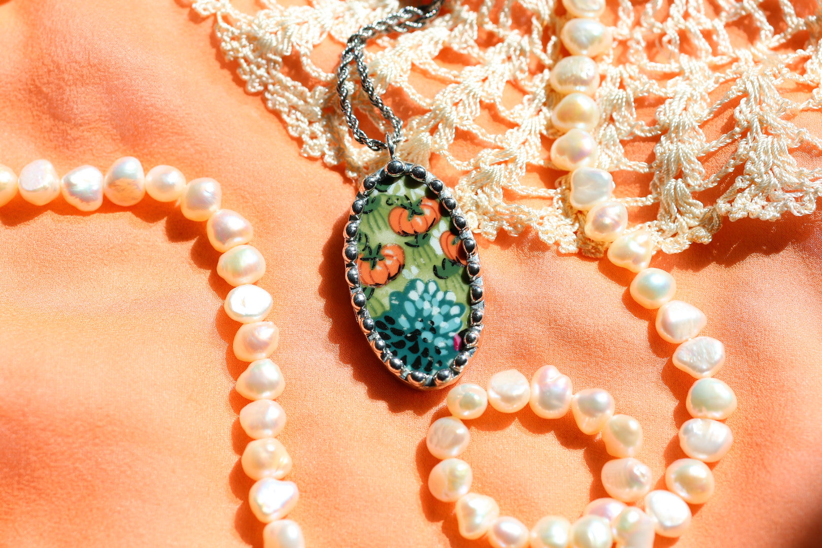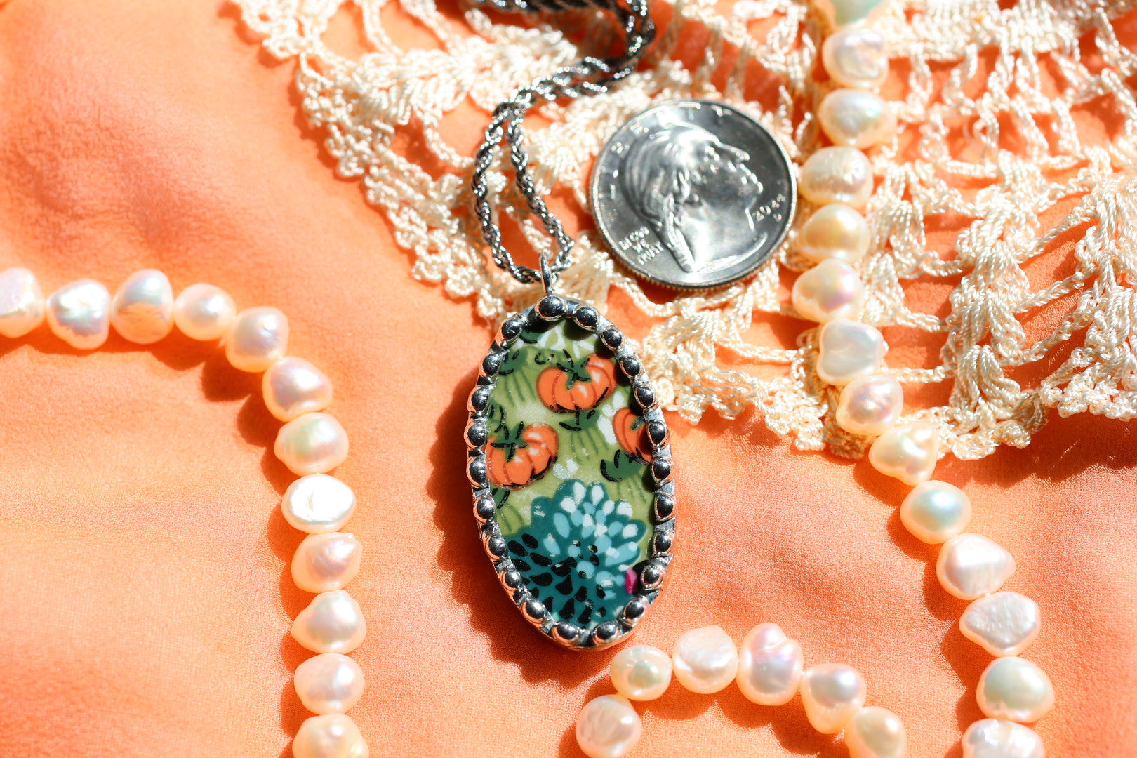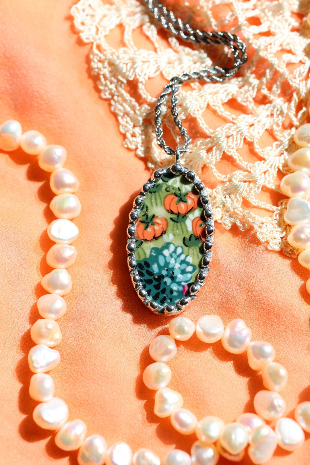 Please remember that these jewelry pieces are made from a unique and unusual medium—vintage dishware. With this, there can be curves and varied thicknesses throughout a single piece.