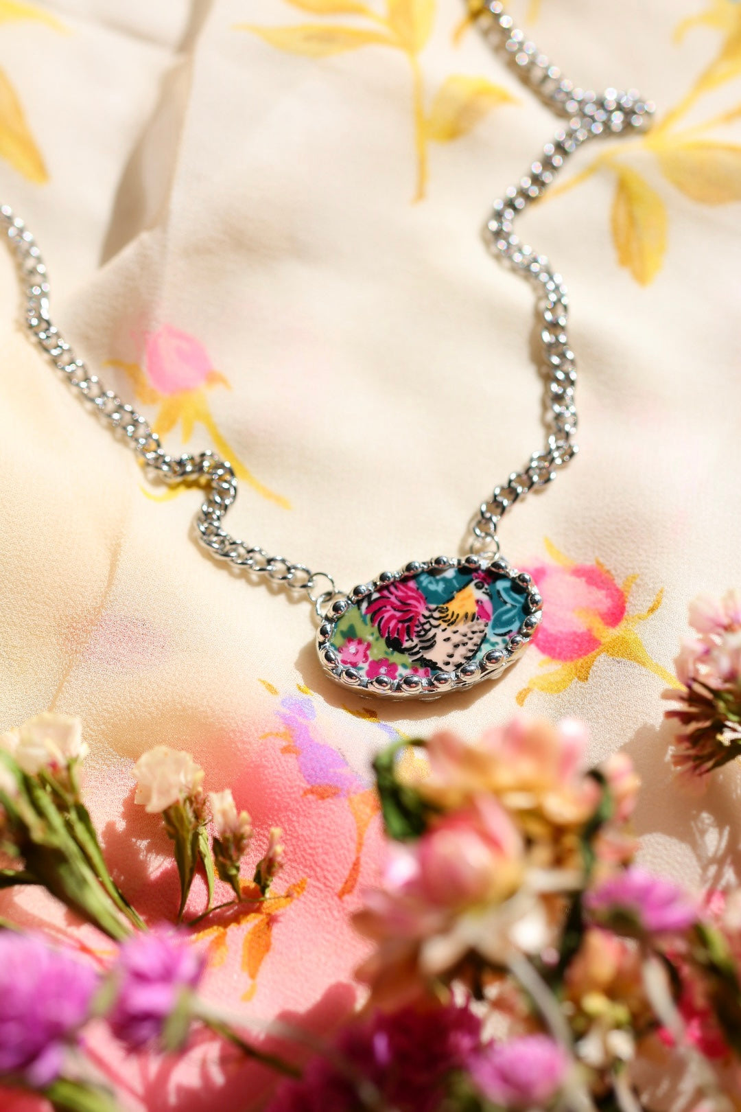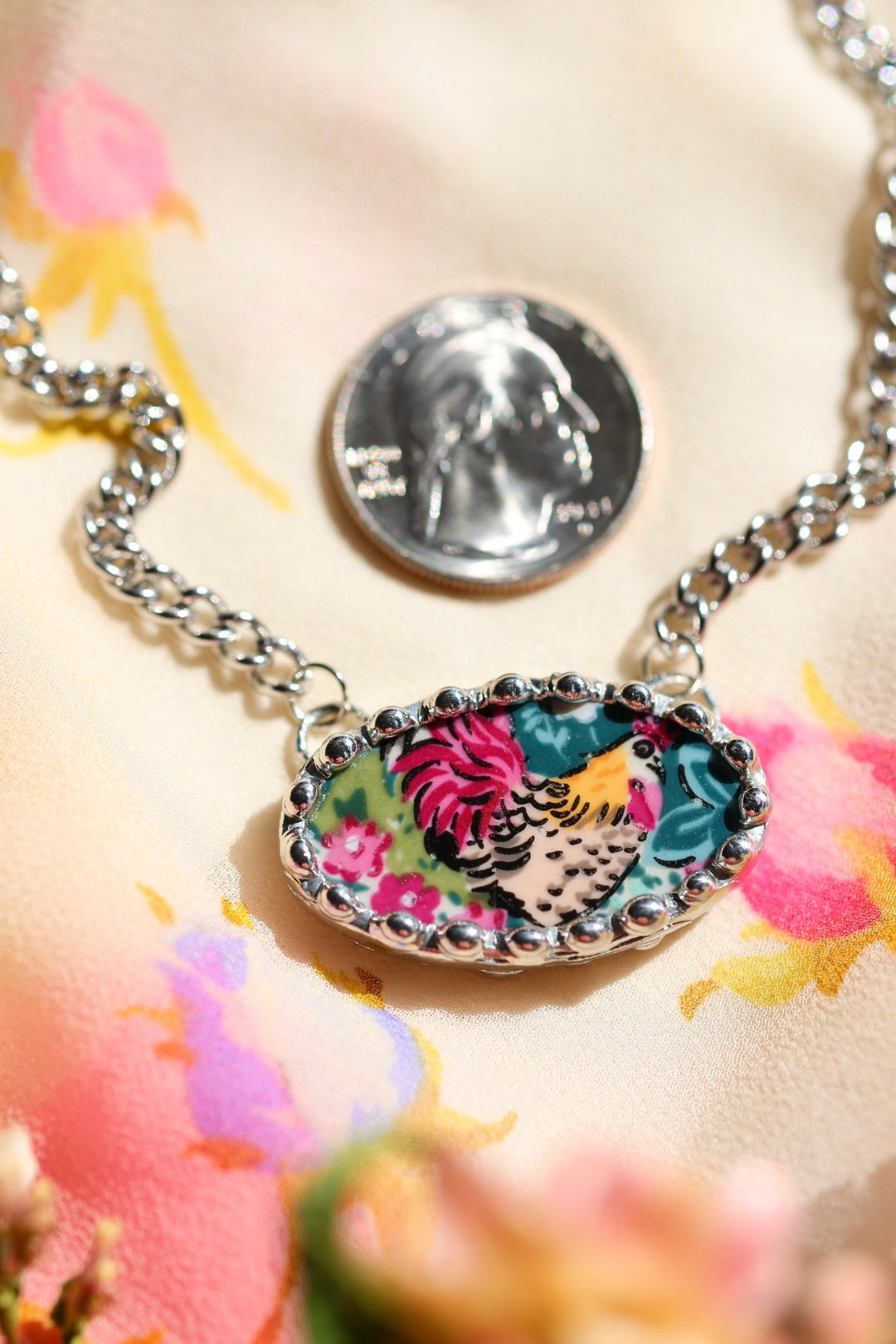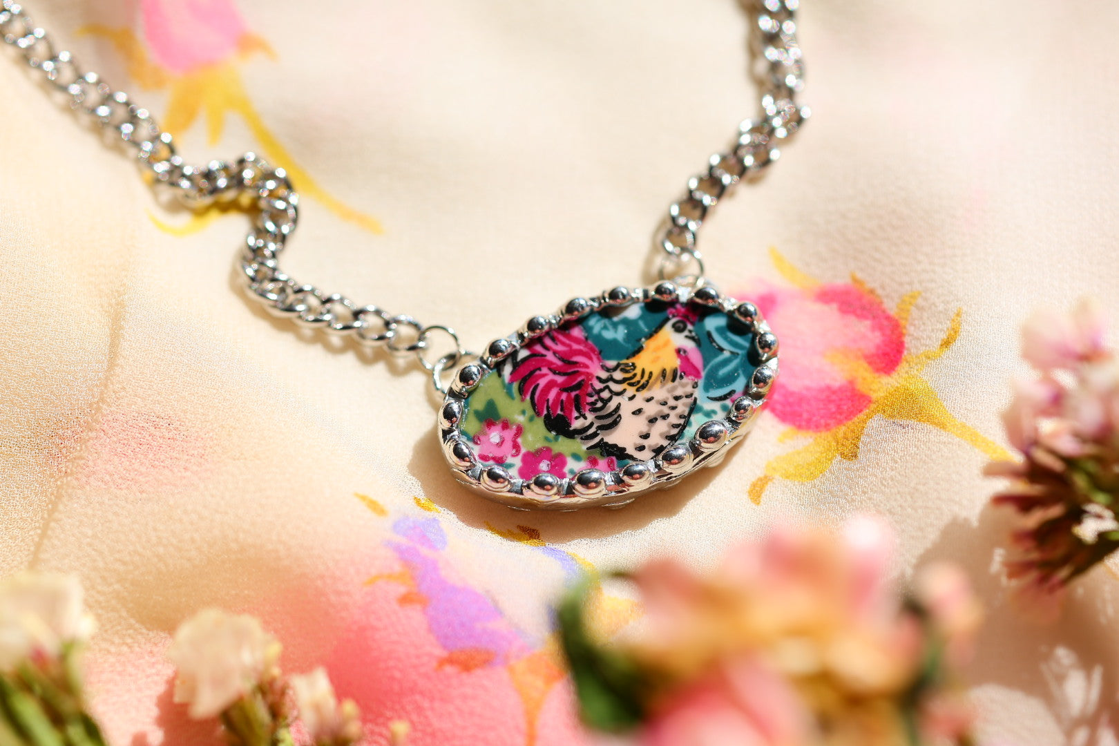 Please remember that these jewelry pieces are made from a unique and unusual medium—vintage dishware. With this, there can be curves and varied thicknesses throughout a single piece.