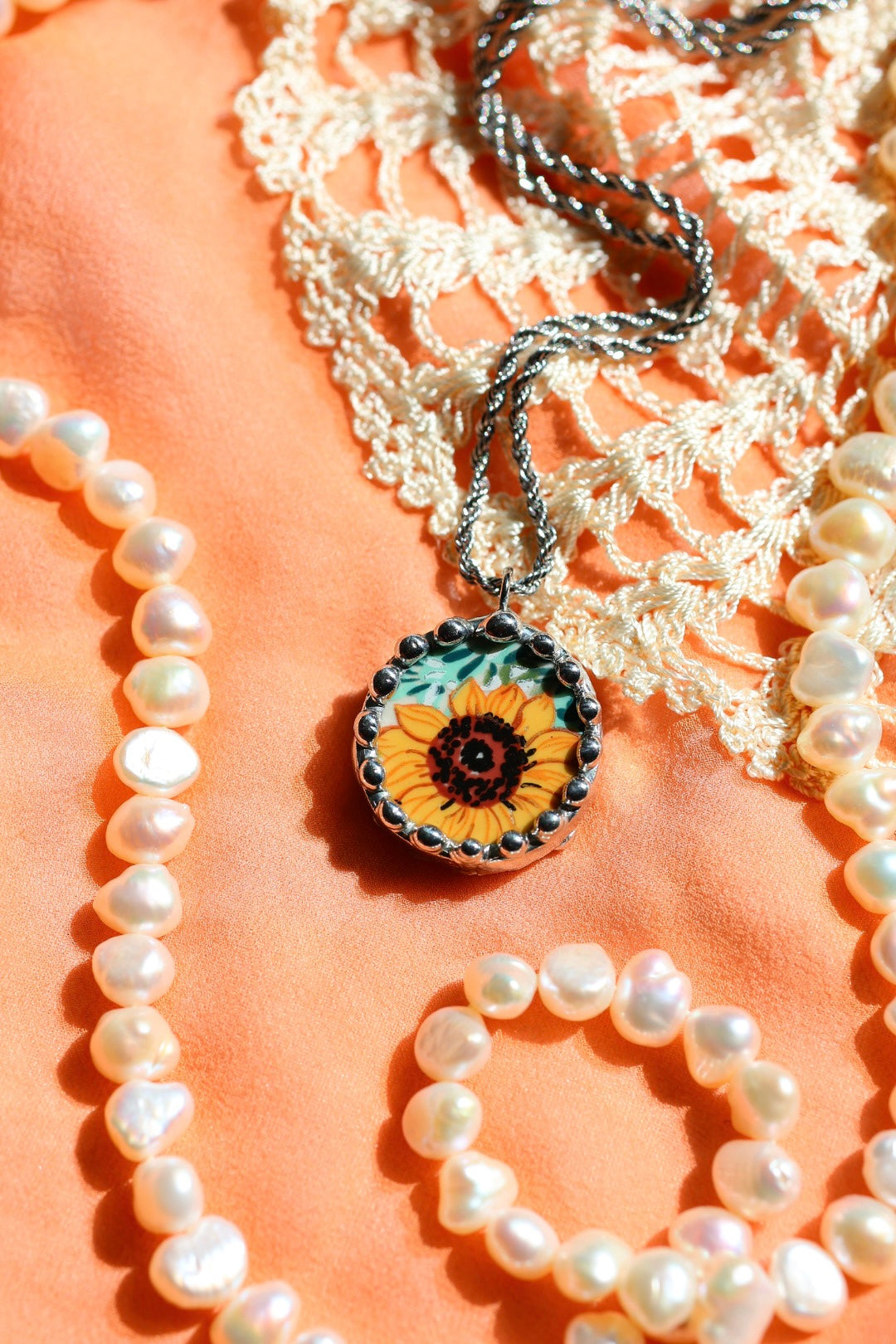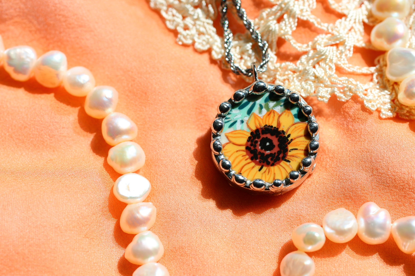 Please remember that these jewelry pieces are made from a unique and unusual medium—vintage dishware. With this, there can be curves and varied thicknesses throughout a single piece.