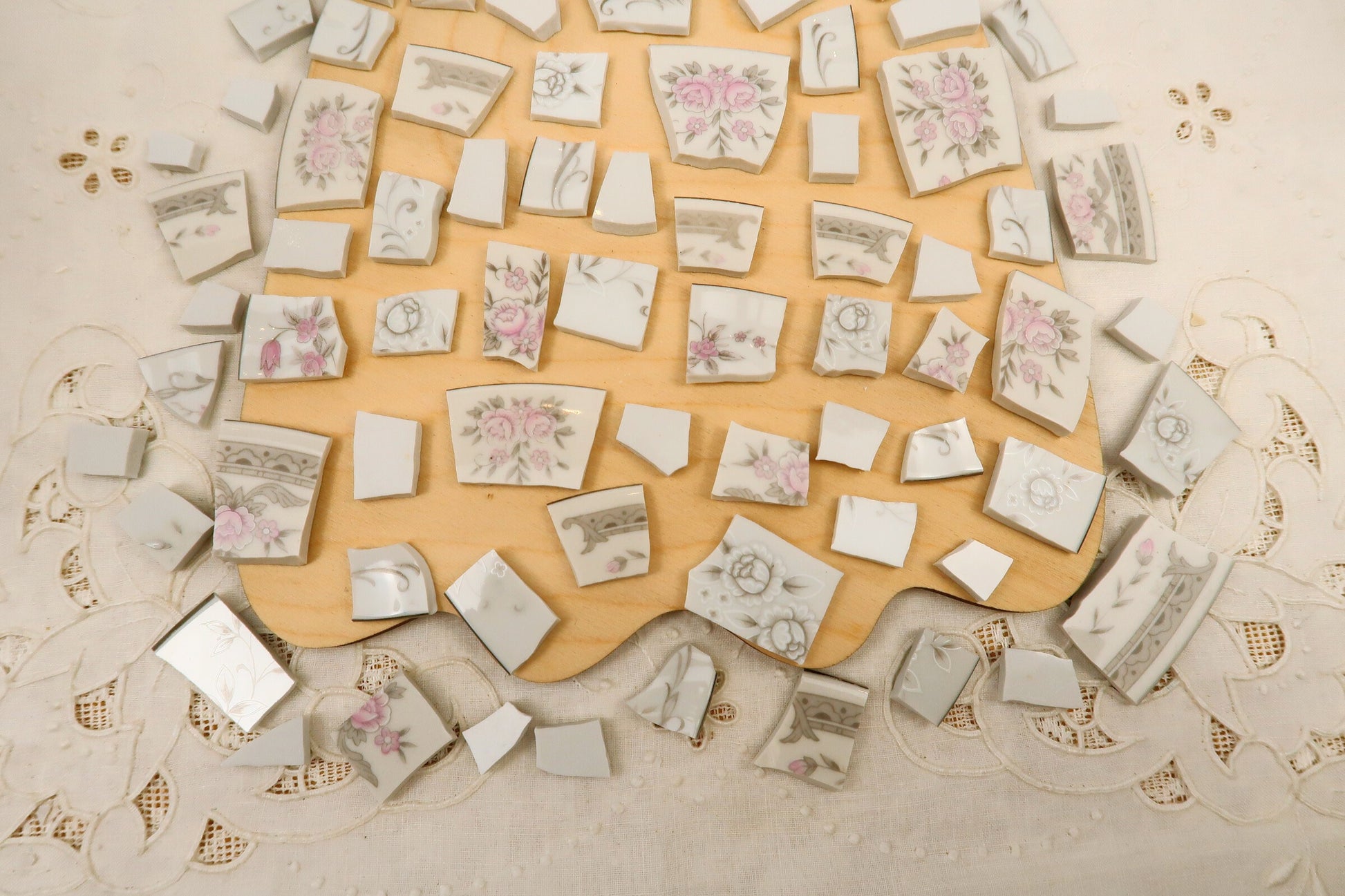 - A hand-selected assortment of broken china Poetic Mosaic tiles