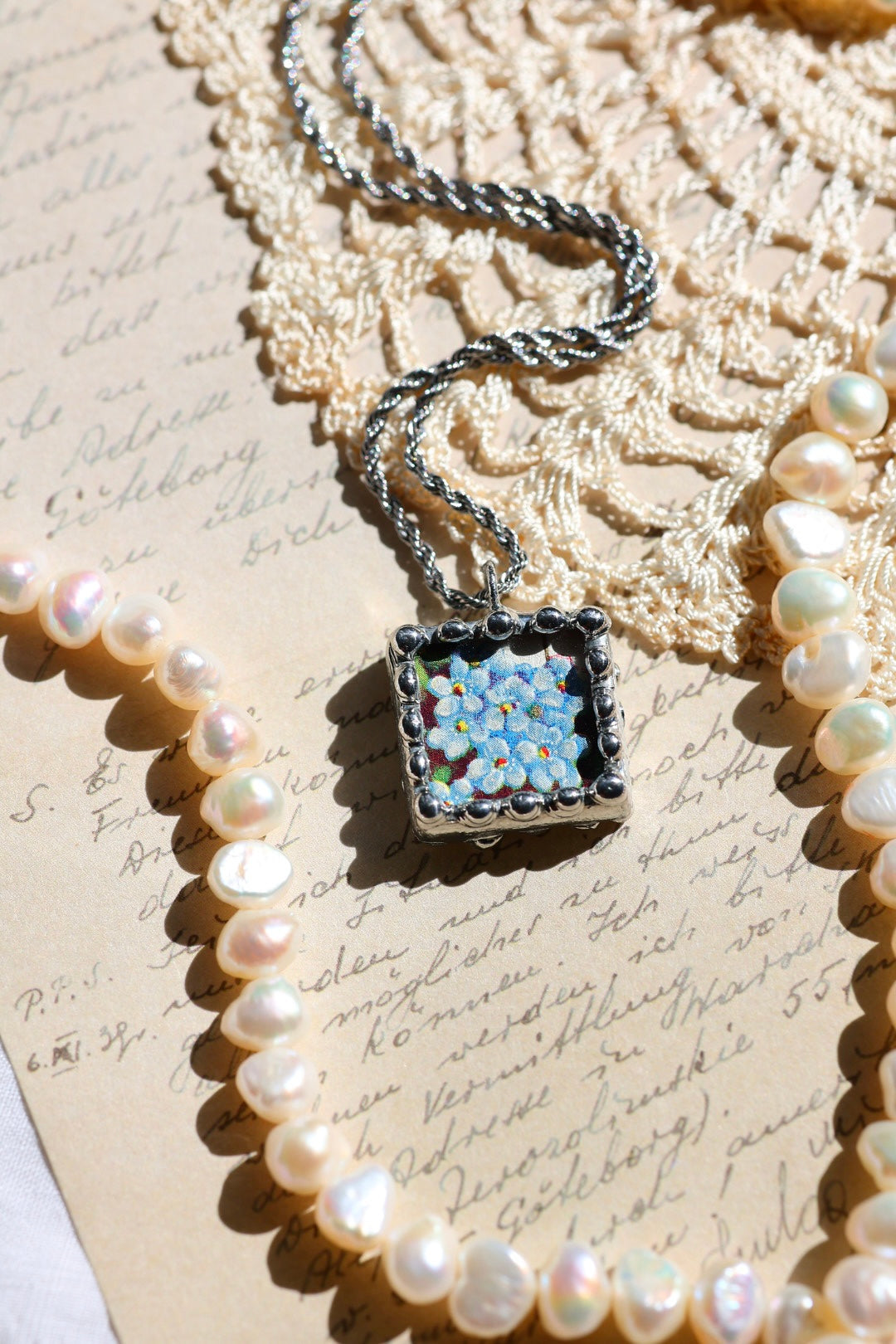 Please remember that these jewelry pieces are made from a unique and unusual medium—vintage dishware. With this, there can be curves and varied thicknesses throughout a single piece.