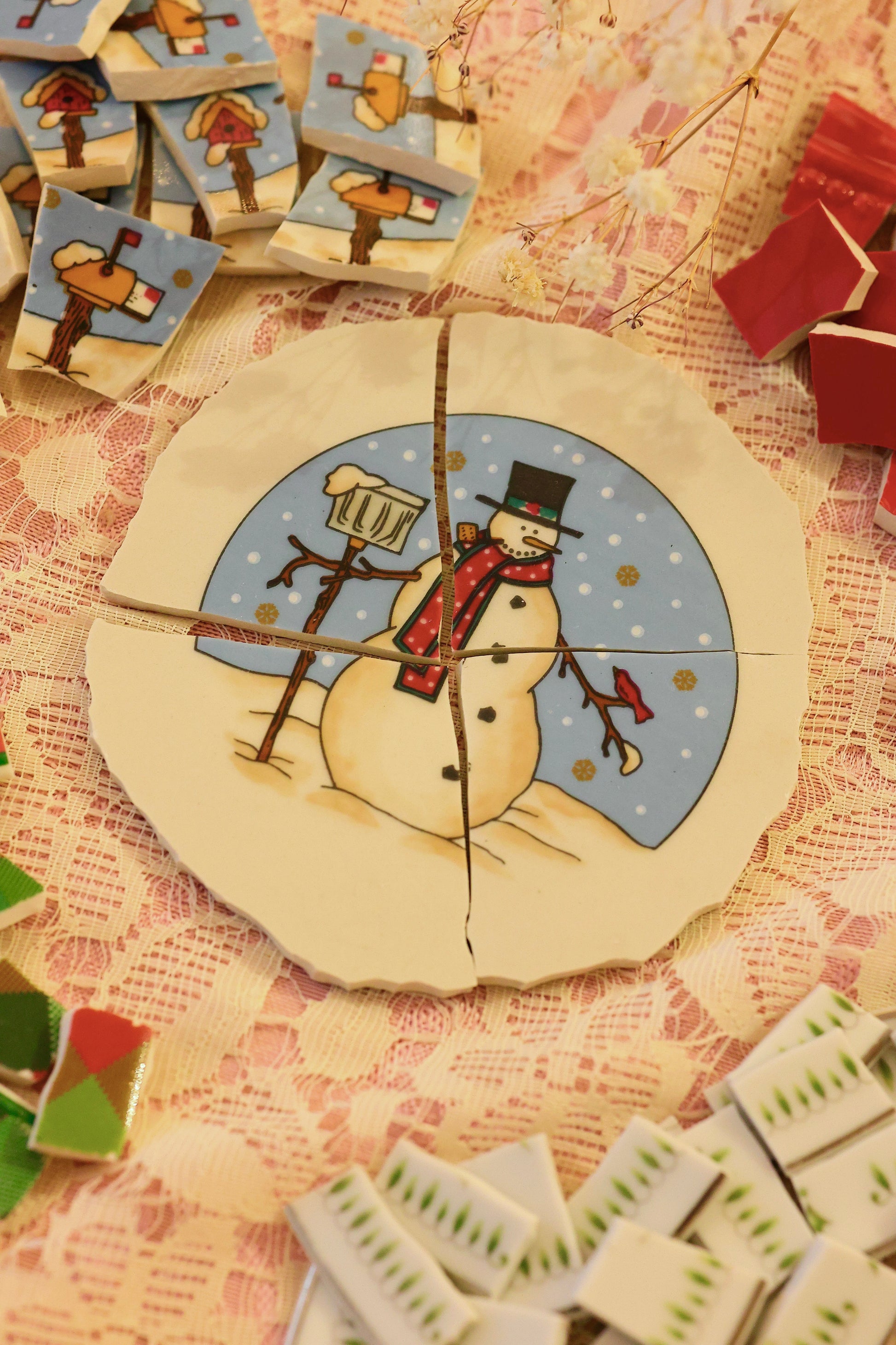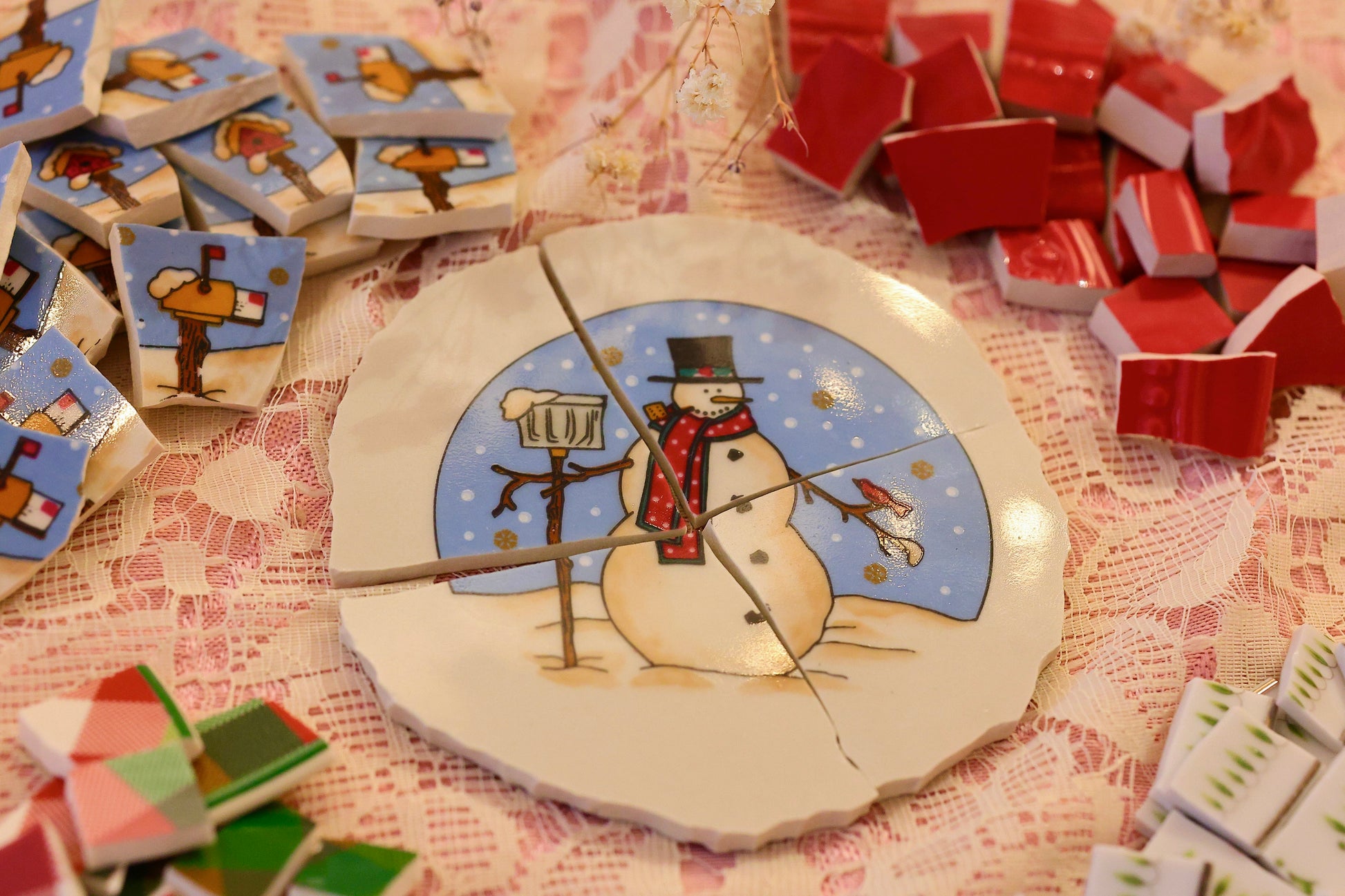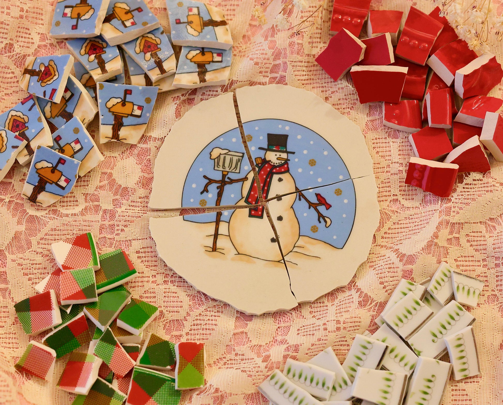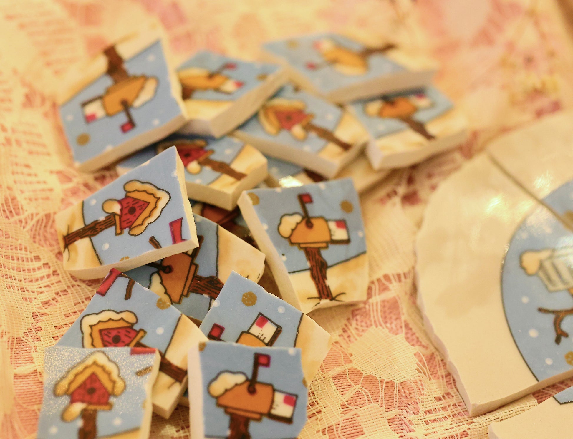 - A hand-selected assortment of broken china Poetic Mosaic tiles