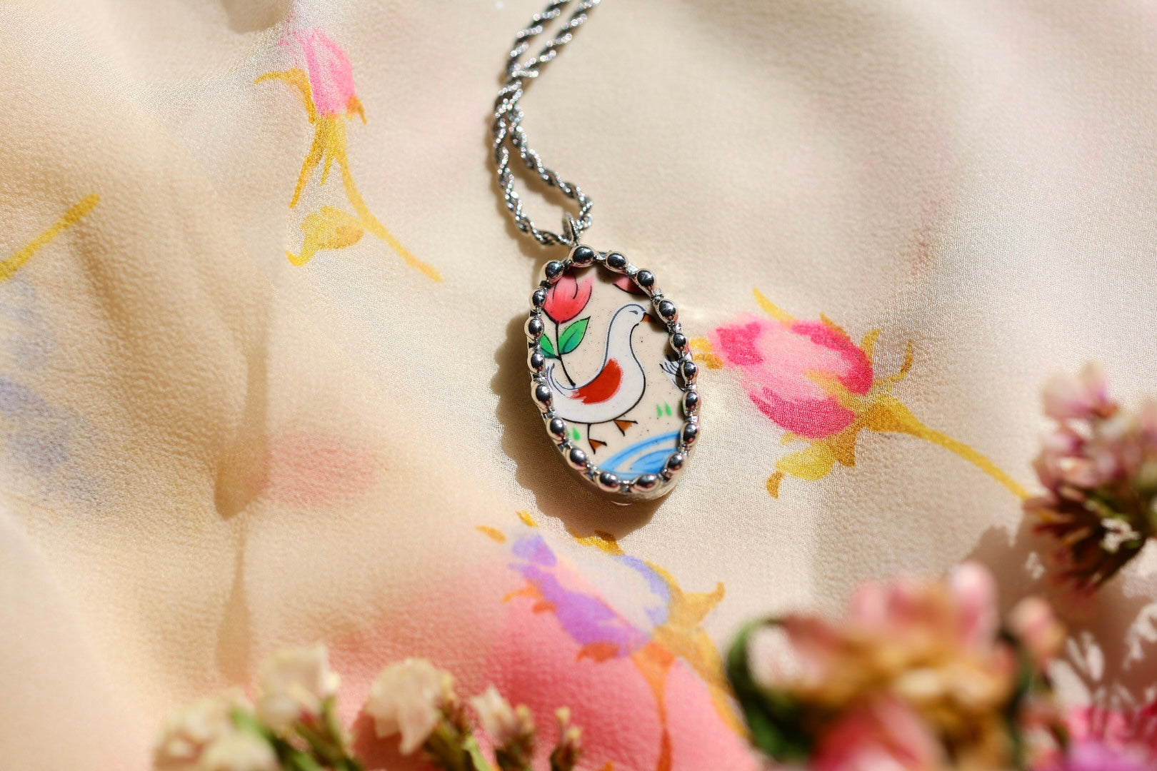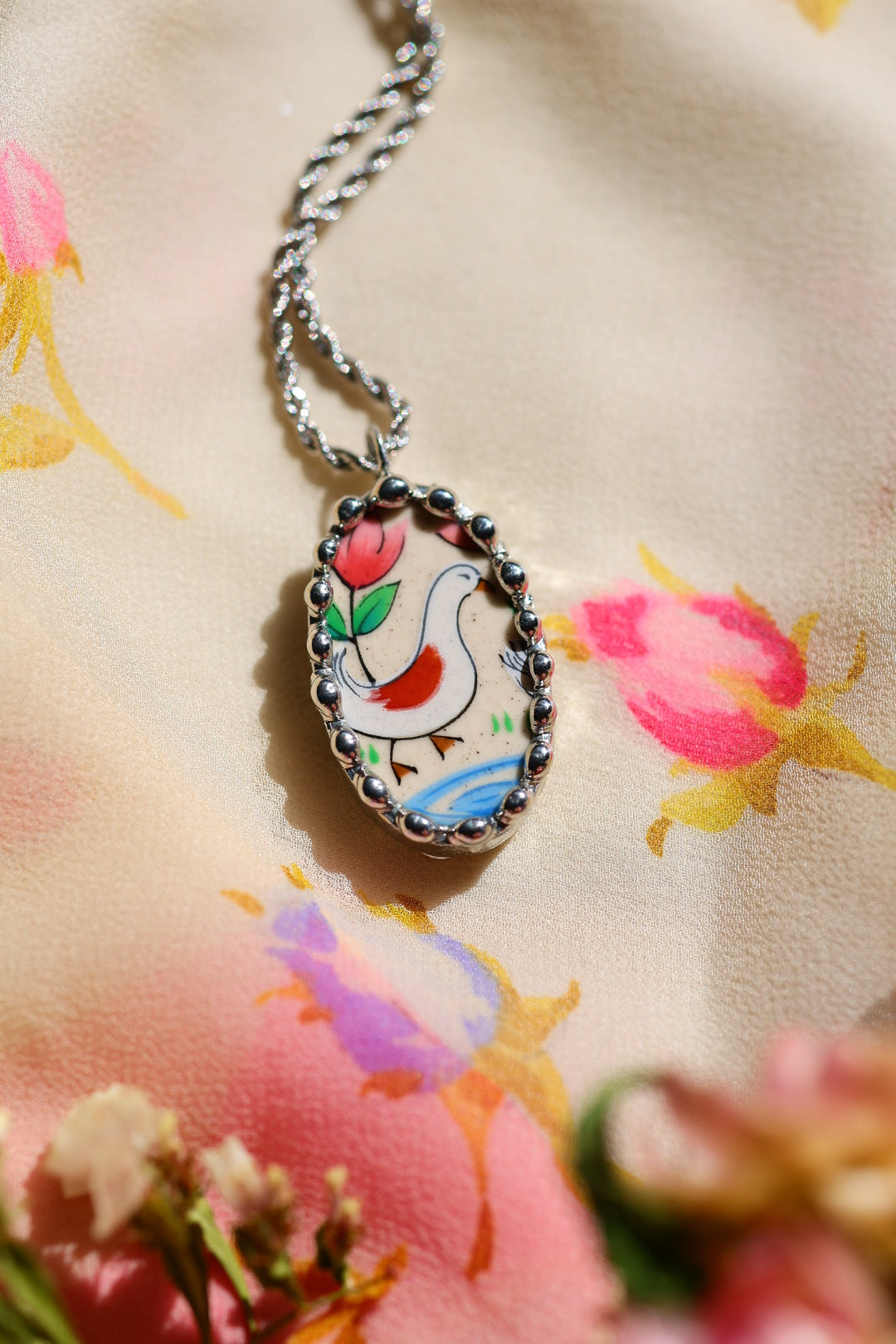 Please remember that these jewelry pieces are made from a unique and unusual medium—vintage dishware. With this, there can be curves and varied thicknesses throughout a single piece.