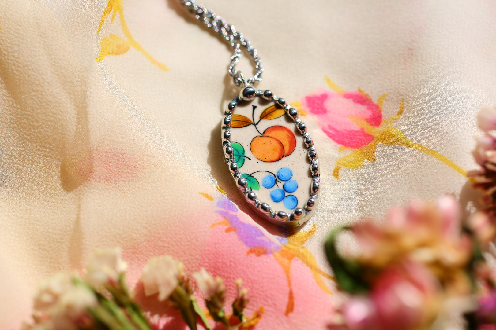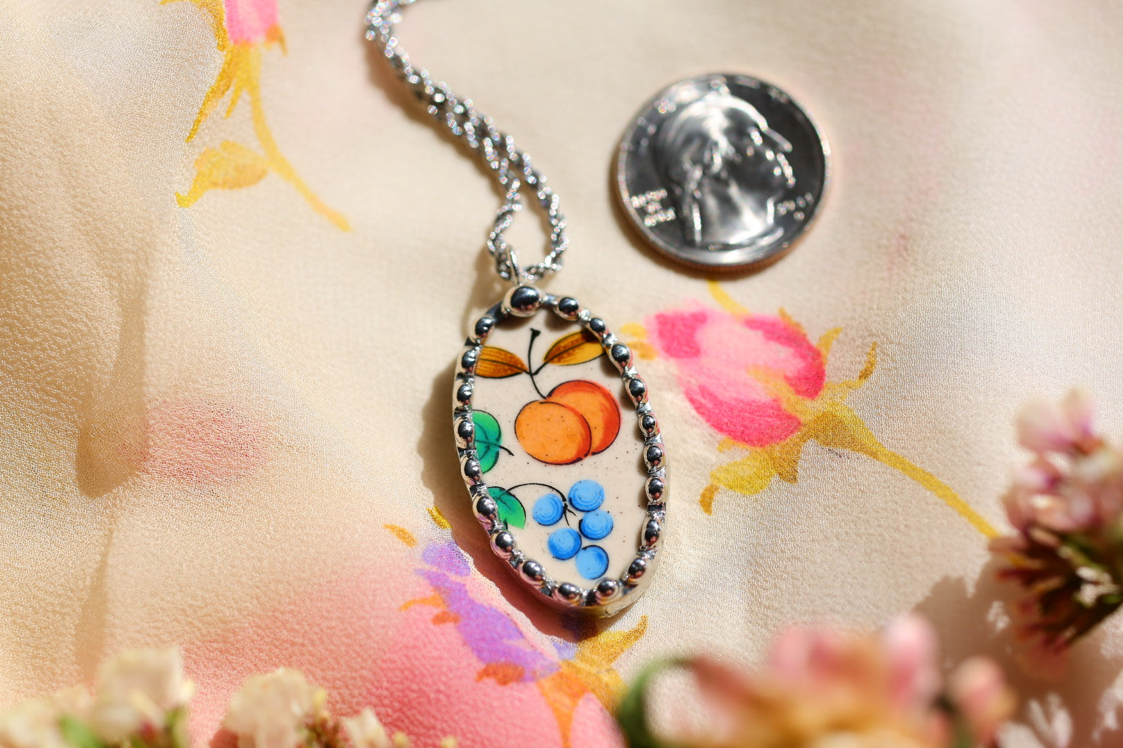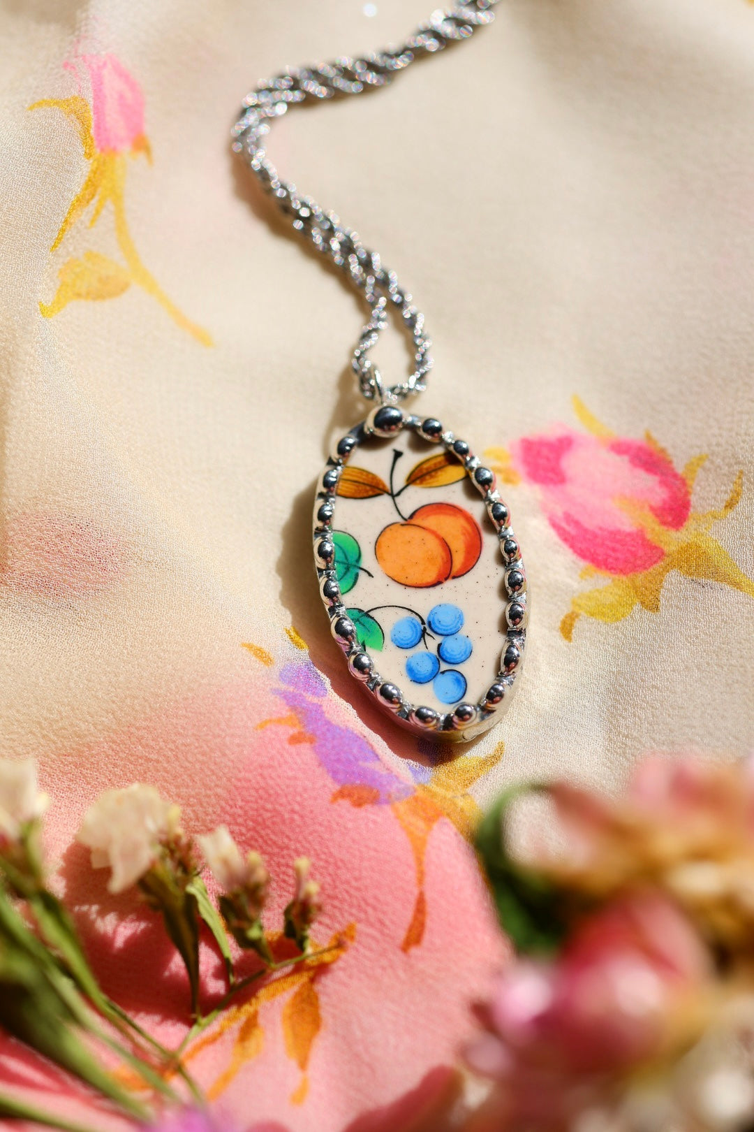 Please remember that these jewelry pieces are made from a unique and unusual medium—vintage dishware. With this, there can be curves and varied thicknesses throughout a single piece.