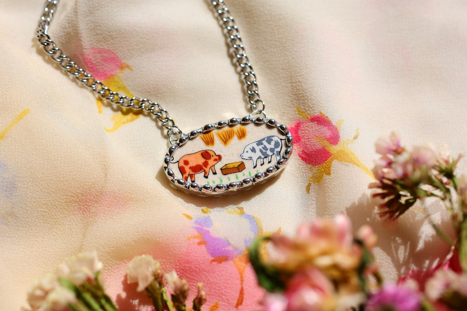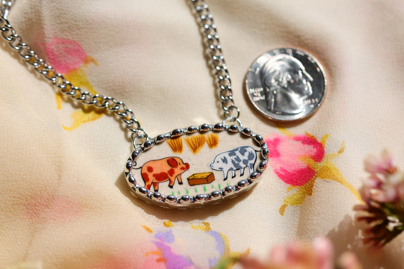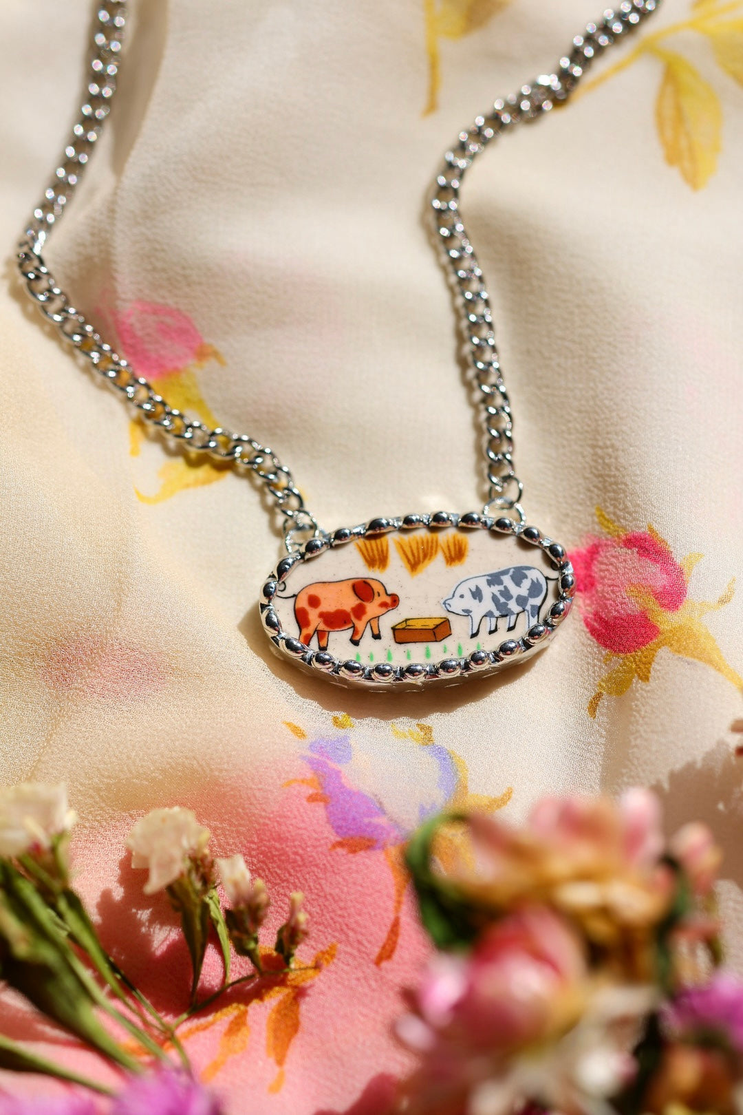 Please remember that these jewelry pieces are made from a unique and unusual medium—vintage dishware. With this, there can be curves and varied thicknesses throughout a single piece.