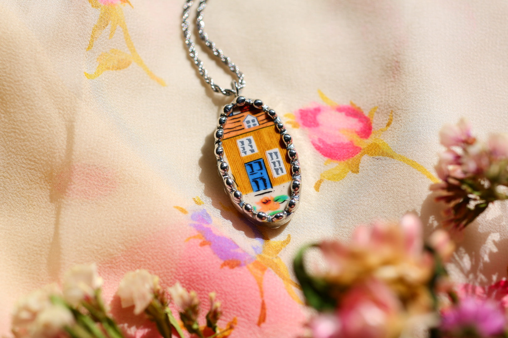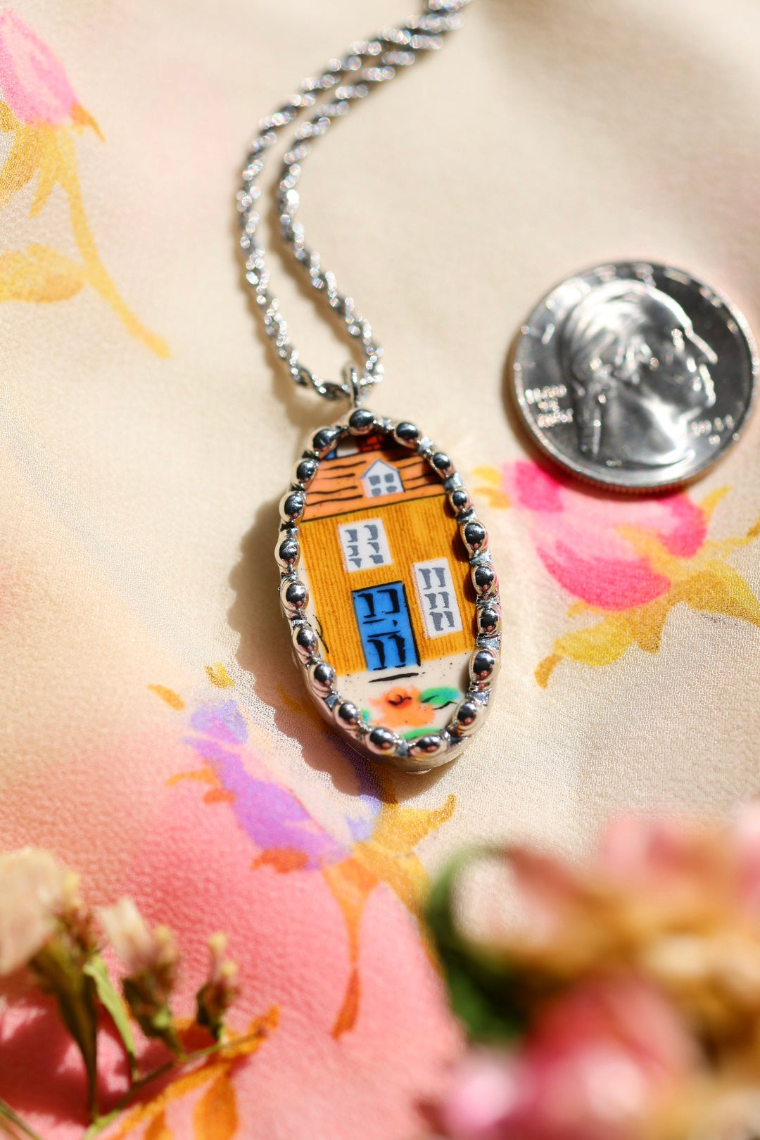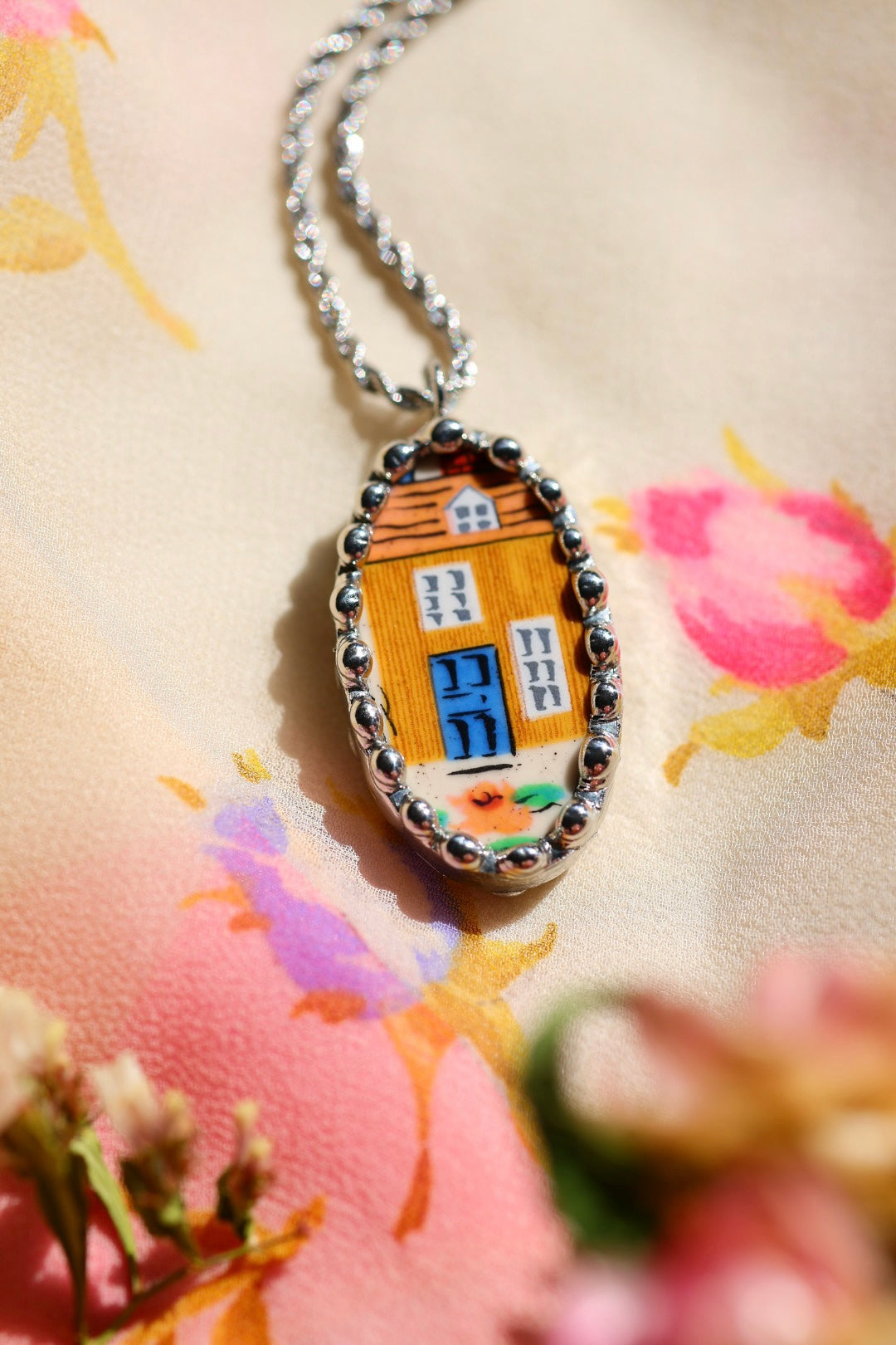 Please remember that these jewelry pieces are made from a unique and unusual medium—vintage dishware. With this, there can be curves and varied thicknesses throughout a single piece.
