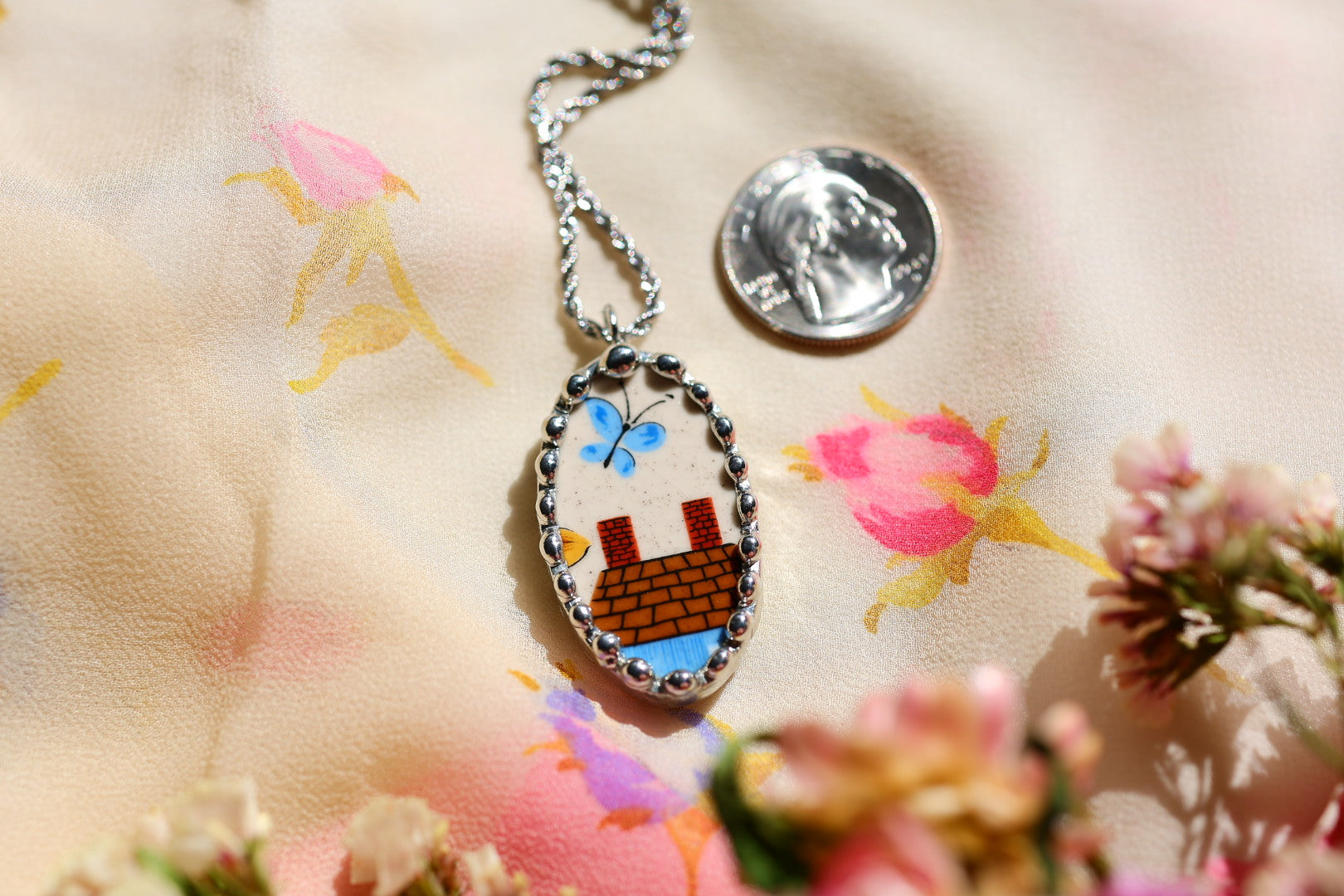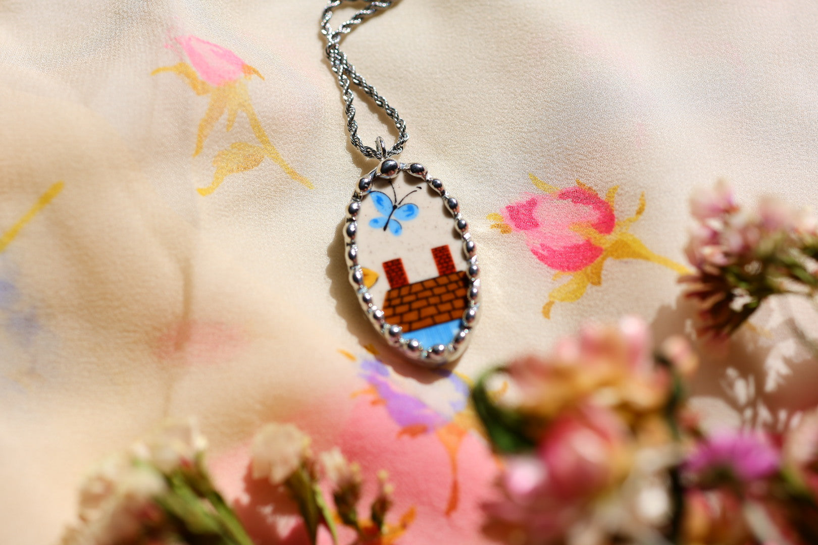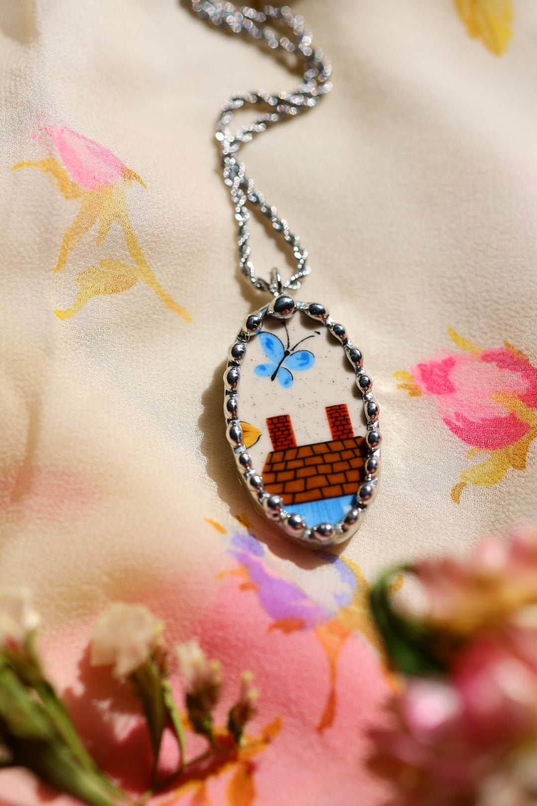 Please remember that these jewelry pieces are made from a unique and unusual medium—vintage dishware. With this, there can be curves and varied thicknesses throughout a single piece.