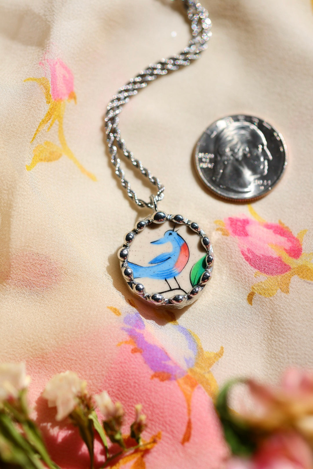 Please remember that these jewelry pieces are made from a unique and unusual medium—vintage dishware. With this, there can be curves and varied thicknesses throughout a single piece.