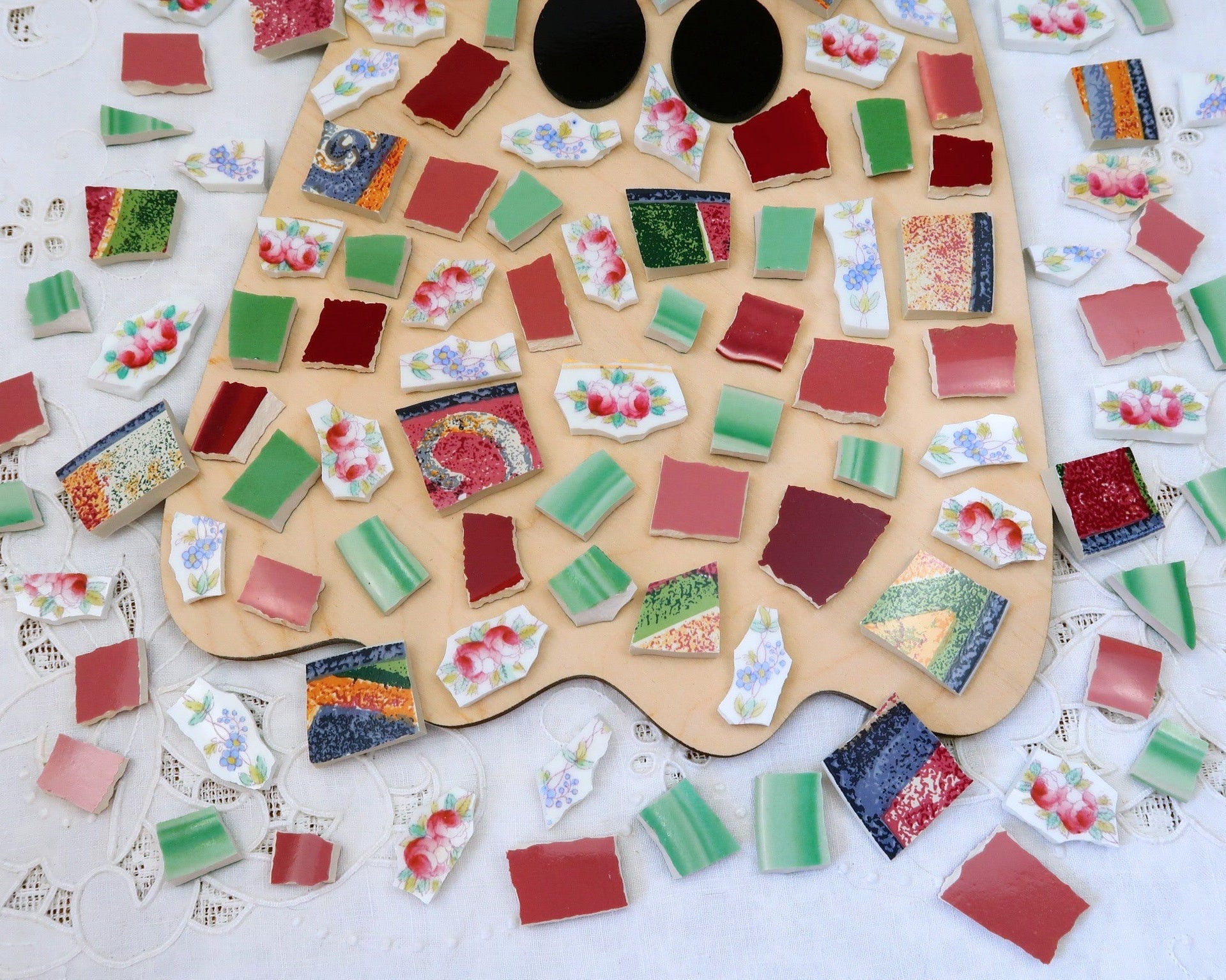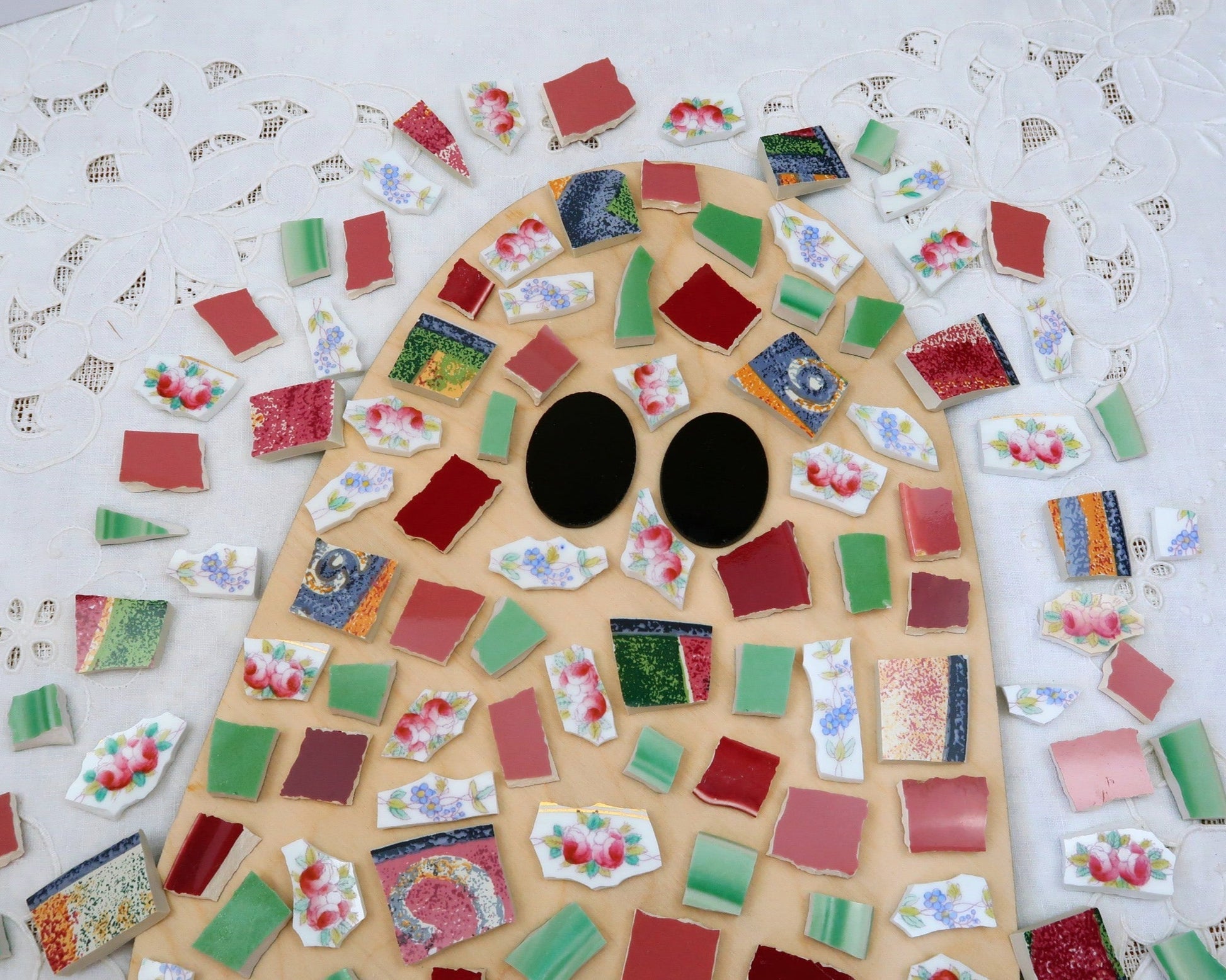 - A hand-selected assortment of broken china Poetic Mosaic tiles