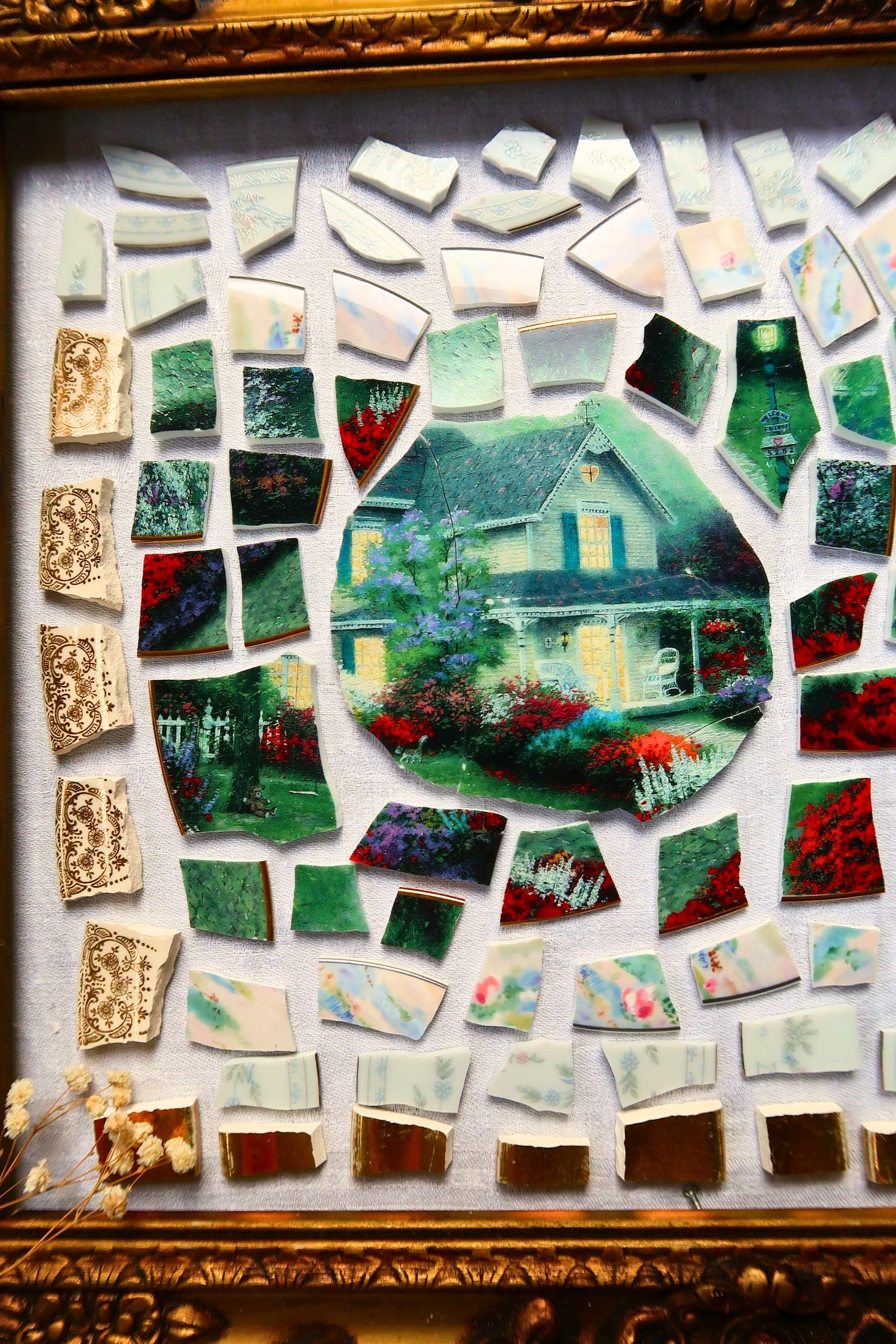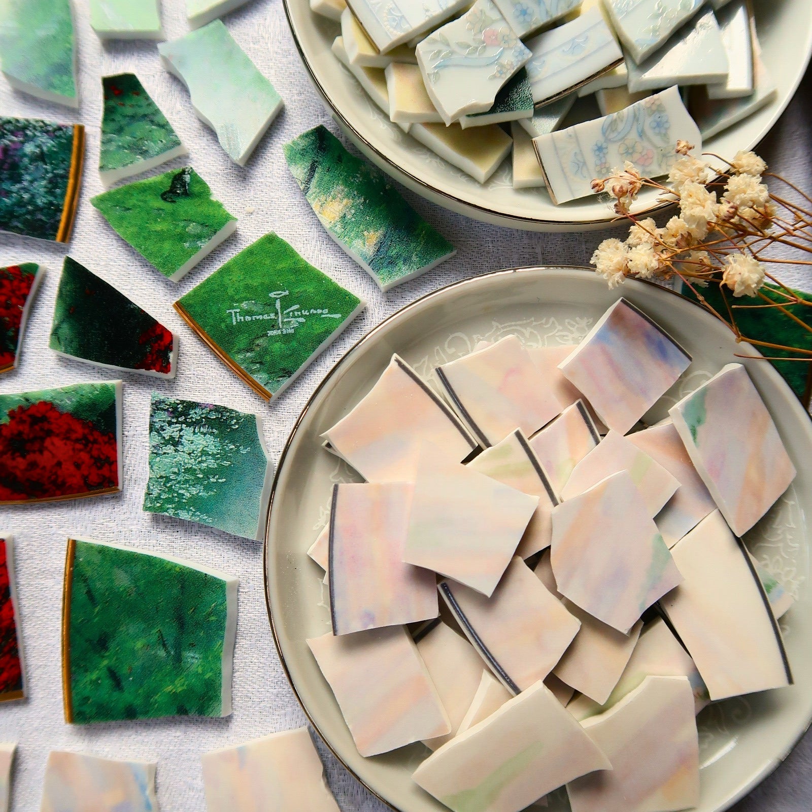 - A hand-selected assortment of broken china Poetic Mosaic tiles