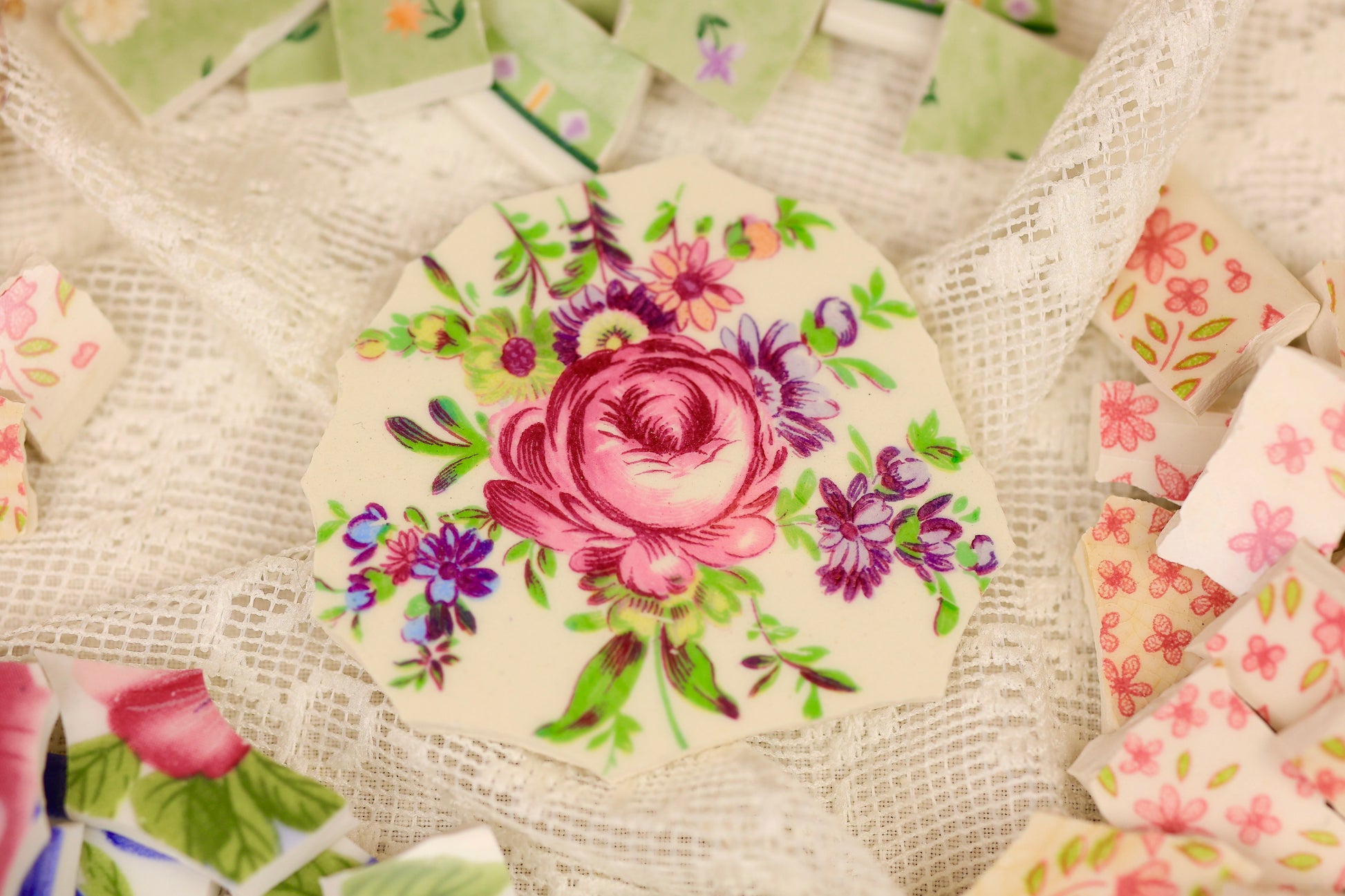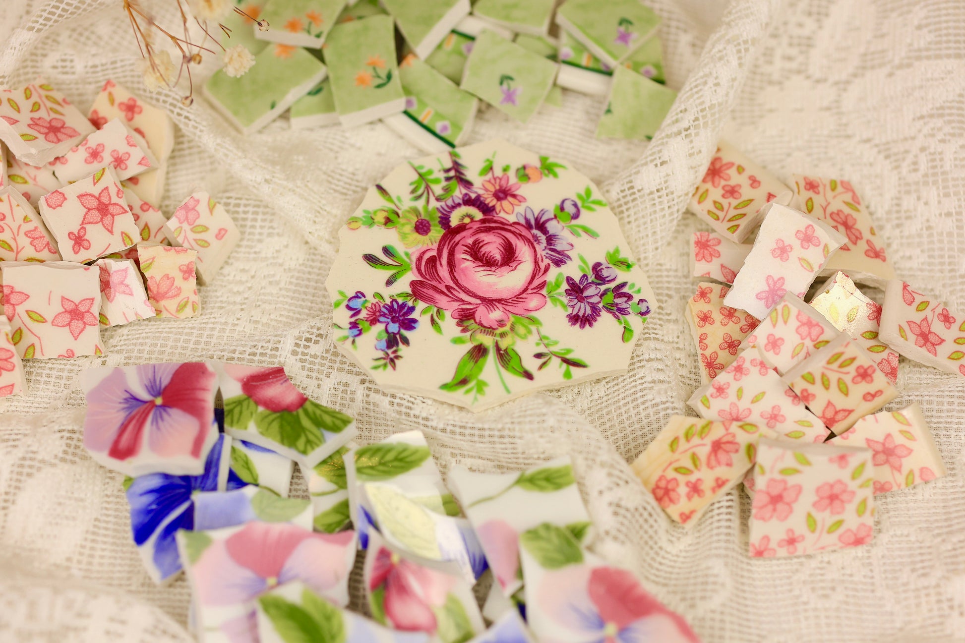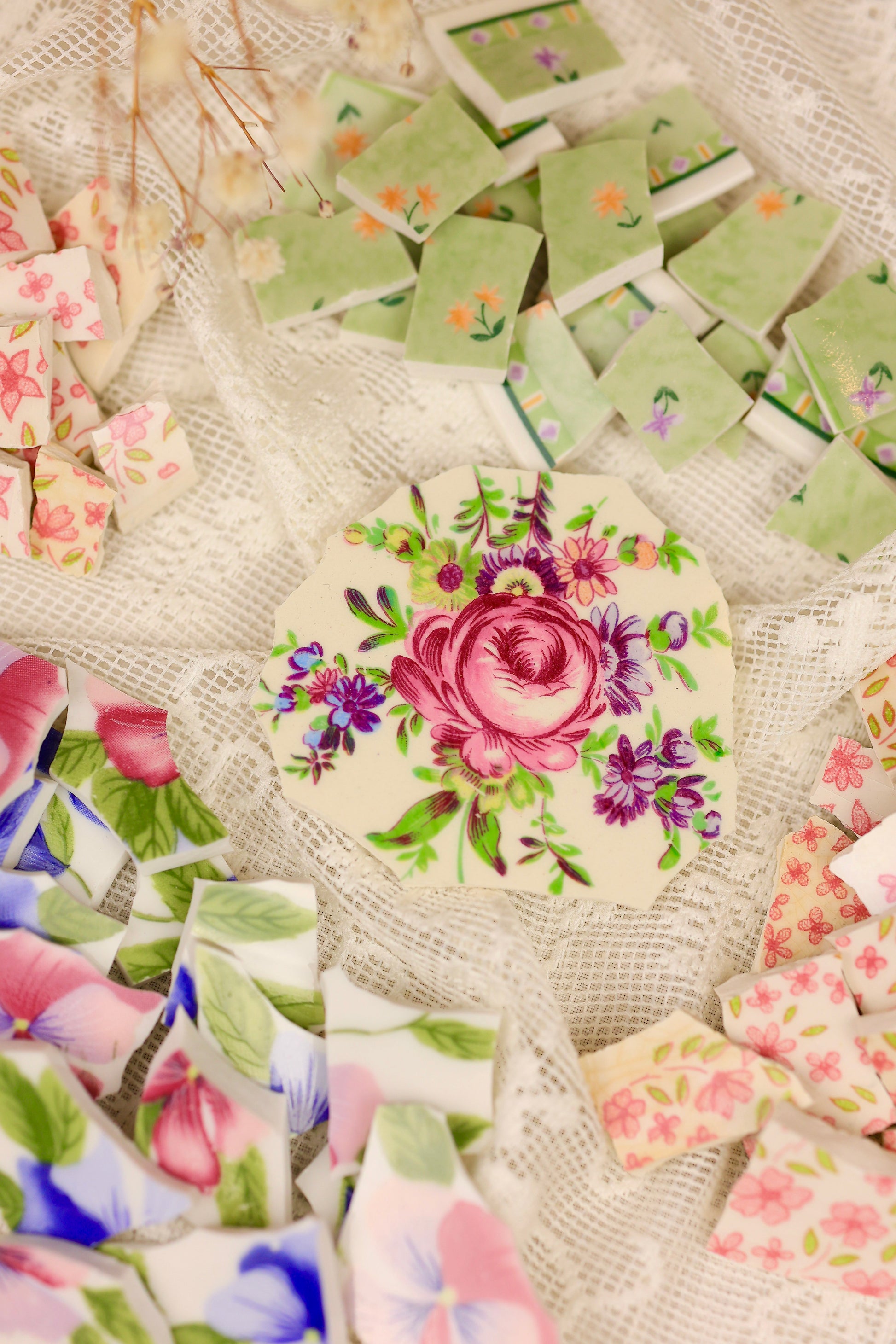 • A hand-selected assortment of broken china Poetic Mosaic tiles