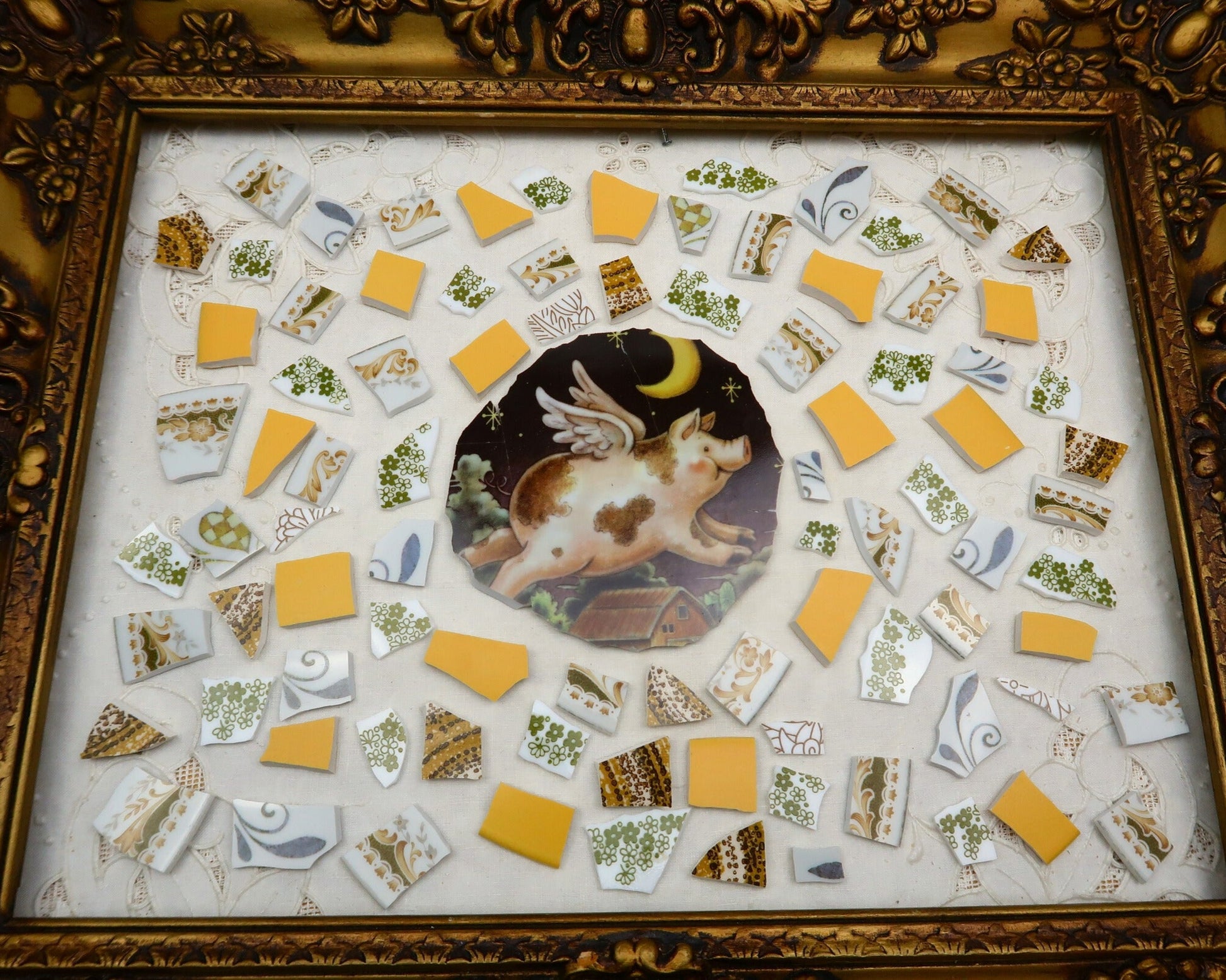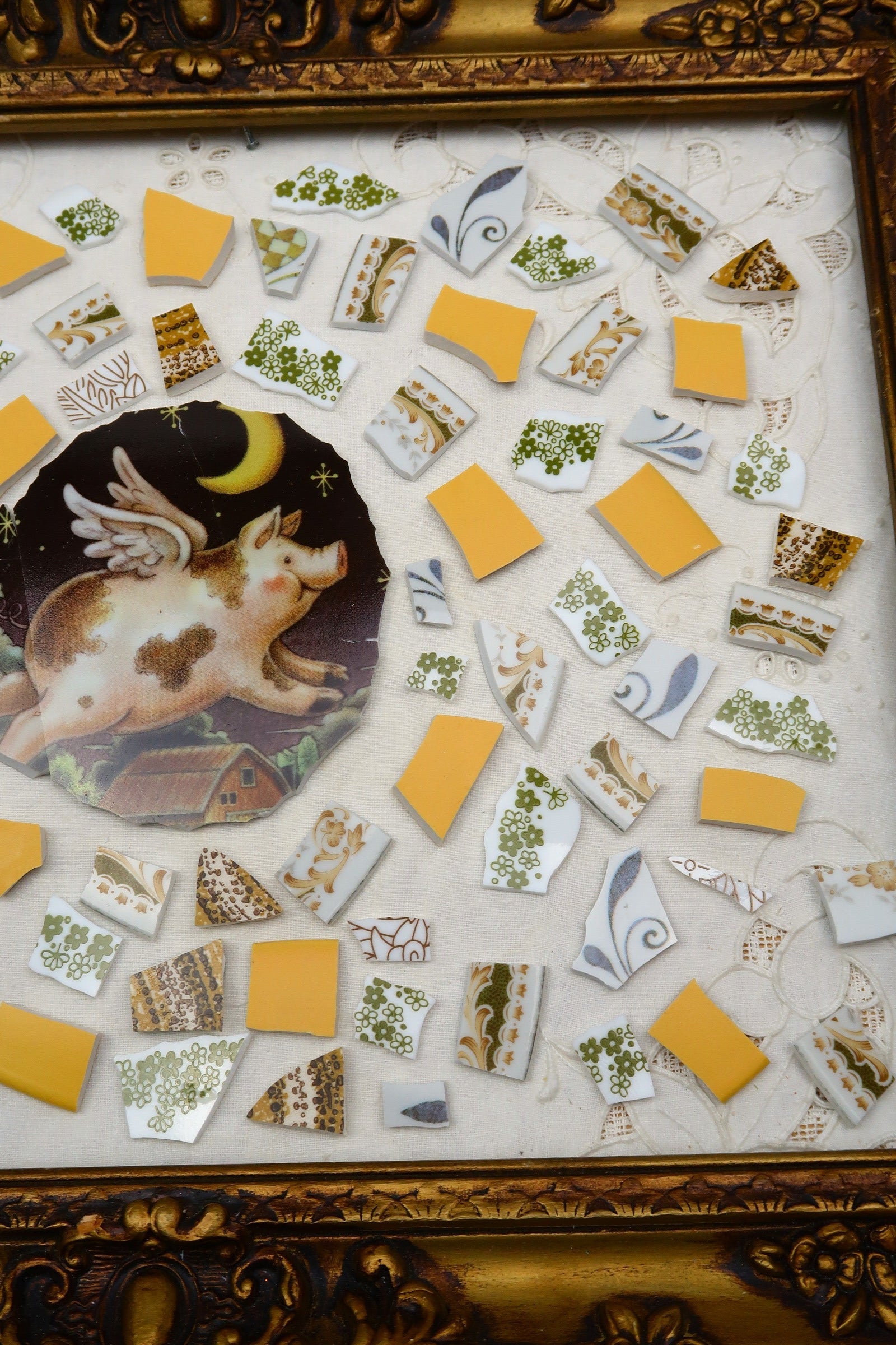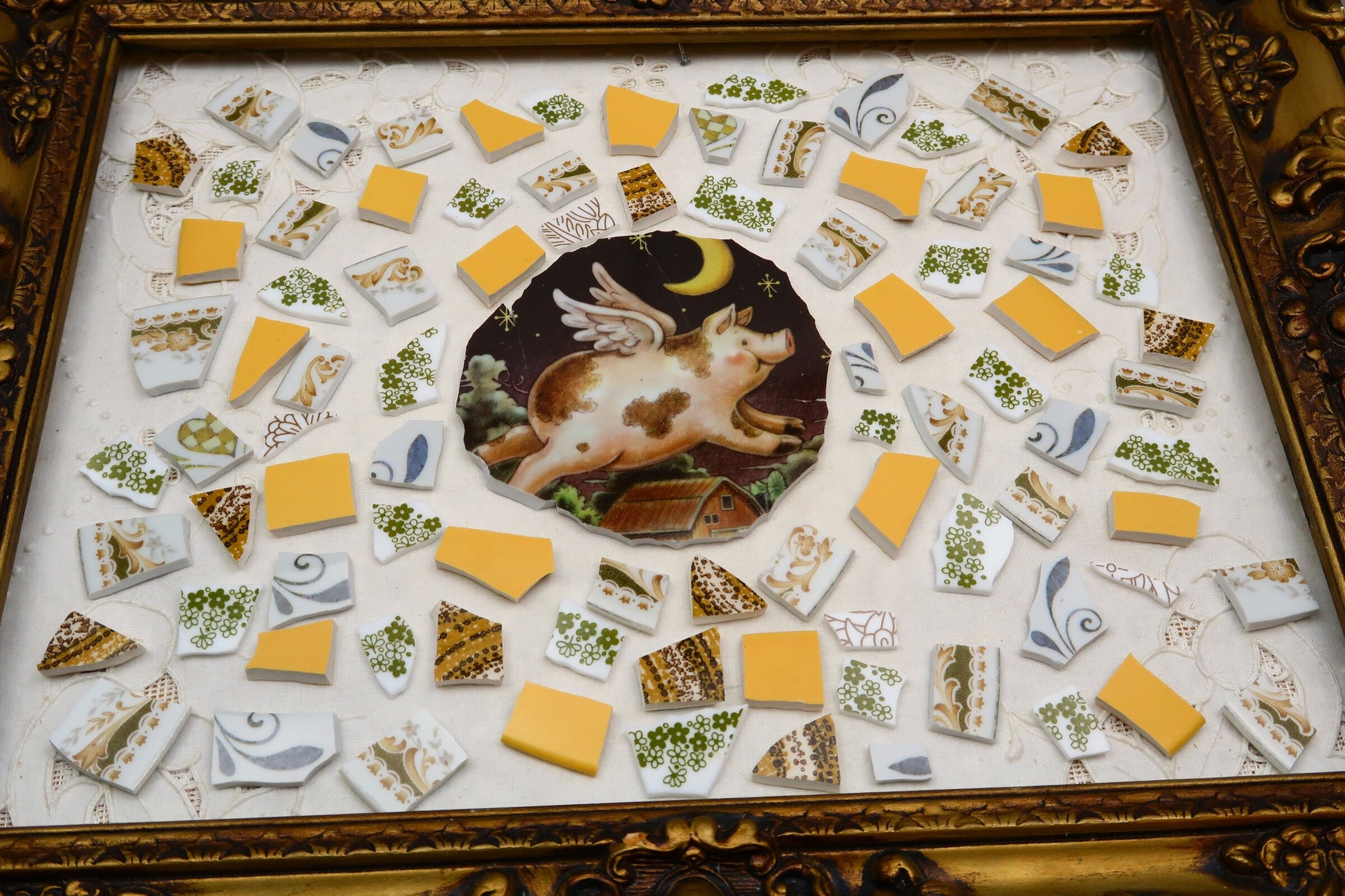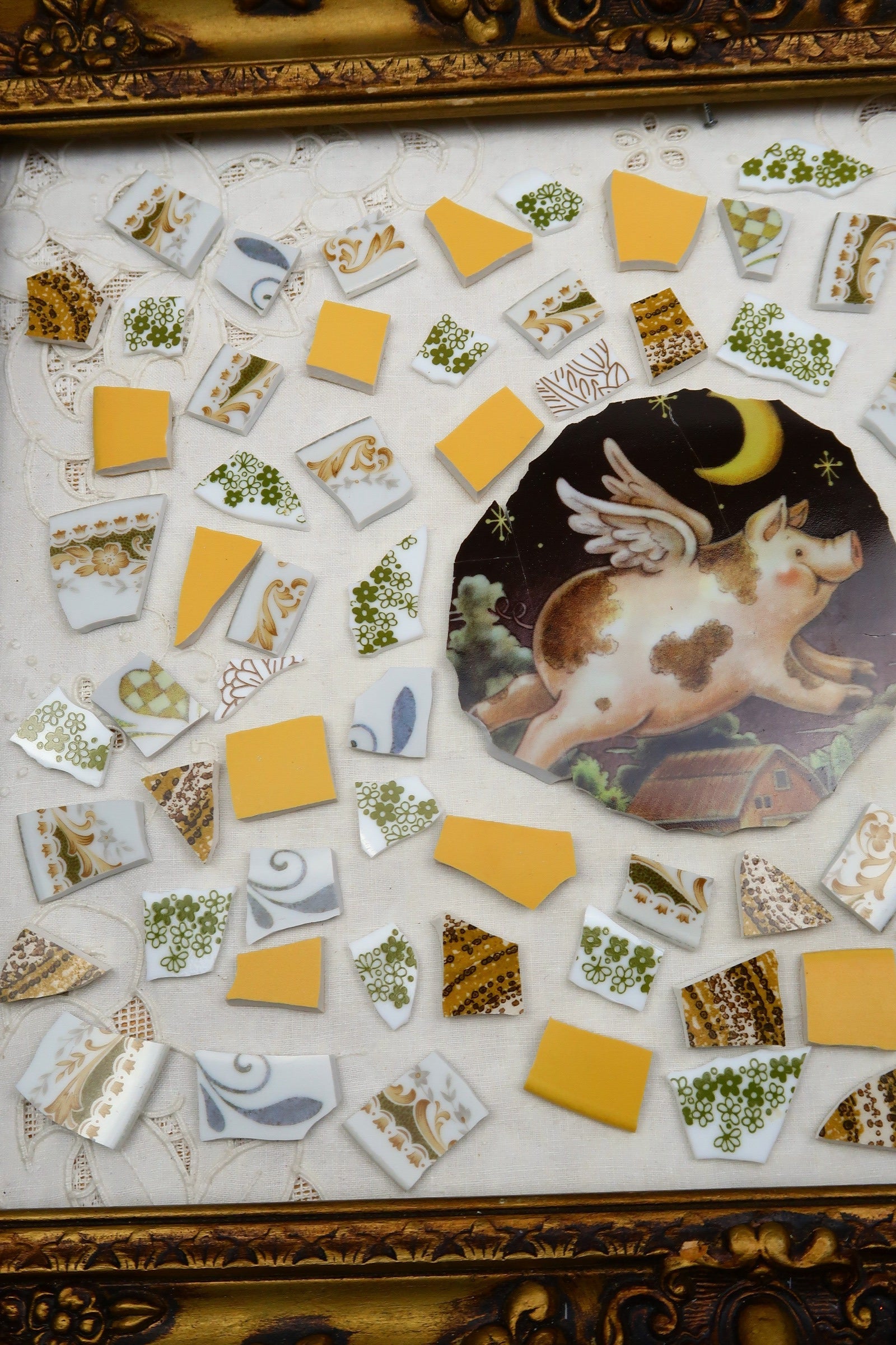 - A hand-selected assortment of broken china Poetic Mosaic tiles