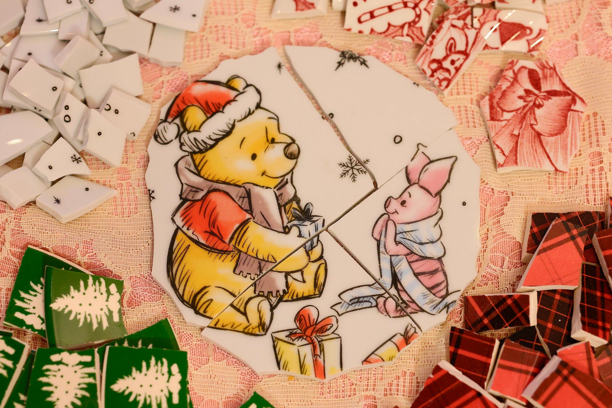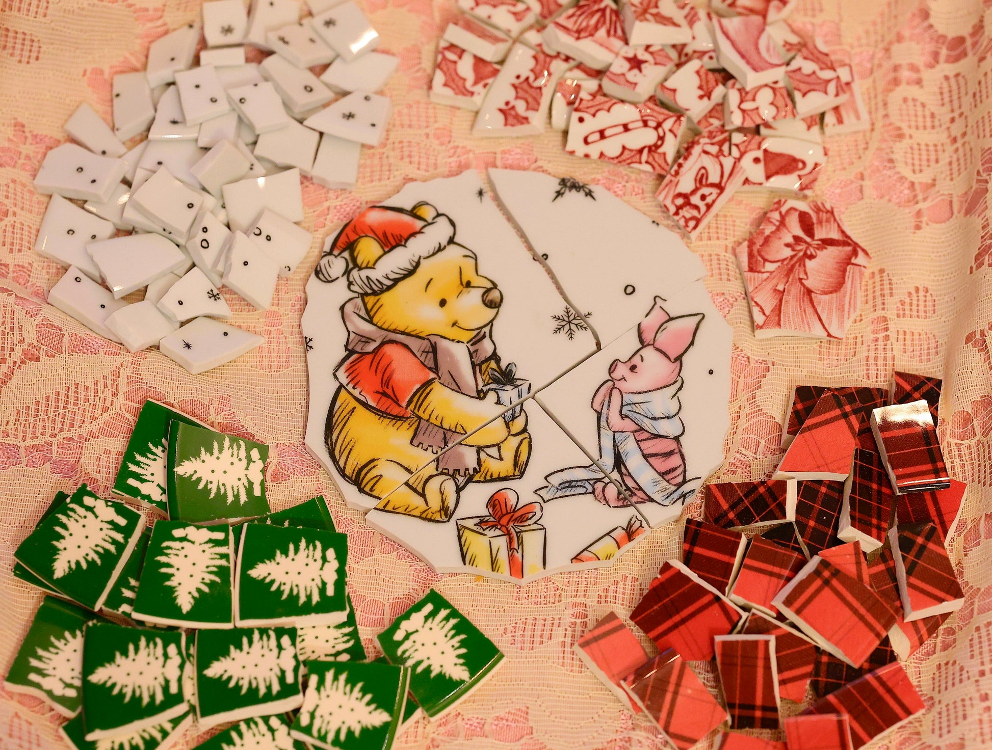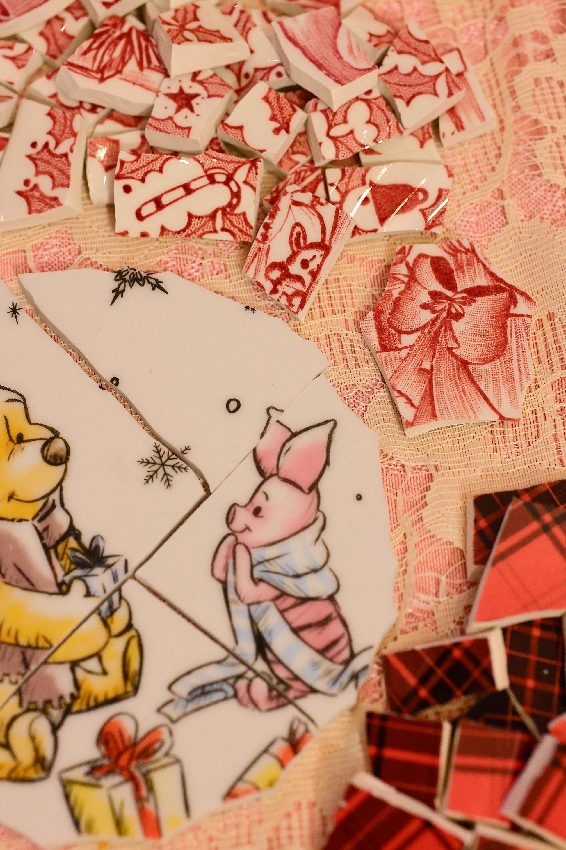 - A hand-selected assortment of broken china Poetic Mosaic tiles