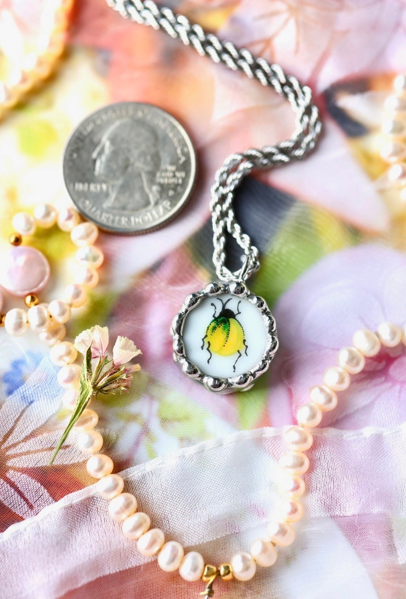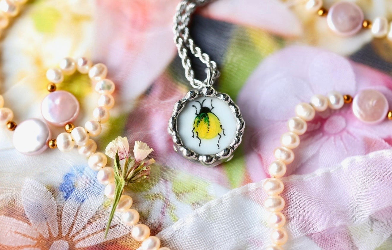 Please remember that these jewelry pieces are made from a unique and unusual medium—vintage dishware. With this, there can be curves and varied thicknesses throughout a single piece.