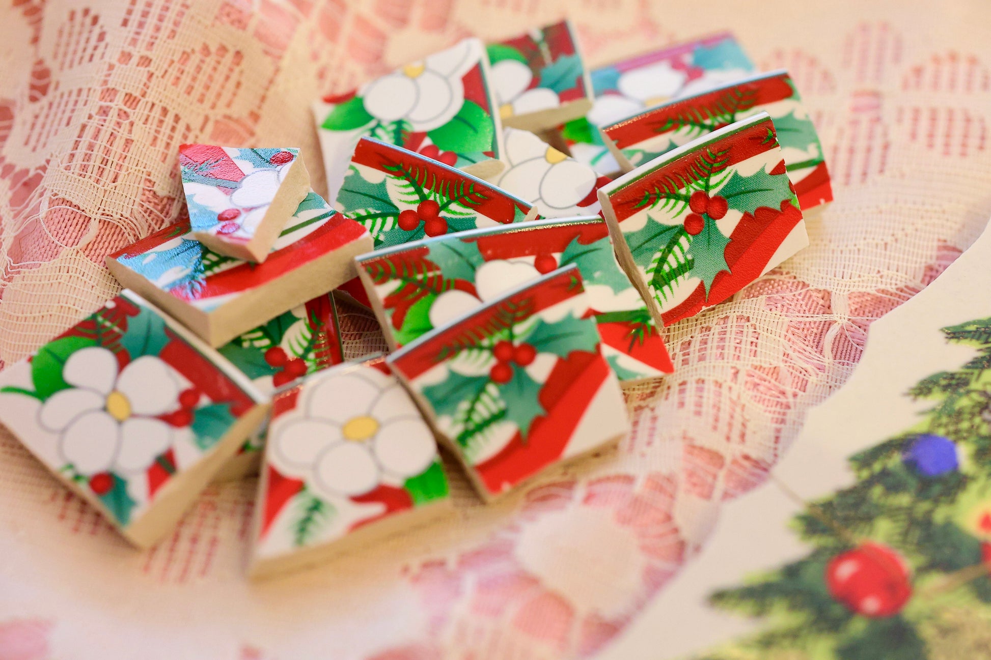 - A hand-selected assortment of broken china Poetic Mosaic tiles