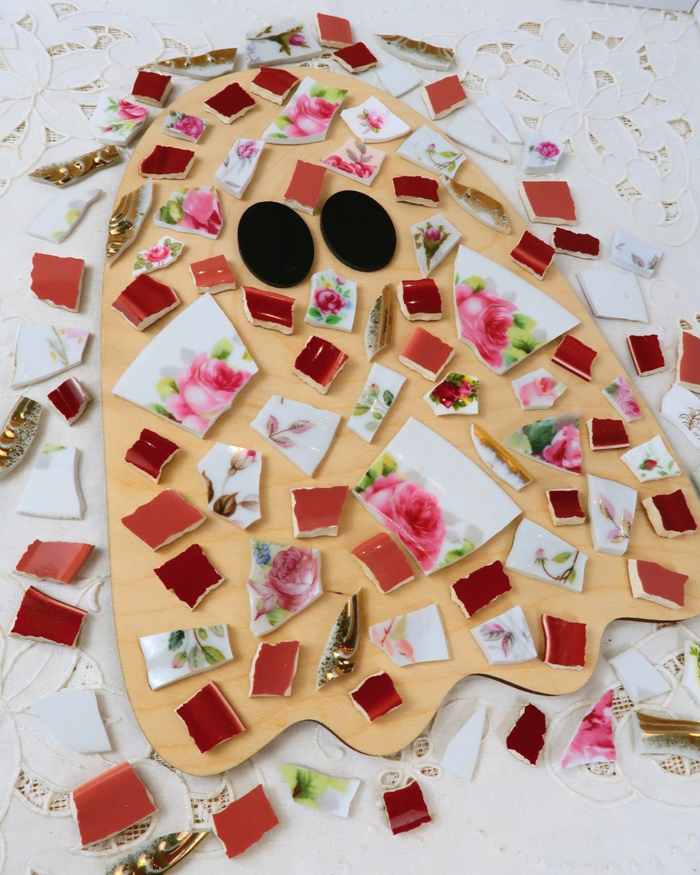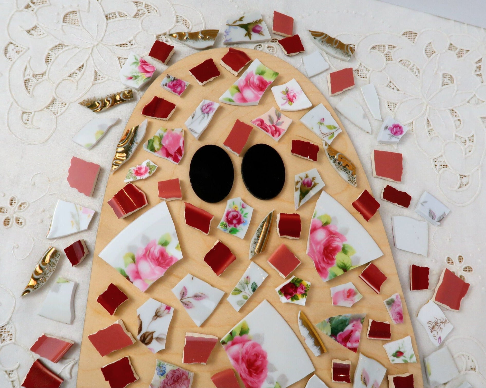 - A hand-selected assortment of broken china Poetic Mosaic tiles