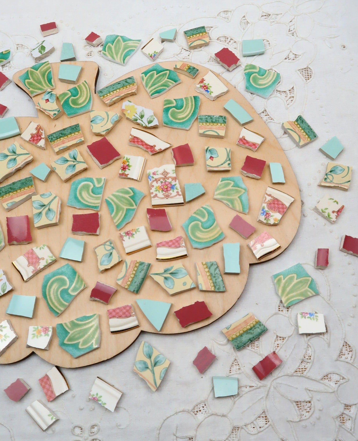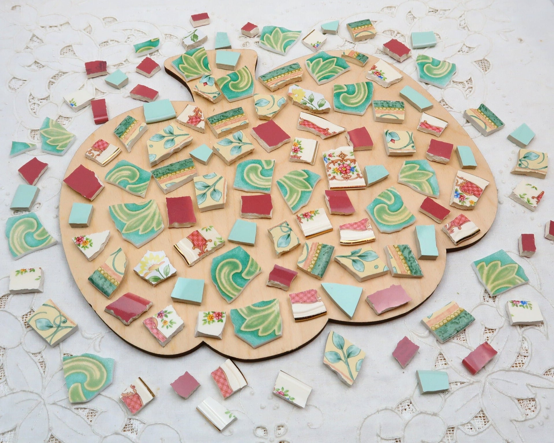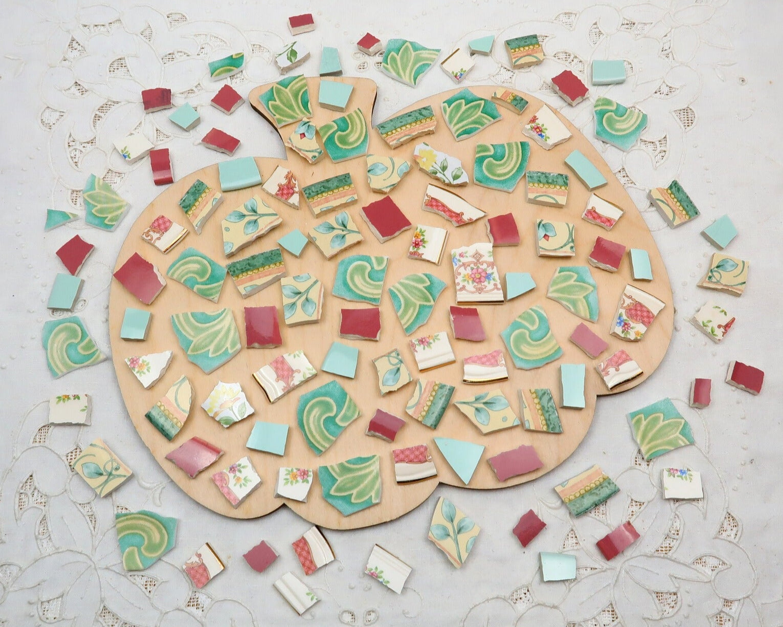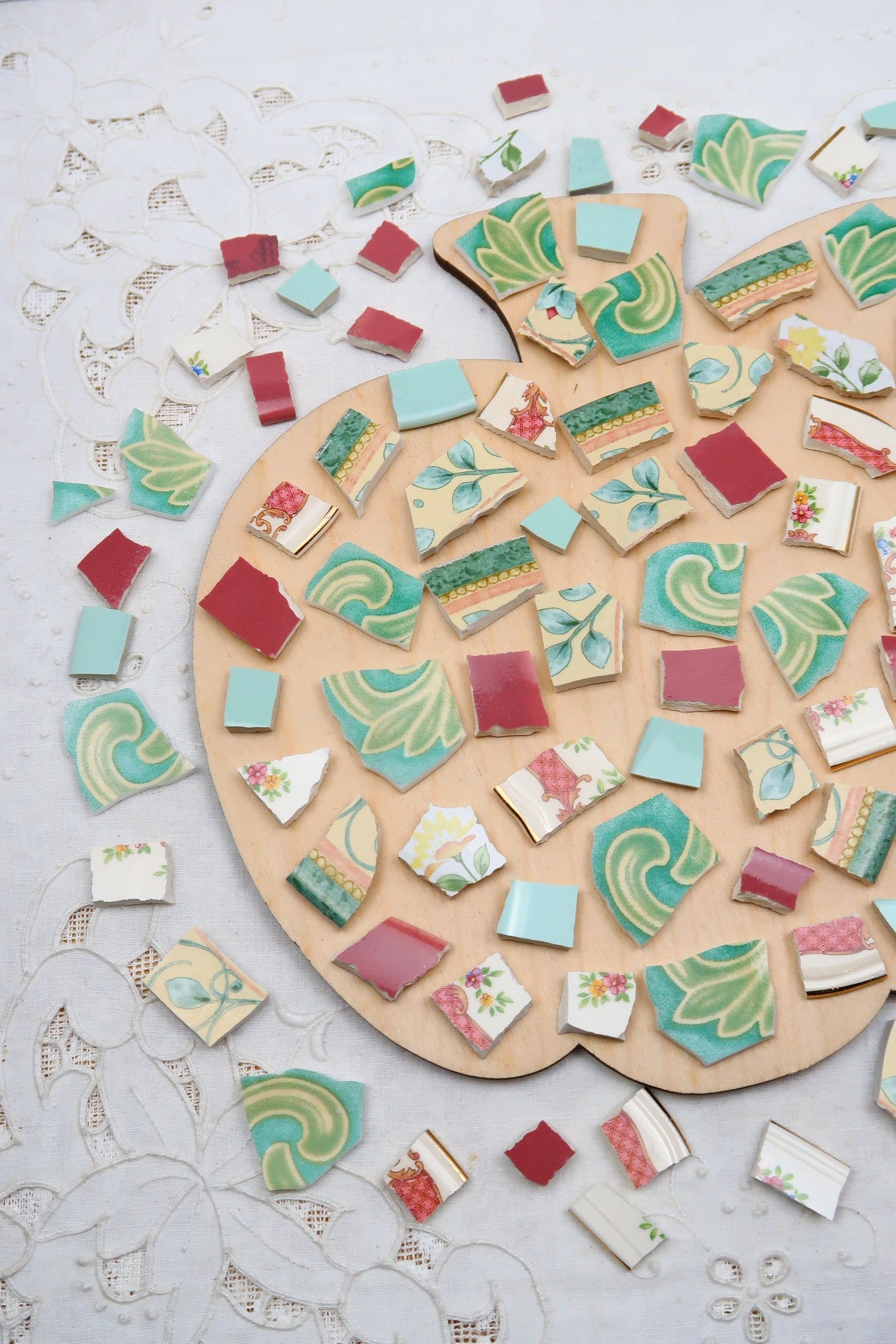 - A hand-selected assortment of broken china Poetic Mosaic tiles