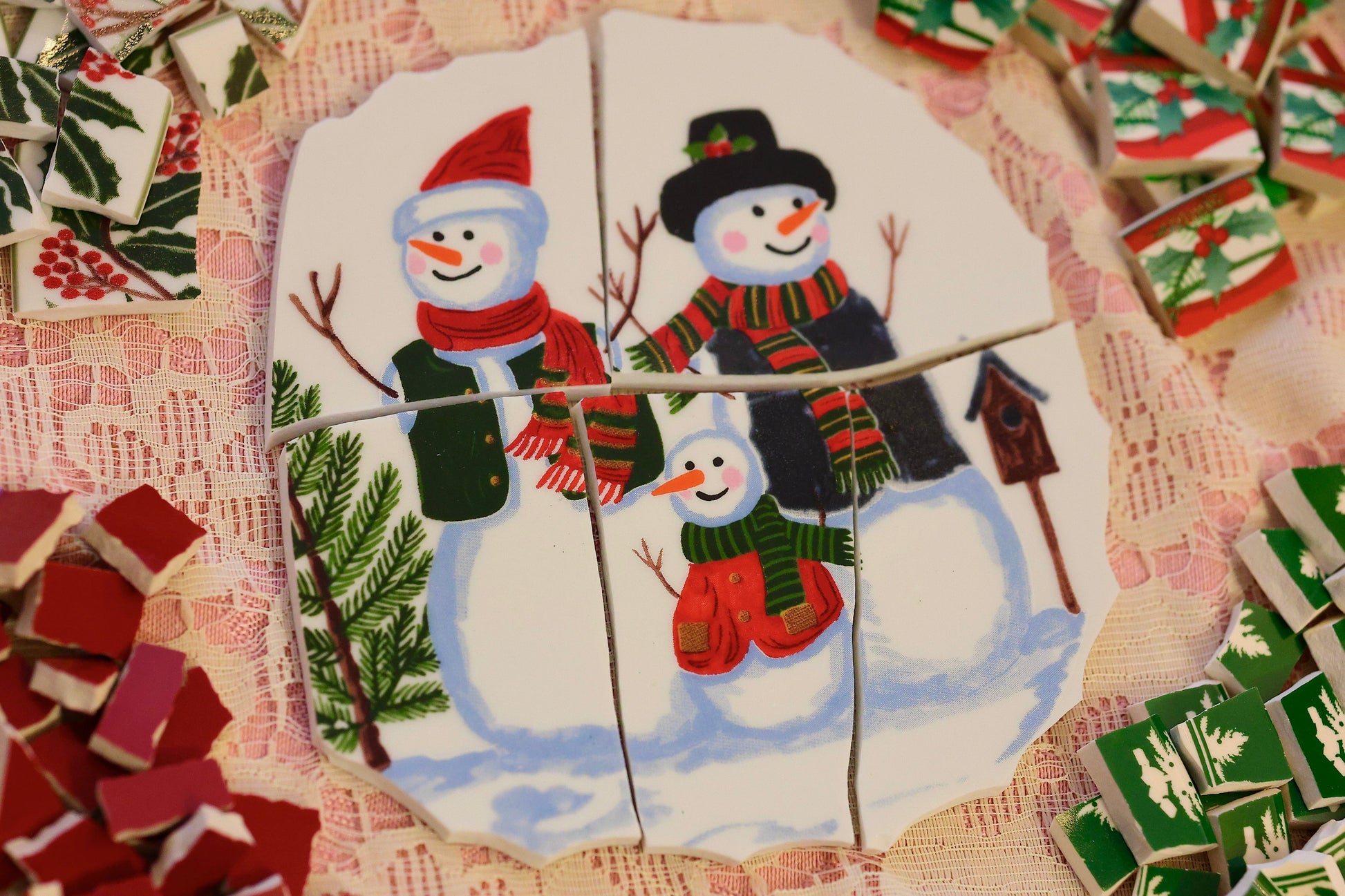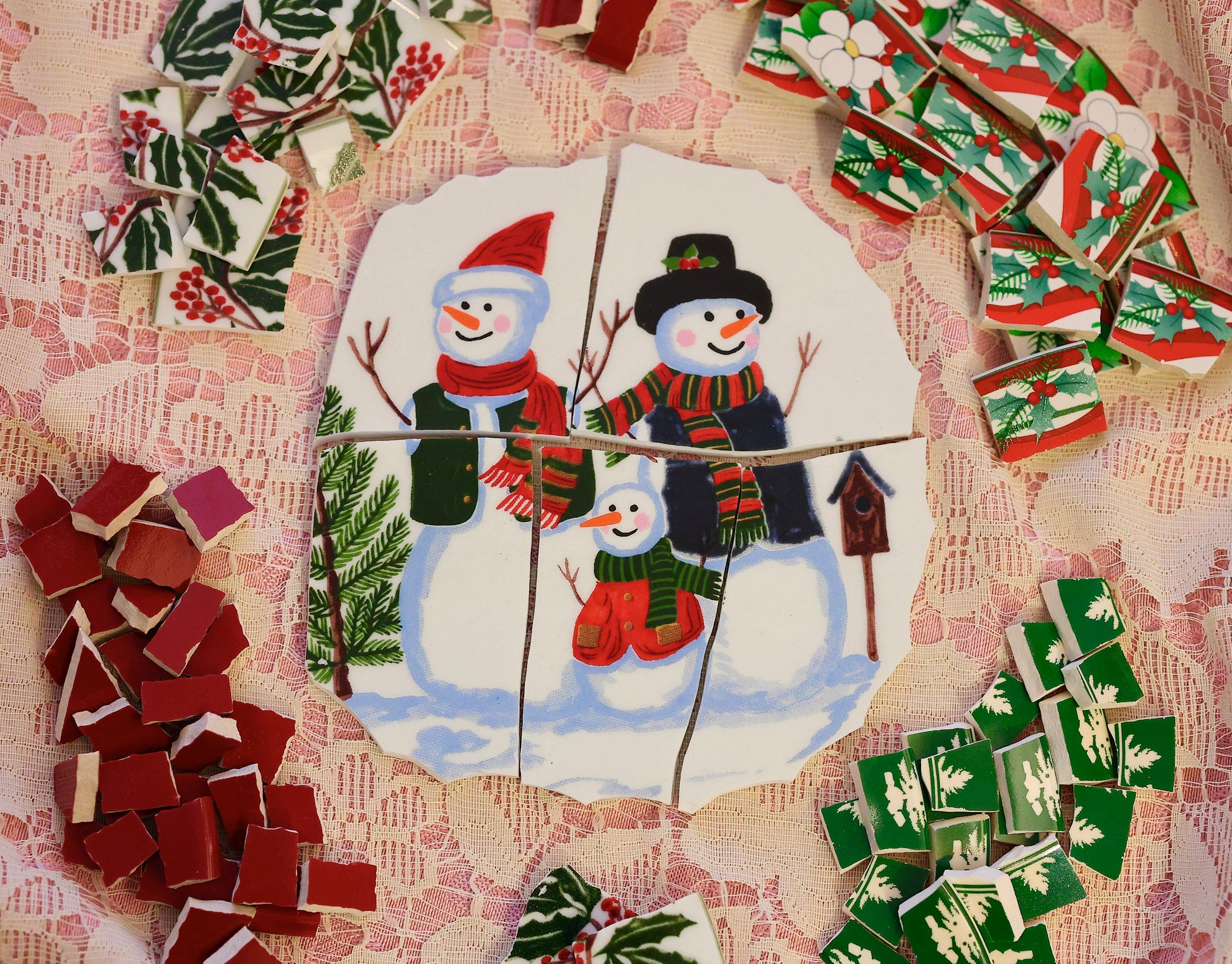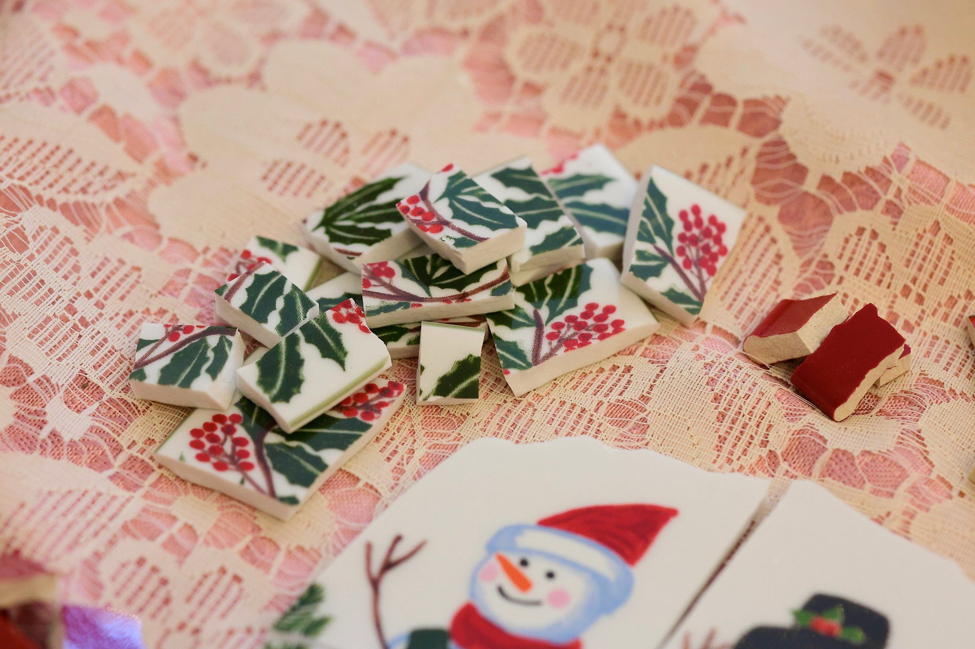 - A hand-selected assortment of broken china Poetic Mosaic tiles