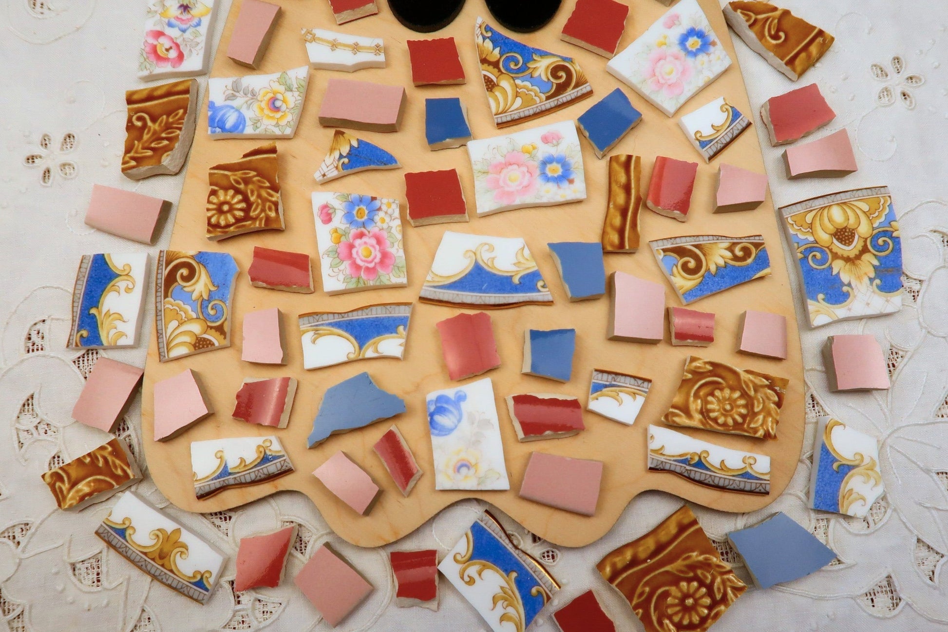 - A hand-selected assortment of broken china Poetic Mosaic tiles