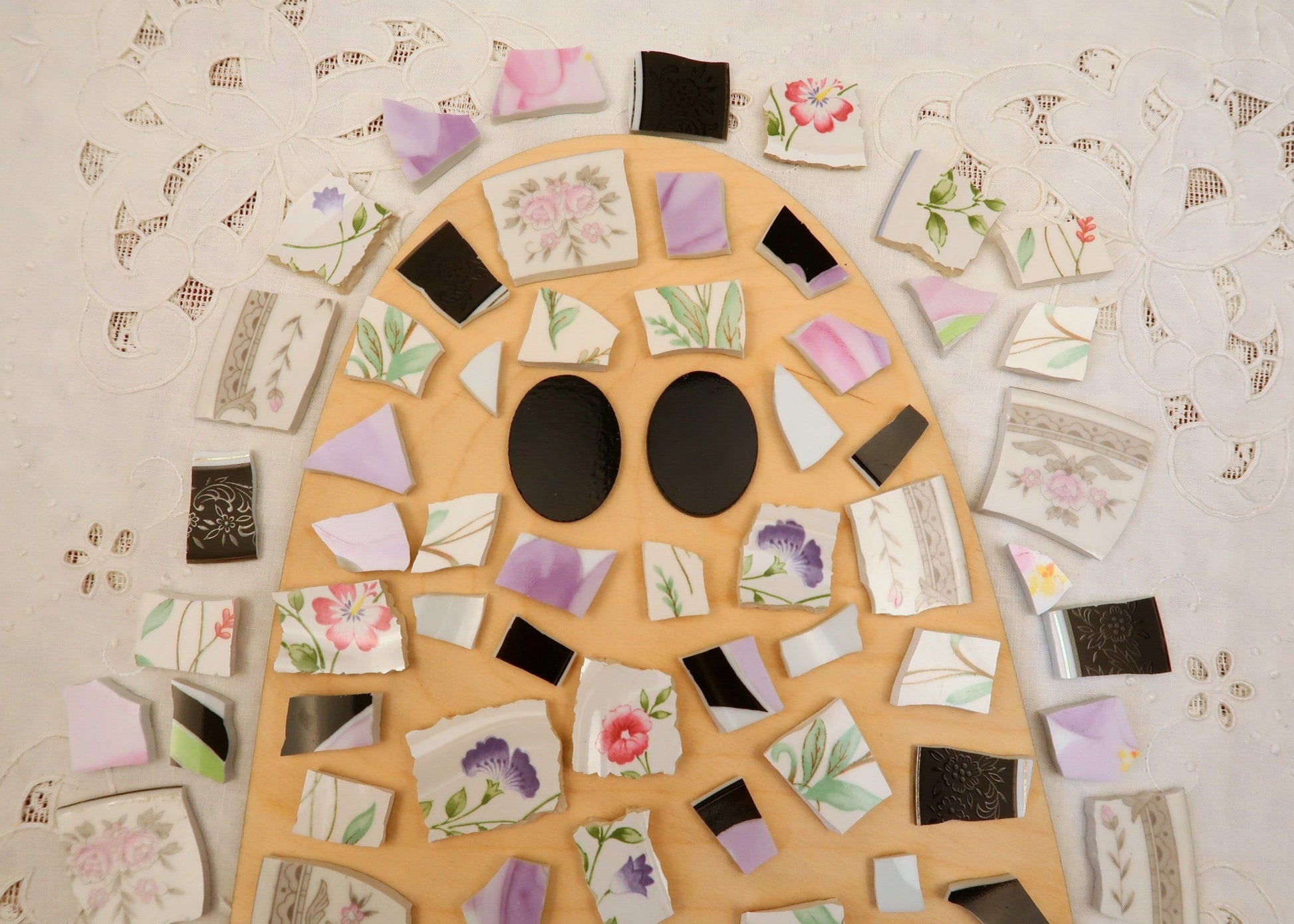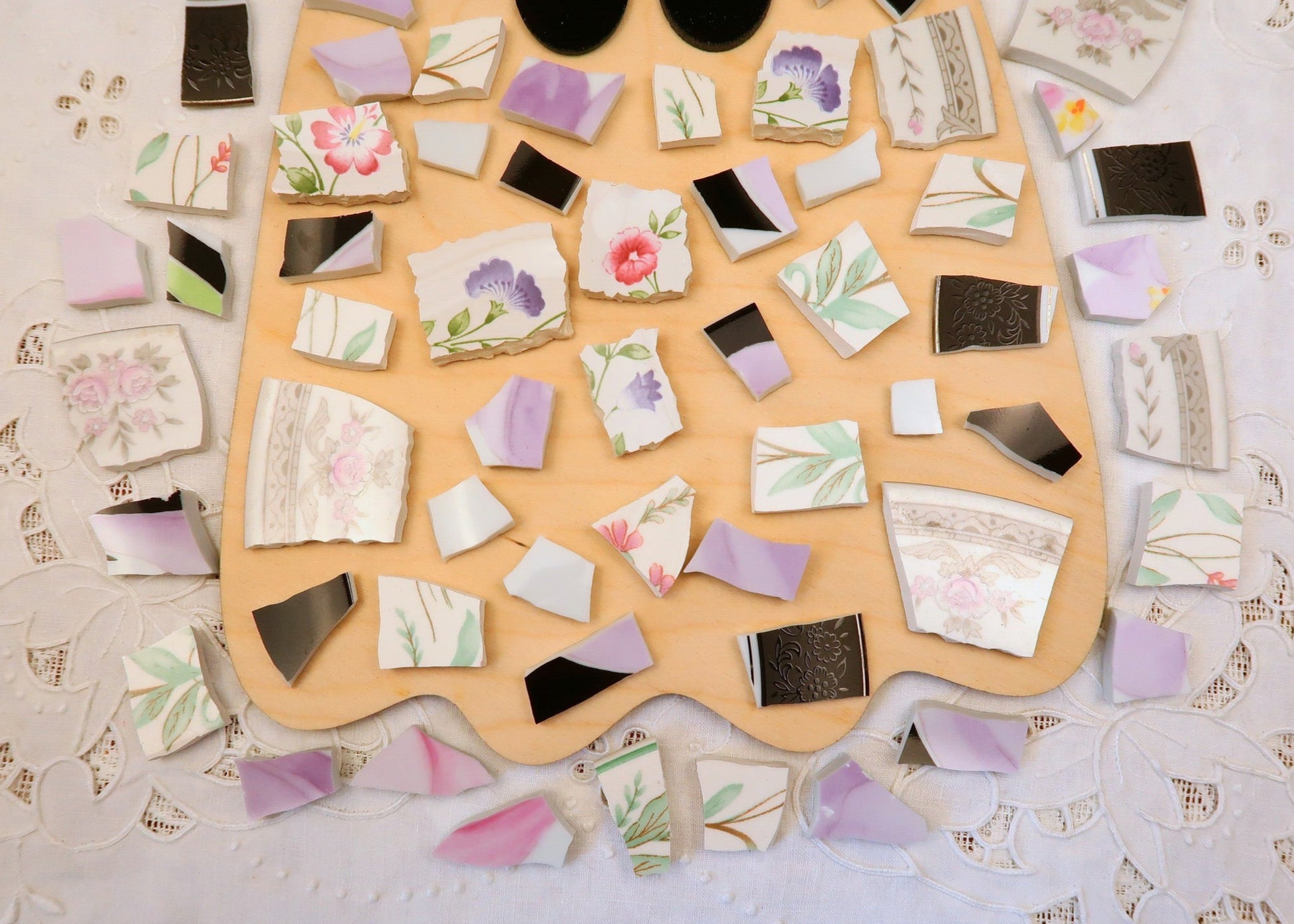 - A hand-selected assortment of broken china Poetic Mosaic tiles
