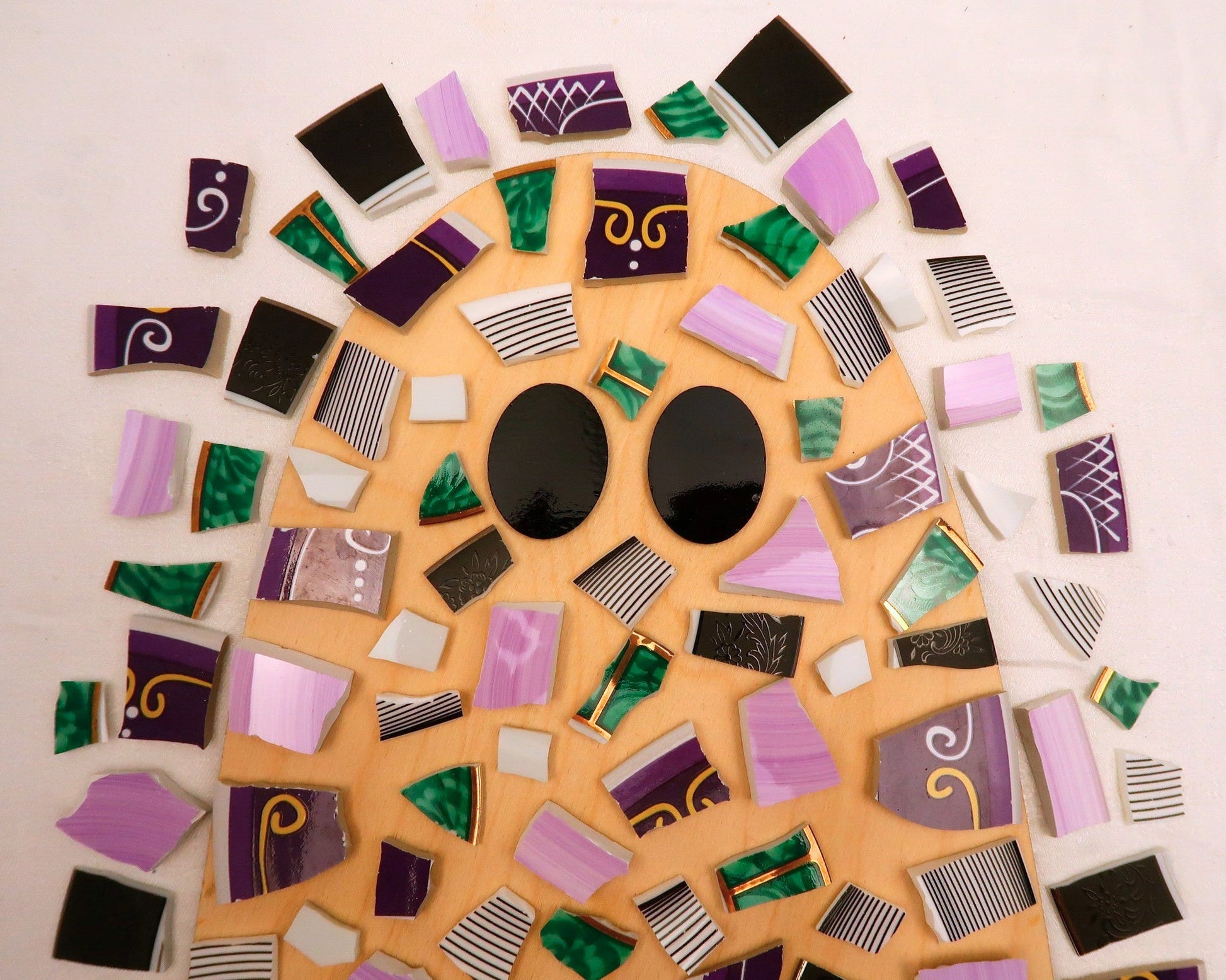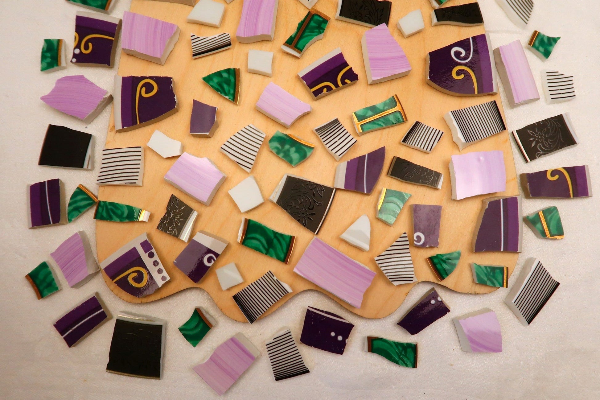 - A hand-selected assortment of broken china Poetic Mosaic tiles