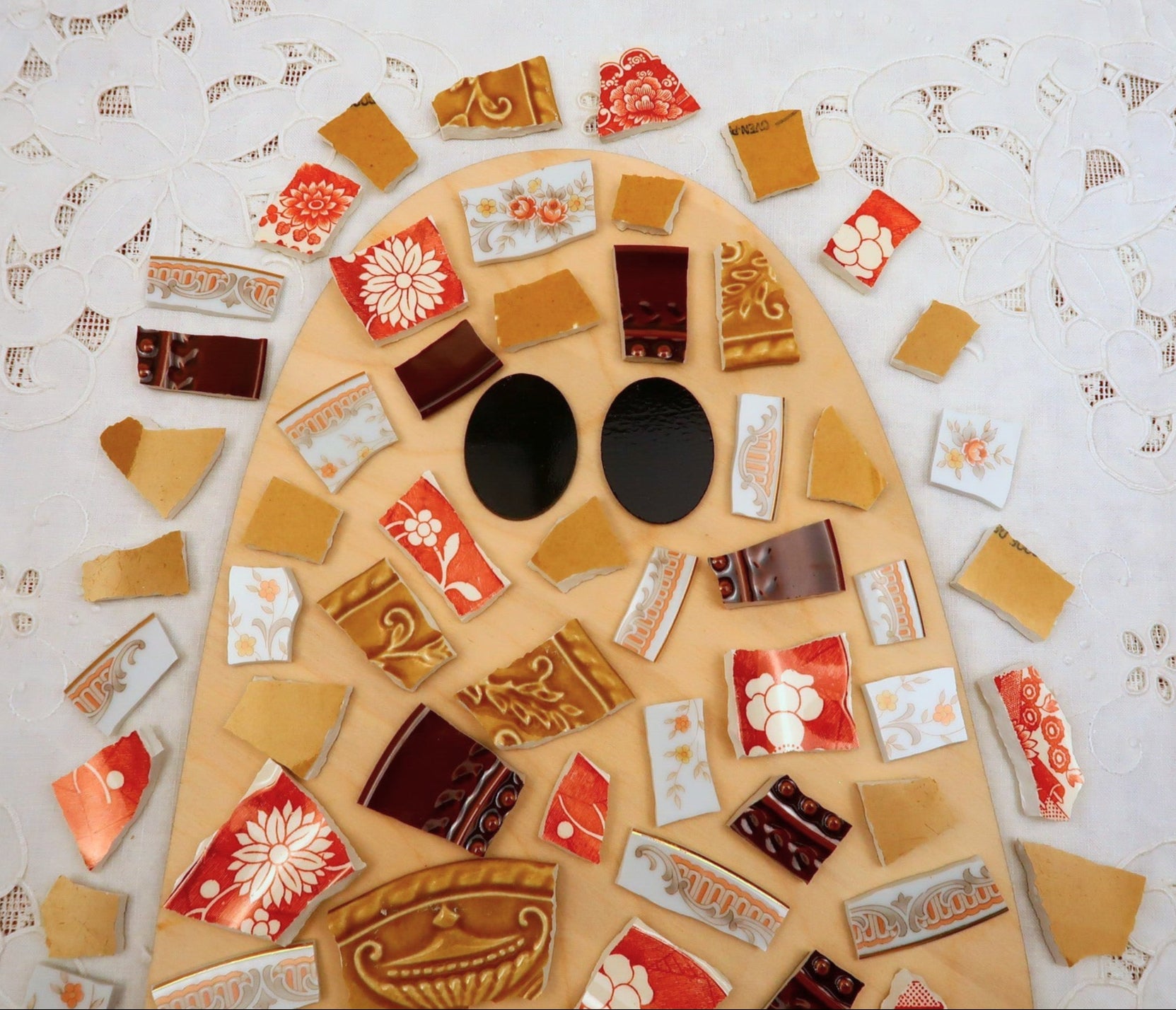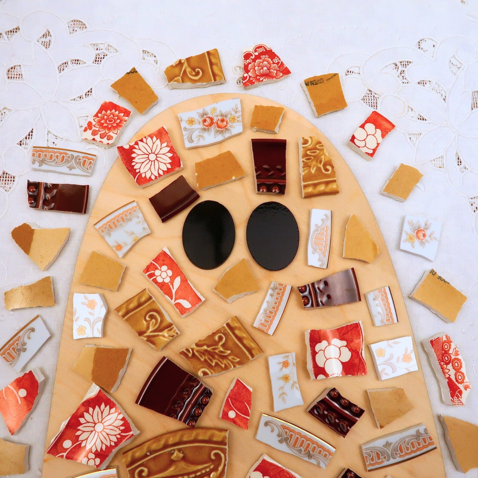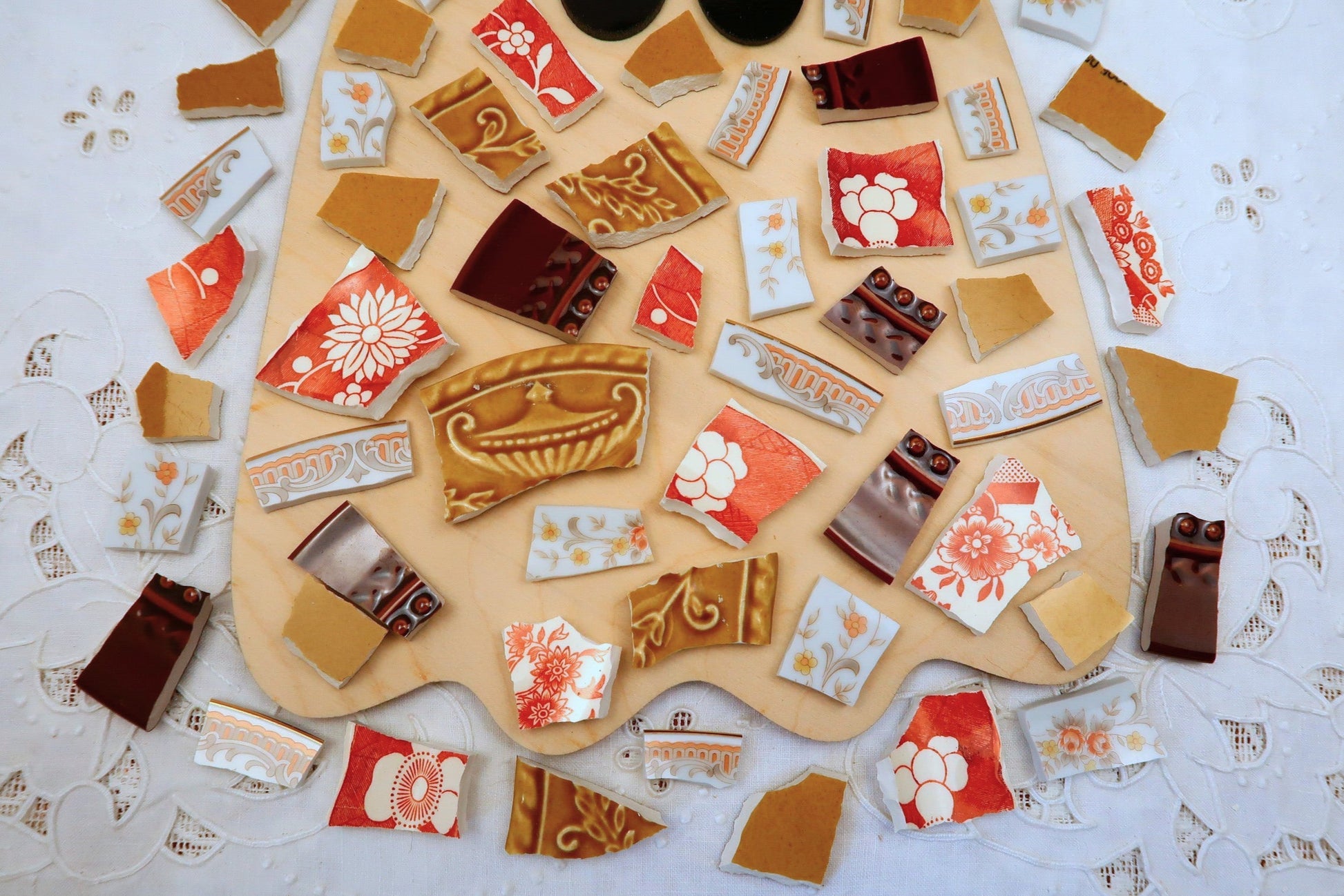 - A hand-selected assortment of broken china Poetic Mosaic tiles
