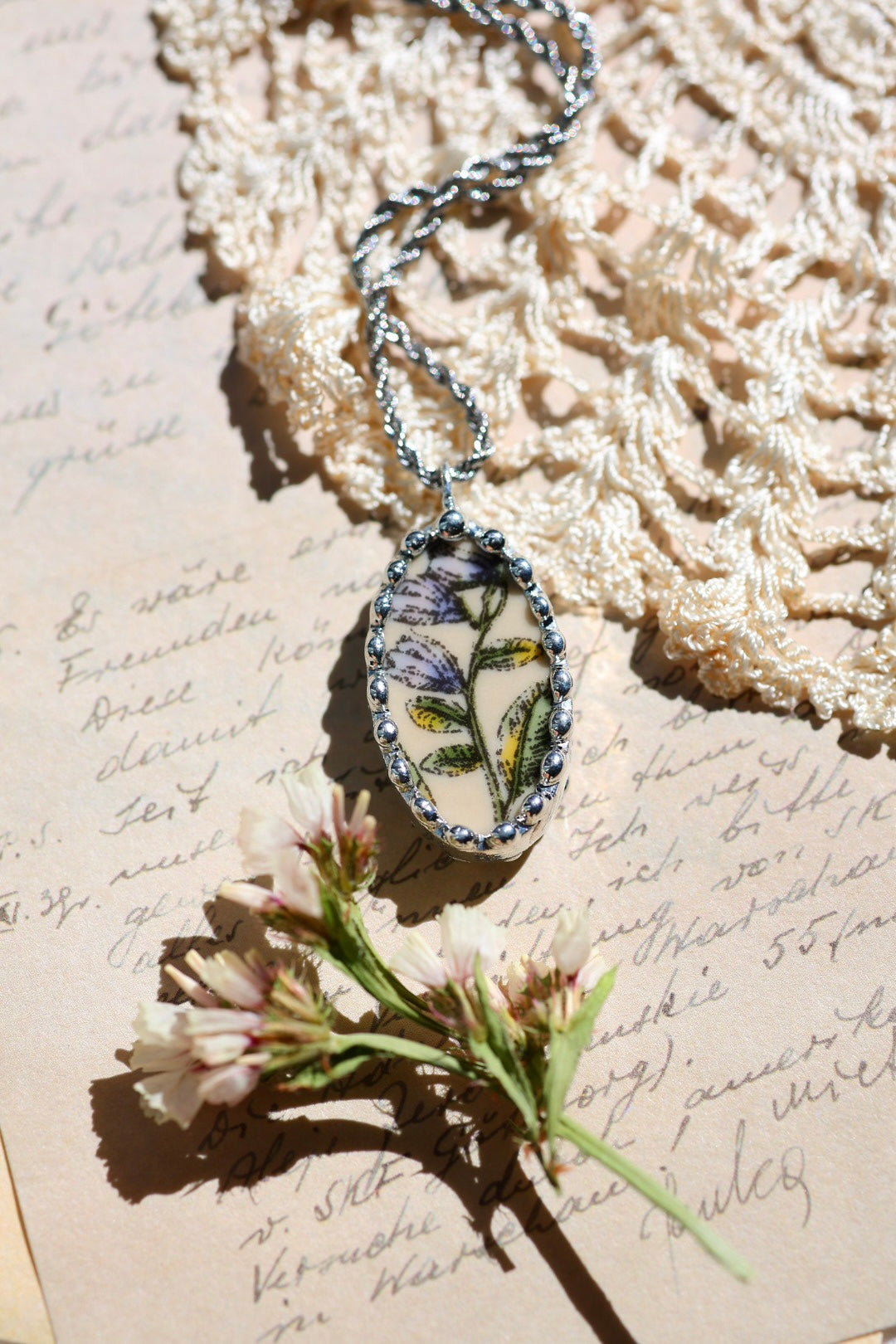 Please remember that these jewelry pieces are made from a unique and unusual medium—vintage dishware. With this, there can be curves and varied thicknesses throughout a single piece.