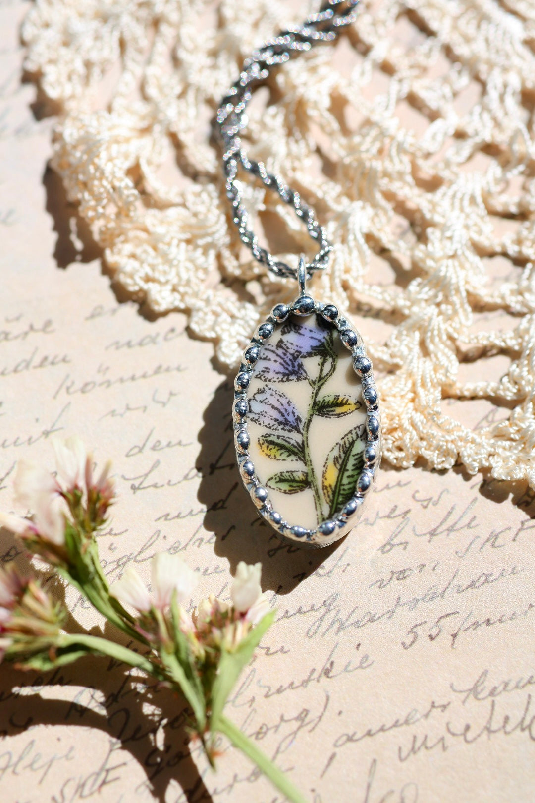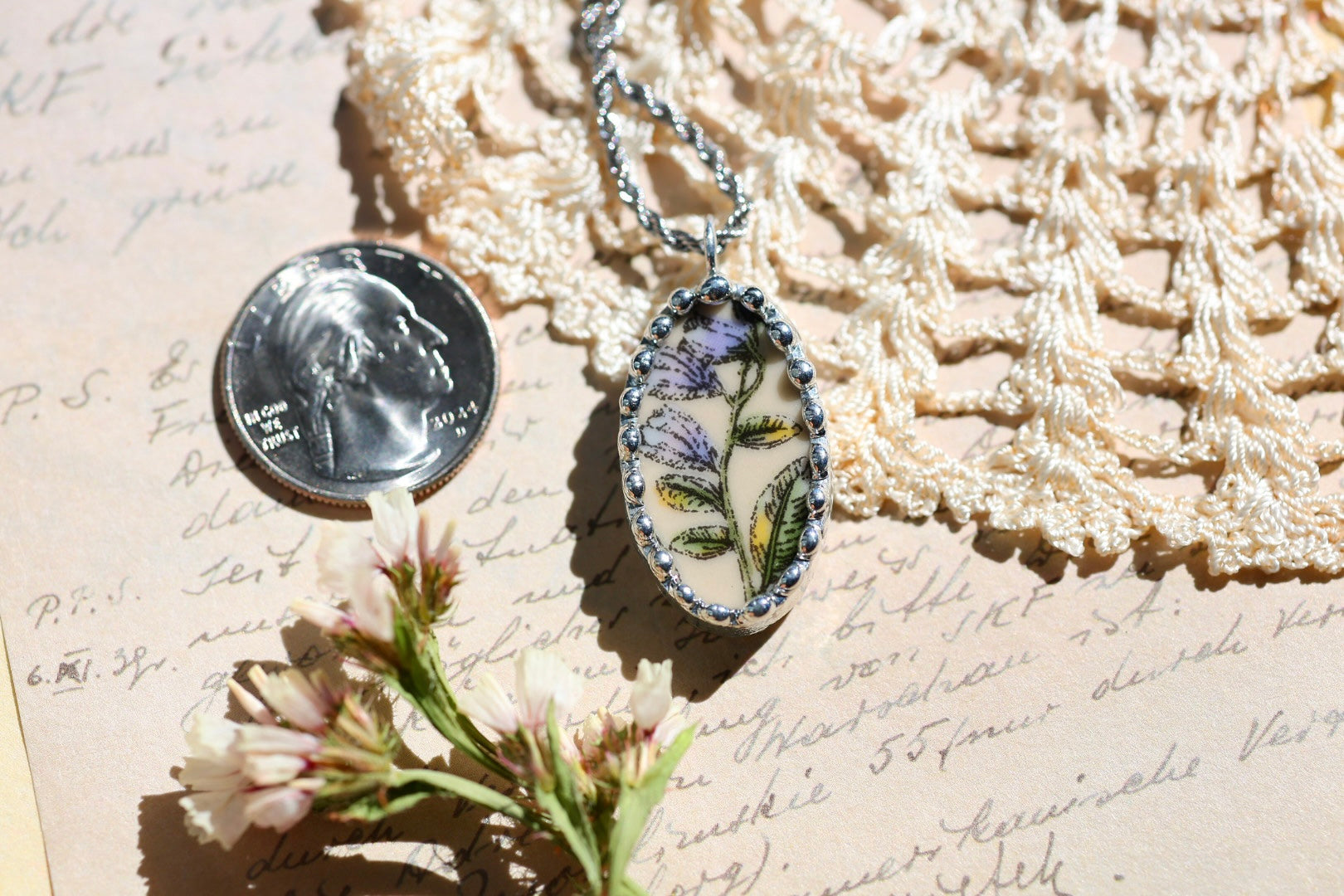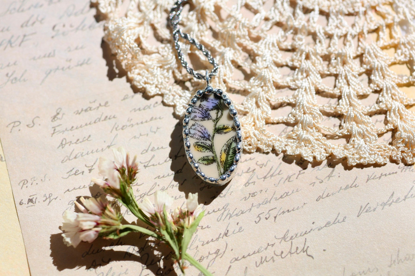 Please remember that these jewelry pieces are made from a unique and unusual medium—vintage dishware. With this, there can be curves and varied thicknesses throughout a single piece.